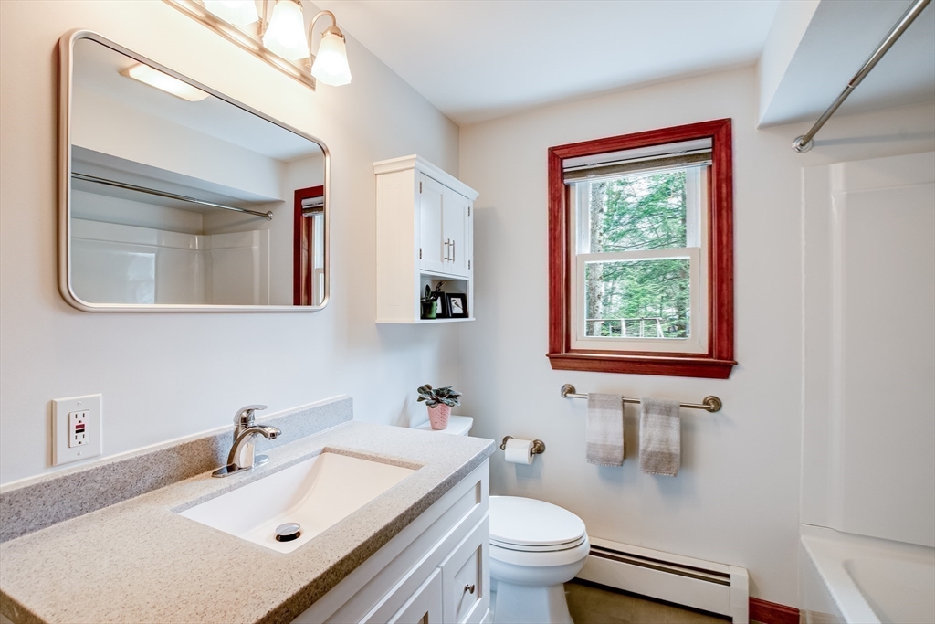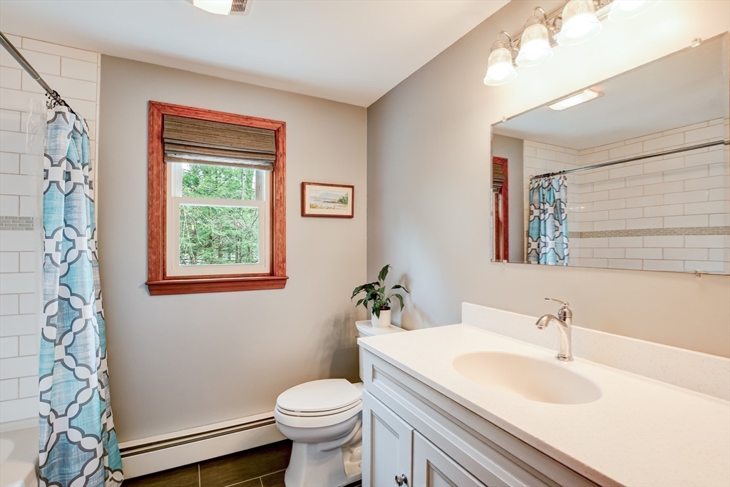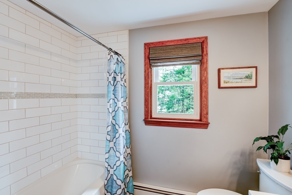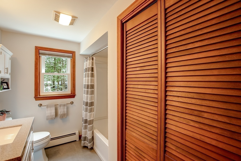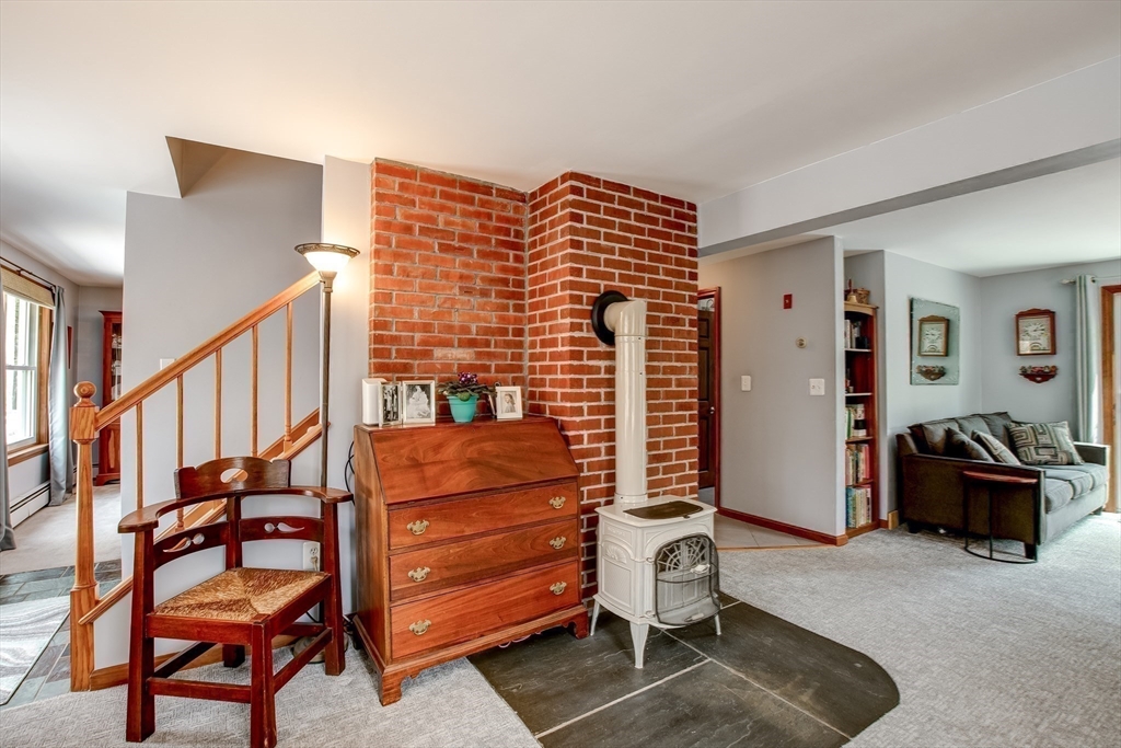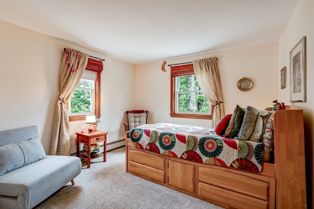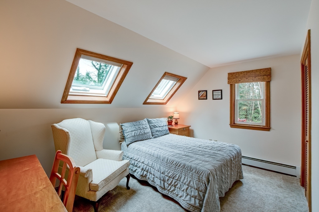 Paradise in the Sunset Lake area with water access just across the street and stunning sunsets! Located in the desirable Far Hills community, this 3-bedroom, 2 full bath Saltbox offers privacy and tranquility. Features include a 30x12 wraparound deck plus a 5x7 deck off the front-to-back primary bedroom. Spacious front-to-back living room with wood stove and rear deck access—ideal for entertaining. Dining room with countertop bar opens to kitchen with cherry cabinets, solid surface counters, tile backsplash, and ceramic tile flooring. Skylit bedroom adds natural light and charm. Recent updates: roof, oil tank, and storm doors (2025), plus 2-year-old electric panel with generator hookup. Set on nearly ½ acre with access to boating, kayaking, swimming, fishing, and more. Year-round living or getaway, minutes to beach, boat ramps, playground, and clubhouse.