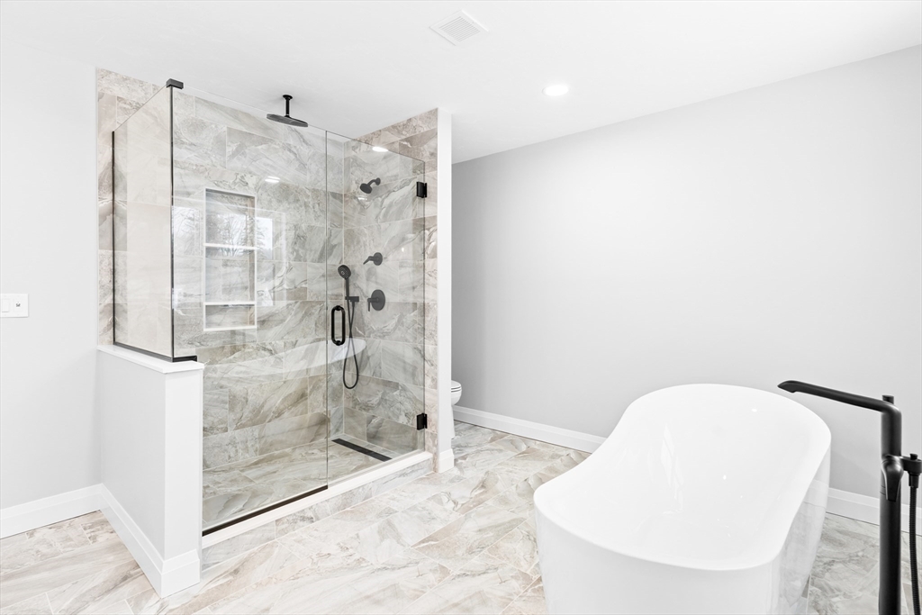 MOVE IN NOW. Welcome to King Philip Estates! This stunning 4BR Colonial offers 4,193sf of luxury living in a cul-de-sac community w/ amazing curb appeal, featuring board & batten siding, black windows, & charming covered front entry. Located w/ easy access to Route 495 & the Outlets. A grand foyer w/ custom staircase, black balusters, & elegant moldings sets the stage. The family room features a fireplace w/ shiplap woodwork & oversized first-floor windows. The custom kitchen boasts a coffered accent ceiling over the island, Thermador appliances, & a spacious island. The vaulted primary suite offers a spa-like bath, 4 closets & a vanity area. The finished bsmnt has a full bath & direct access to the rear yard via a dedicated staircase. Outside, enjoy a composite deck, professional landscaping & a fenced yard. Don’t miss this opportunity-schedule your private showing today!! 6 others avail. *Virtual staging shown, as well as enhanced grass on exterior photos*