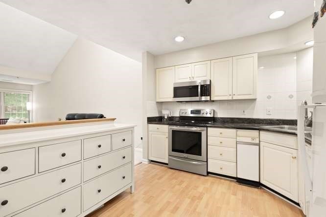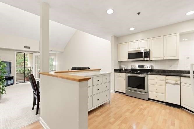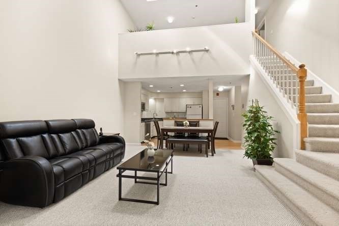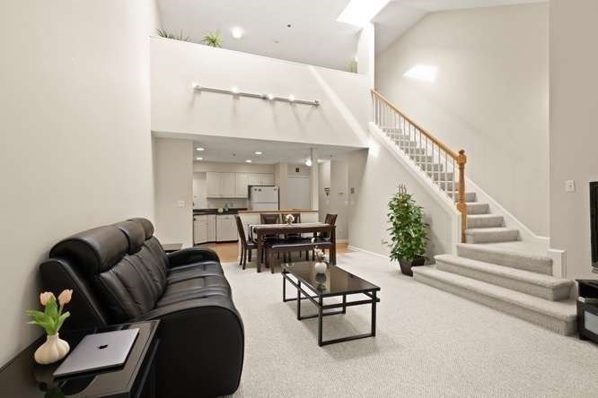 Ease of living at Locke Village. Enjoy all this thoughtfully designed unit has to offer--Updated kitchen with newer appliances opens seamlessly to an inviting dining and living area with vaulted ceiling and an abundance of natural light. From the open living area, charming French door leads to a relaxing, newly renovated balcony offering an extension of living space, creating a welcoming indoor-outdoor connection. Privately situated, the first-level primary bedroom suite is accessed via a hallway with convenient bathroom/laundry room on one side, storage/pantry on the other. A skylit loft anchors the upper level, ideal for a home office, den, or flexible living space. Thoughtfully set apart, is a second ensuite bedroom and full bath. Storage/utility room is tucked along the back of the loft area. Amenities include elevator, clubroom, two parking spaces under in heated garage, park-like green space, Gazebo, EV charging stations, foot path to shopping. Nearby highway access & more!