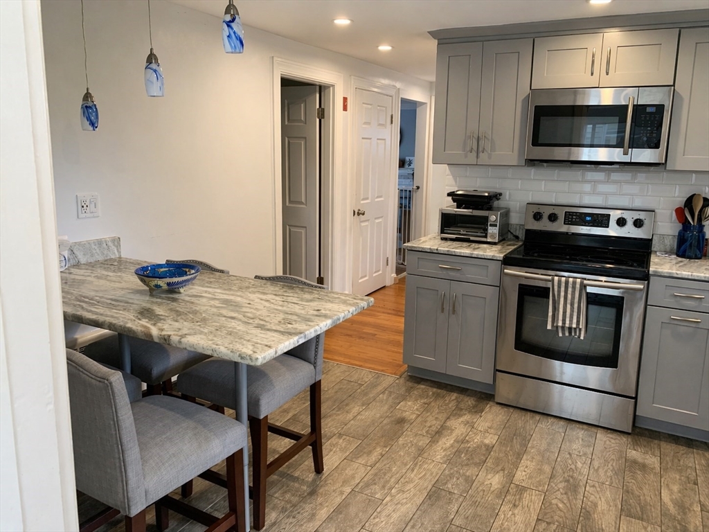 Spacious and beautifully maintained, this charming single-family home offers three floors of interior living space along with a finished basement, a large backyard, and an unbeatable location — just moments from Moody Street, commuter rail, and major bus routes.Features:Three levels of living space plus a finished basement — perfect for a playroom, home office, or entertainment area.3 Bedrooms and 2 Full BathroomsFully updated kitchen with a brand-new oven, dishwasher, disposal, and updated flooring.Refinished gleaming hardwood floors throughout the main living areas.All-season enclosed porch ideal for relaxing or additional storage.Updated mechanicals, including a new roof and upgraded circuit breaker.Oversized backyard – perfect for kids, pets, gardening, or outdoor entertaining.Snow removal and yard maint on tenant, lawnmower provided.