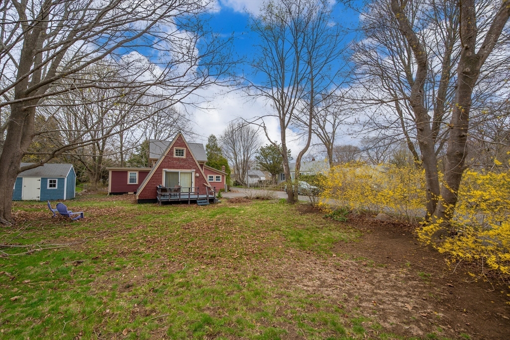 Rare opportunity in a prime location—don’t miss it. Enjoy easy access to beaches, downtown, waterfront dining, local shops, and galleries from this inviting home, ideally located just moments from downtown Rockport. A distinctive chalet-style living area features soaring ceilings and sliders leading to a spacious deck and yard—perfect for relaxing or entertaining. Set on a quiet cul-de-sac, the property offers flexible living space, ample parking, and a storage shed for added convenience. A unique alternative to the typical home, it presents a great opportunity to update, customize, and build equity over time. Deeded as a condominium, the home lives much like an independent single-family, with just one other unit and a low annual fee of approximately $300 covering master insurance. Don’t miss this opportunity—join us at the open house Saturday 11:00–12:30 and Sunday 12:00–1:30.