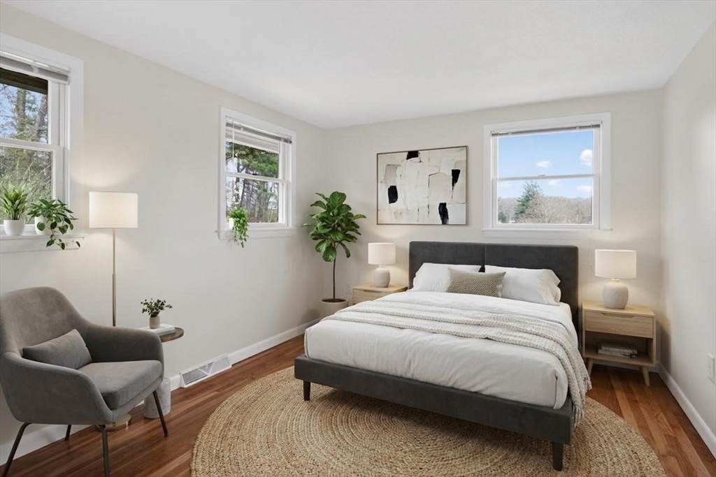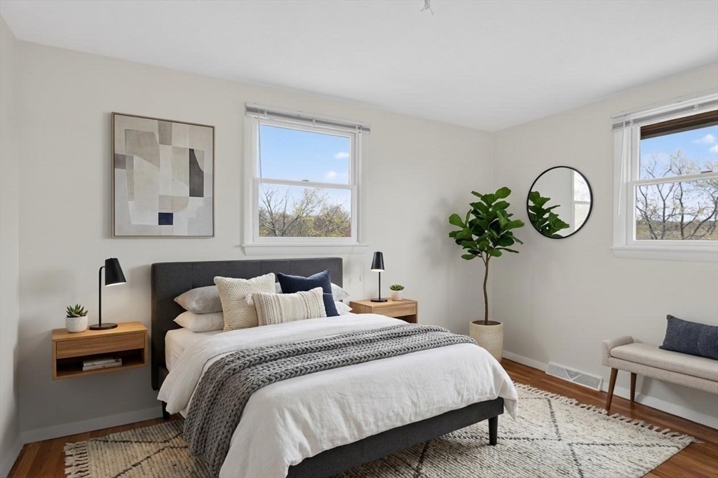 Move-in ready multi-level home with gorgeous views of Fort Meadow. The bright living room features a picture window with a stunning view. Freshly painted throughout with recently refinished hardwood floors. Off the living room is an insulated 450 square foot three season porch with a year-old mini split heating and cooling system. The first level kitchen has plenty of cabinet space and gas range as well as dining room with hardwood floors. The half bath has just been renovated. The top level has 3 bedrooms with hardwood floors and upgraded full bath. Central Air is one year old. Bonus room can be used as an office or den. Centennial Beach is a short distance away. Minutes to desirable downtown Hudson and conveniently located near 290 and 495. Hurry, this won’t last.