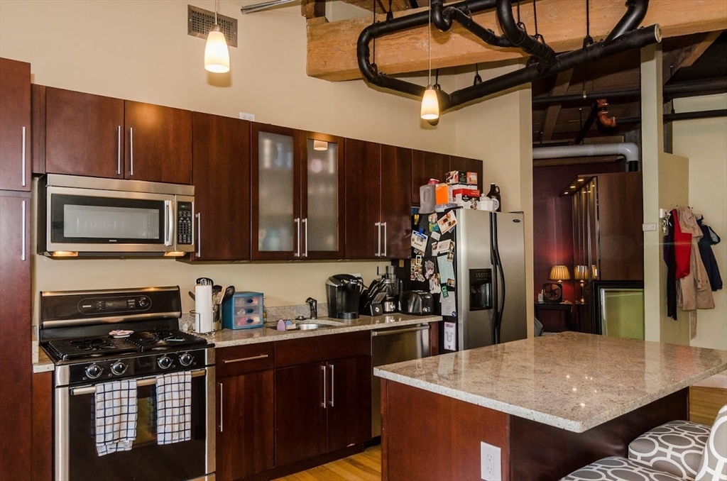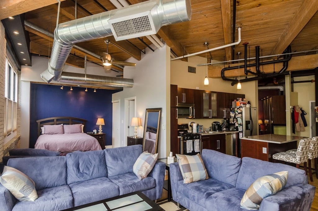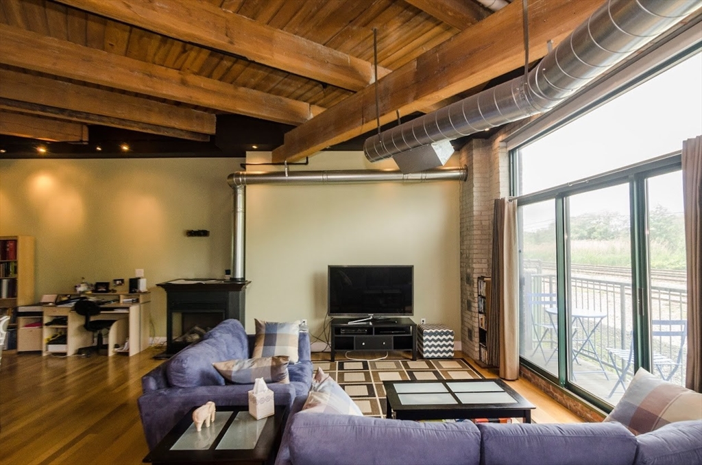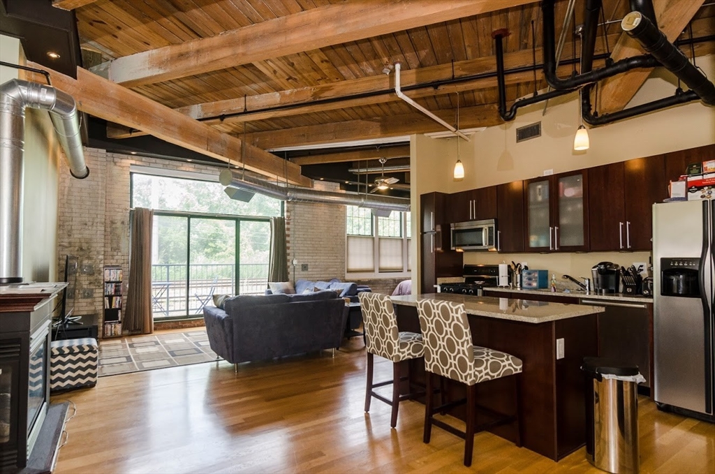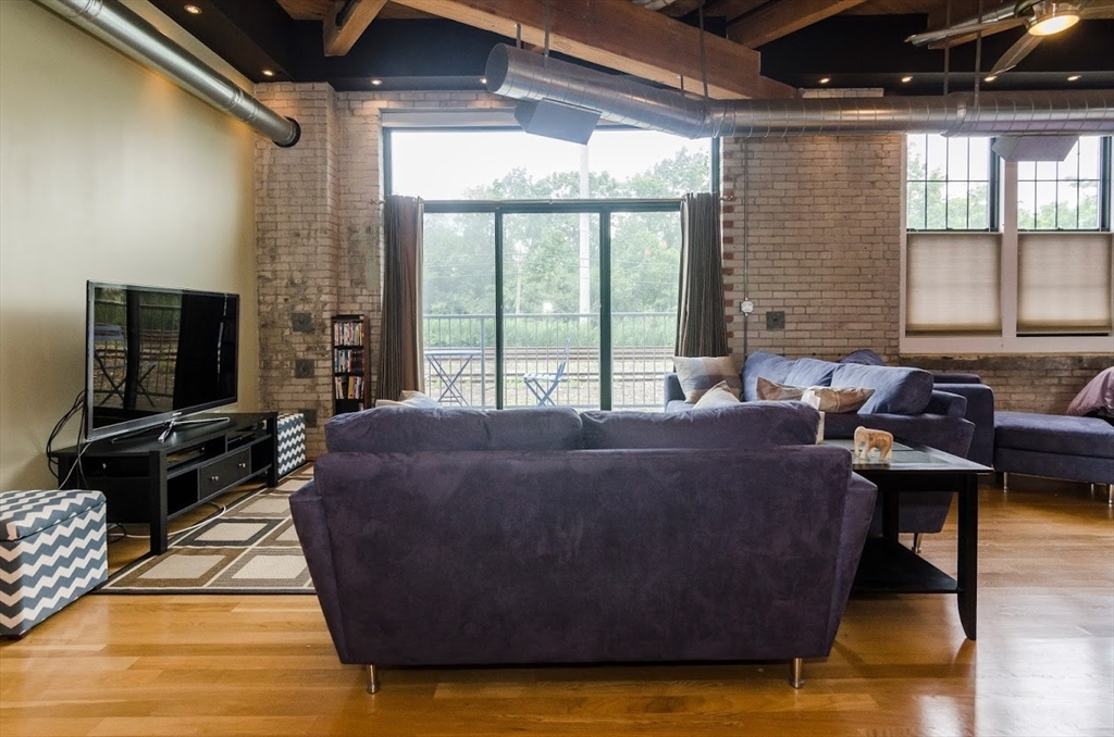Located in the former home of the famous Charleston Chew factory, history buffs will appreciate this beautiful, modern condo blending the perfect contemporary finishes with warm, inviting touches. Enjoy lofty sand-blasted beamed ceilings, a wide open plan with hardwood flooring, exposed brick walls, beautiful contemporary finishes, and tons of natural light through over-sized windows. Gourmet kitchen with granite counter-tops, stainless steel appliances, and large kitchen island. Living room with gas fireplace and exterior balcony. One large bedroom plus a larger bonus room which could be a study, nursery, office, or second bedroom. Central heat and AC, in-unit laundry, 2 deeded parking spaces. Just a stone's throw from Encore Casino, Assembly Row, Sullivan square, Charlestown, North End, MGH, MIT, Harvard, Cambridge and Downtown Boston!