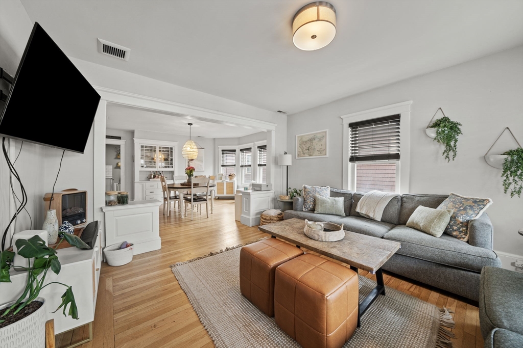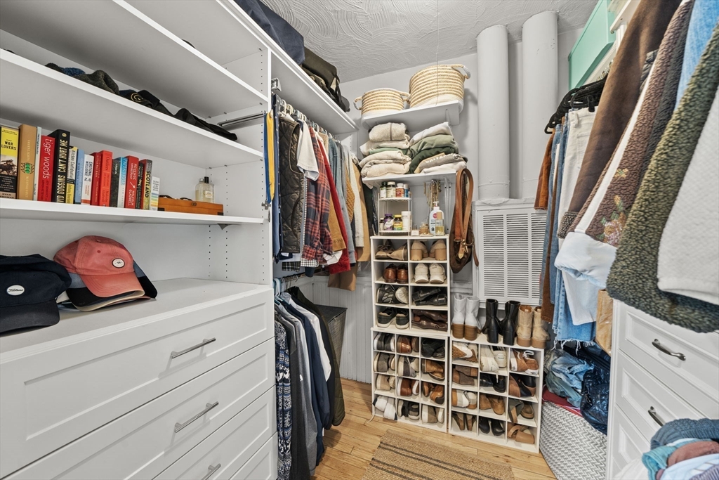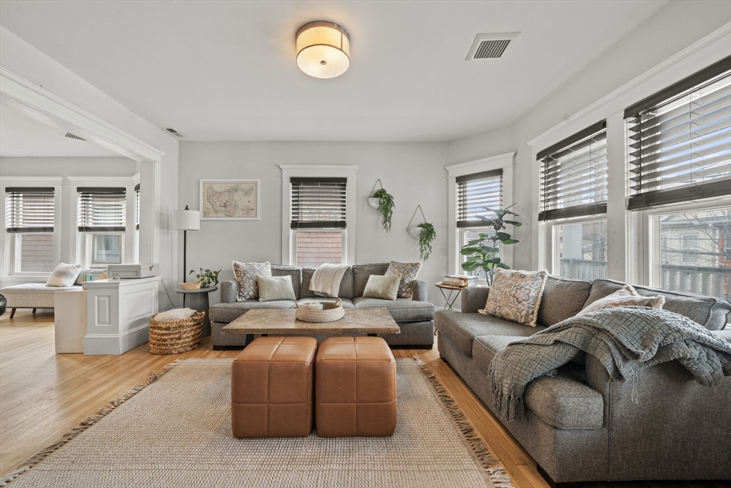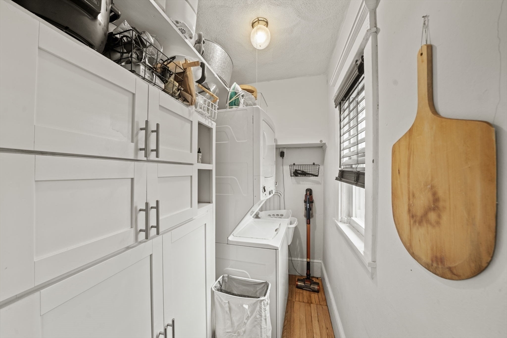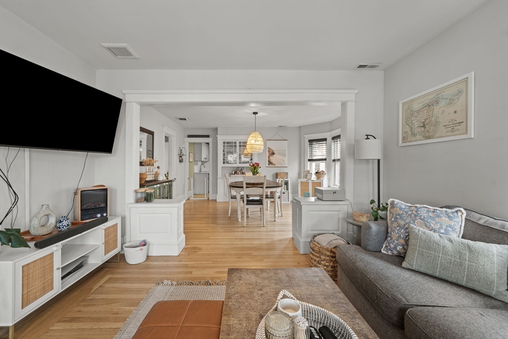 Beautifully refinished condo! Enjoy year-round comfort with central heating and air conditioning. The renovated kitchen is a standout, featuring newer cabinetry, quartz countertops, and a full suite of stainless steel appliances, including a dishwasher and garbage disposal. A spacious walk-in pantry with in-unit washer and dryer adds both convenience and functionality. Hardwood floors run throughout the expansive interior, complemented by abundant natural light. Offering over 1,300 square feet of living space, this home provides exceptional room to spread out, along with ample storage options. Two good size bedrooms, and a versatile office adjacent to the primary bedroom for those work from home days. A large walk-in closet too! Step outside to a private porch and take in beautiful beach views! More shared outside space out back with firepit area. Don't miss this beauty less only 3 doors down from Winthrop Beach!
