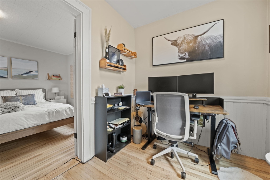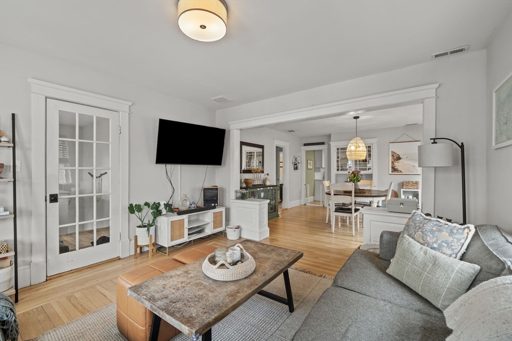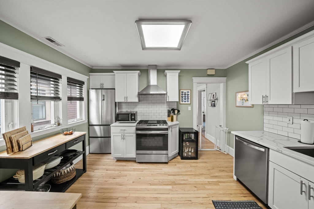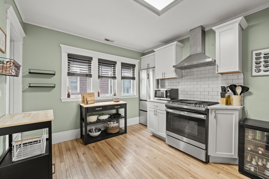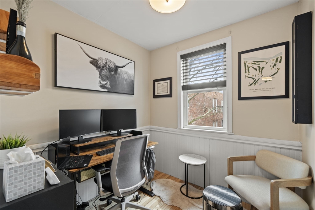 Beautifully refinished condo! Enjoy year-round comfort with central heating and air conditioning. The renovated kitchen is a standout, featuring newer cabinetry, quartz countertops, and a full suite of stainless steel appliances, including a dishwasher and garbage disposal. A spacious walk-in pantry with in-unit washer and dryer adds both convenience and functionality. Hardwood floors run throughout the expansive interior, complemented by abundant natural light. Offering over 1,300 square feet of living space, this home provides exceptional room to spread out, along with ample storage options. Two good size bedrooms, and a versatile office adjacent to the primary bedroom for those work from home days. A large walk-in closet too! Step outside to a private porch and take in beautiful beach views! More shared outside space out back with firepit area. Don't miss this beauty less only 3 doors down from Winthrop Beach!