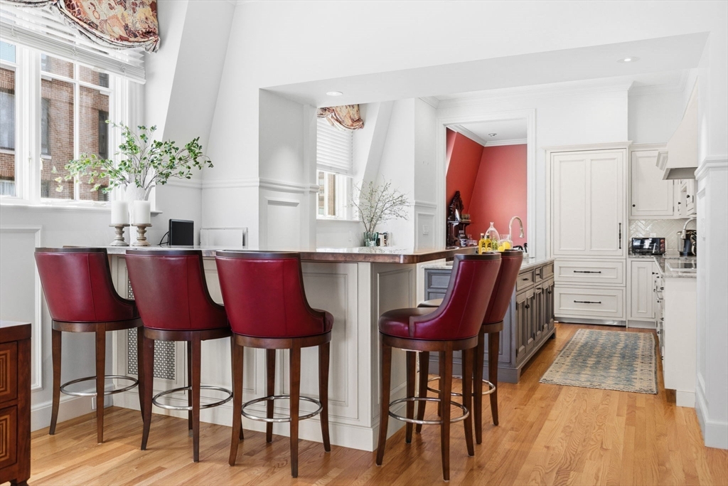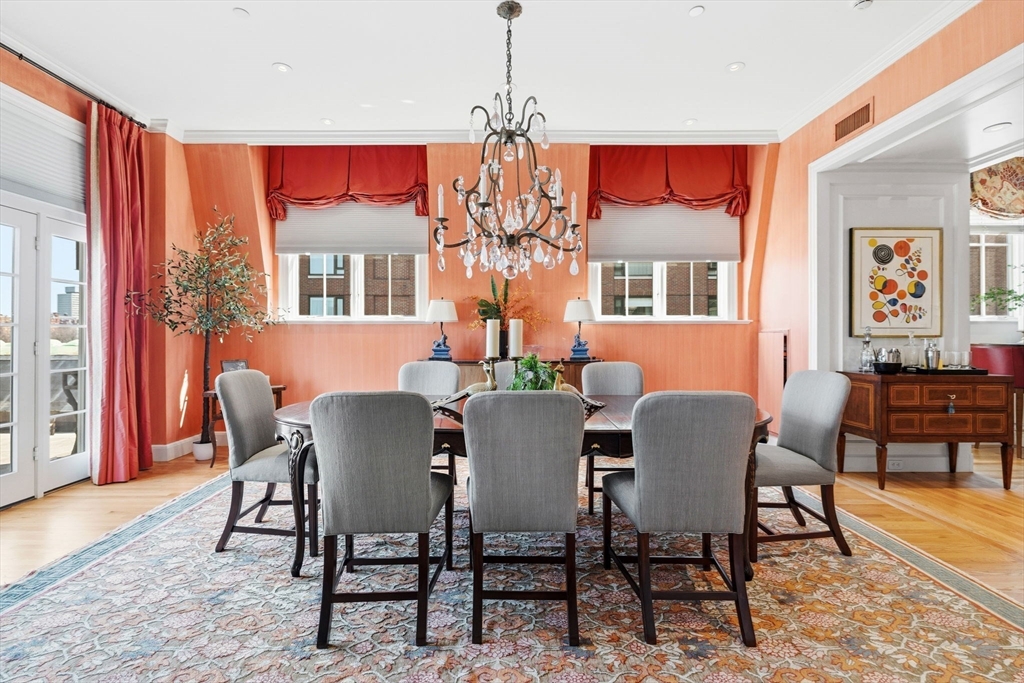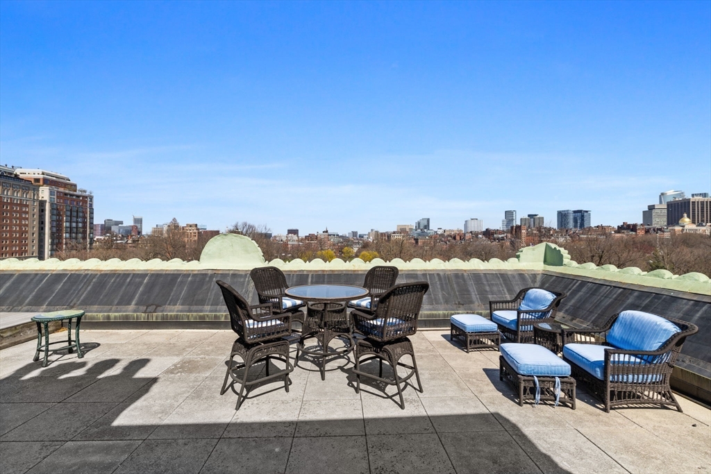 The Penthouse at Le Jardin presents a rare opportunity for elevated full-service living directly overlooking Boston’s iconic Public Garden, the crown jewel of the City. This expansive residence is accessed by private elevator and offers grandly scaled entertaining spaces, including formal living and dining rooms that open to a spectacular 600+/- SF terrace with sweeping Garden views. A second private deck enhances the home’s exceptional indoor-outdoor living. The custom kitchen is equipped with top-of-the-line appliances and is adjacent to a lovely breakfast room. The corner primary suite is a true retreat, featuring expansive dressing rooms. Additional amenities include a dry bar, den, home office, and two additional bedroom suites. Enjoy 24-hour concierge service in this boutique building, just moments from Back Bay’s premier dining and shopping. Two valet garage parking spaces included.