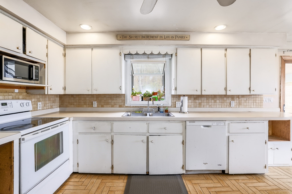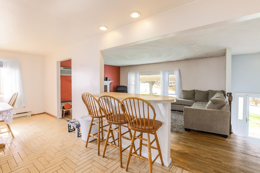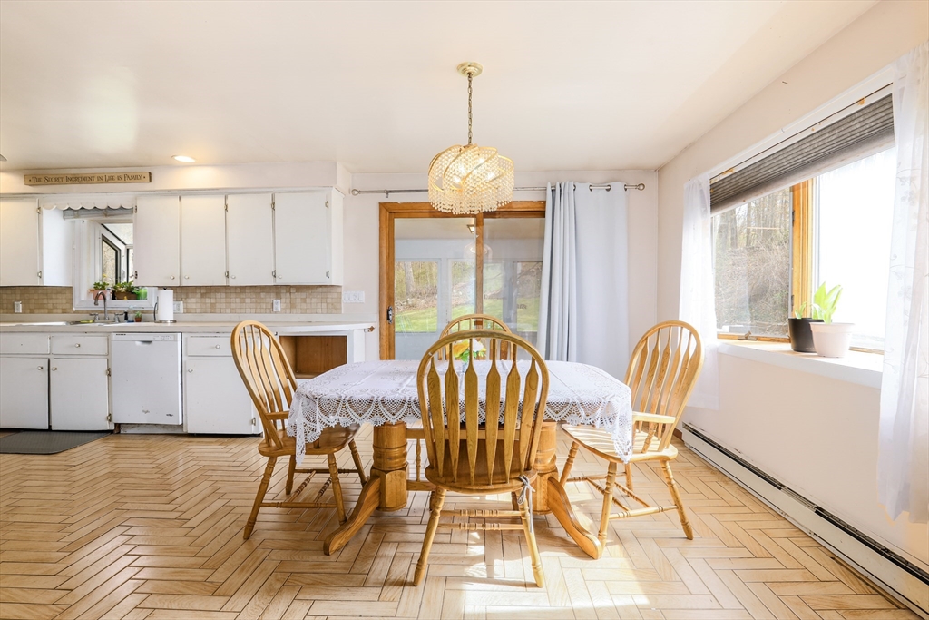 Welcome to 6 Lerner Dr in Dudley — Priced below market value! This raised-ranch sits on a quiet dead-end road. Featuring 3-beds & 2-baths this home offers a spacious living room with hardwood floors and a cozy fireplace, plus a large eat-in kitchen with a breakfast bar. The primary bedroom includes its own full bath. Generous sized bedrooms. Small 3 season porch overlooking a large backyard that abuts woods. The finished lower level features a large family room currently used as a 4th bedroom, along with abundant storage. Enjoy a private setting on nearly half an acre with city water and sewer. A huge 2-car garage and ample parking complete this wonderful property. Showings start right away! Get in before the open house on Sunday April 26th from 12-2. Short distance to the town beach or Webster Lake. 8 mins to Rt. 395.