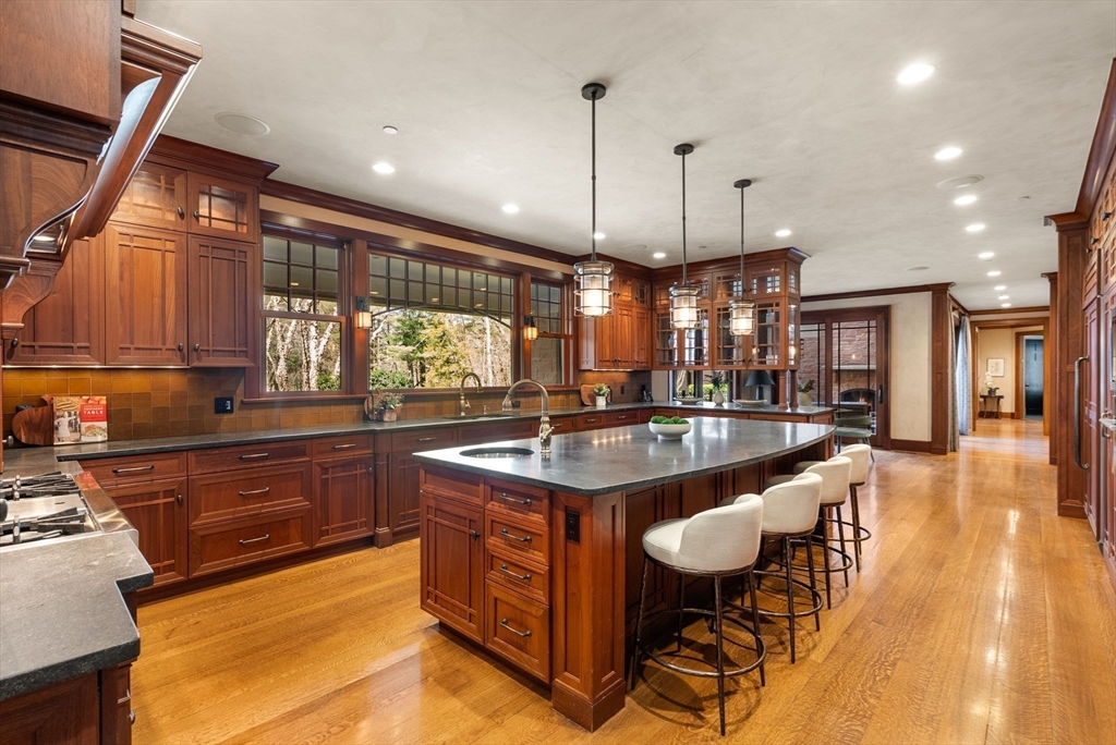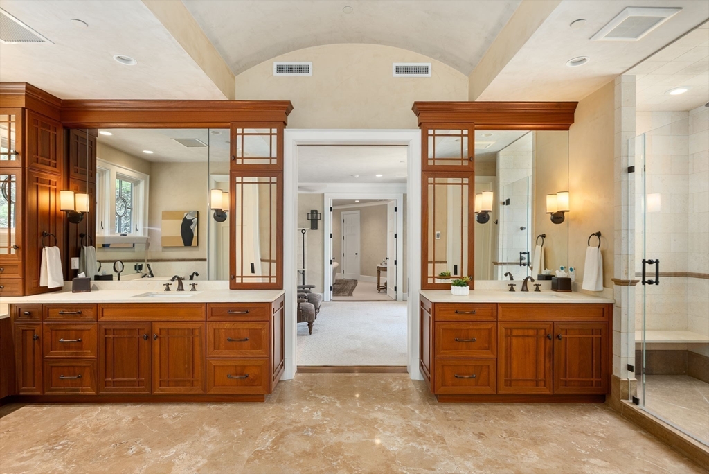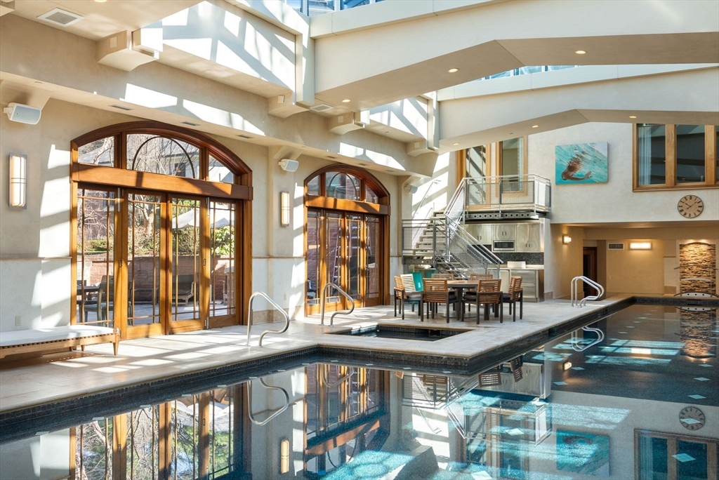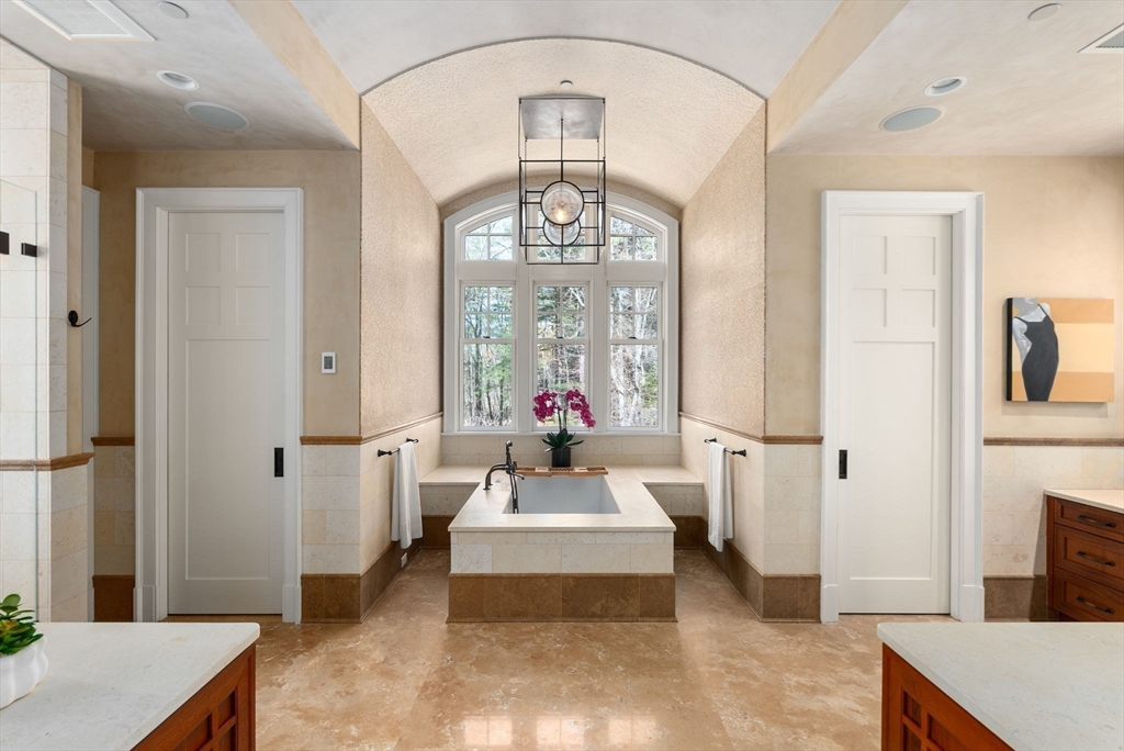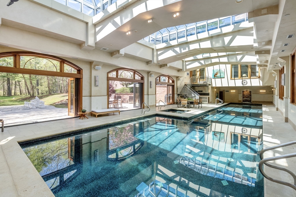 Set behind gates on more than 8 acres in Weston’s prestigious south side, this extraordinary estate abuts protected conservation land, offering rare privacy and natural seclusion. Spanning over 14,000 square feet, the residence is distinguished by soaring ceilings, finely detailed custom millwork, Venetian plaster, and imported stone—crafted to exacting standards throughout. Gracious yet functional interiors include an expansive chef’s kitchen, elegant formal living and entertaining spaces, executive office, and a banquet-scale dining room. The upper level features a serene primary suite with dual dressing rooms and spa bath, along with five additional ensuite bedrooms. A resort-style lower level delivers world-class amenities, including an indoor lap pool, half basketball court, theater, spa, gym, and bunk room. An elevator, whole-house generator, and 7-car heated garage with four EV chargers complete this private legacy estate of enduring distinction.