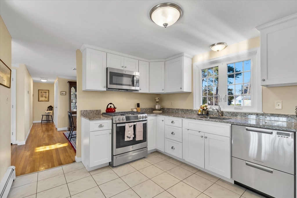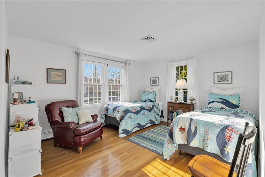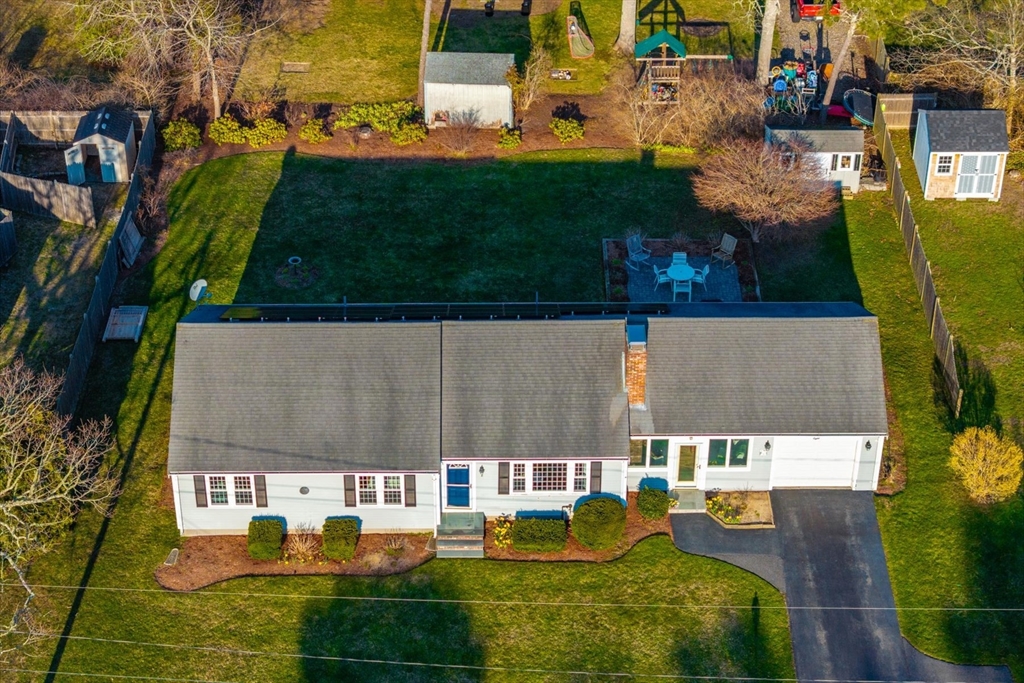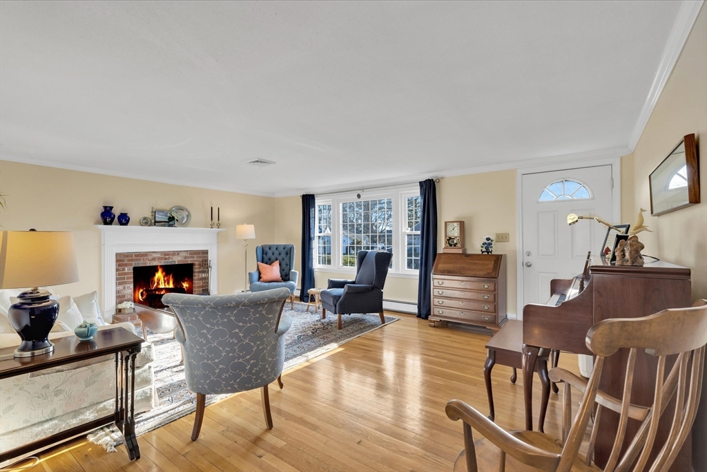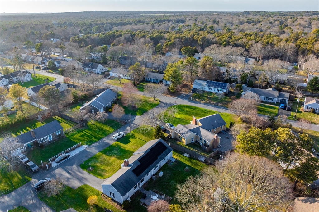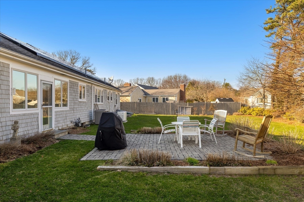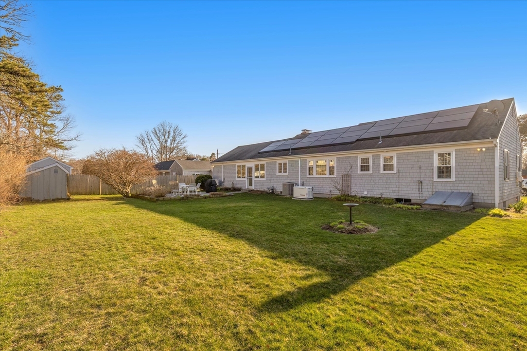 This is Cape Cod living, set back in Captain's Village you'll find a special gem. This well thought out ranch has all the features you need. It has been treasured and very well maintained. Single level living, gleaming hardwood floors throughout, updated kitchen with newer stainless steel appliances. The living room offers a bright place to relax beside your wood burning fire place. All three bedrooms are at the end of the hall, one of which has an ensuite full bath, as well as a shared full bath. Step into the sunroom that has recently been made into an all season room with the additional of a wall mounted mini-split for both heating and cooling options. Attached garage, Central A/C, irrigation, outdoor shower, generator, leased solar panels. The list goes on! Come see this one for yourself, it's a Cape Cod dream.