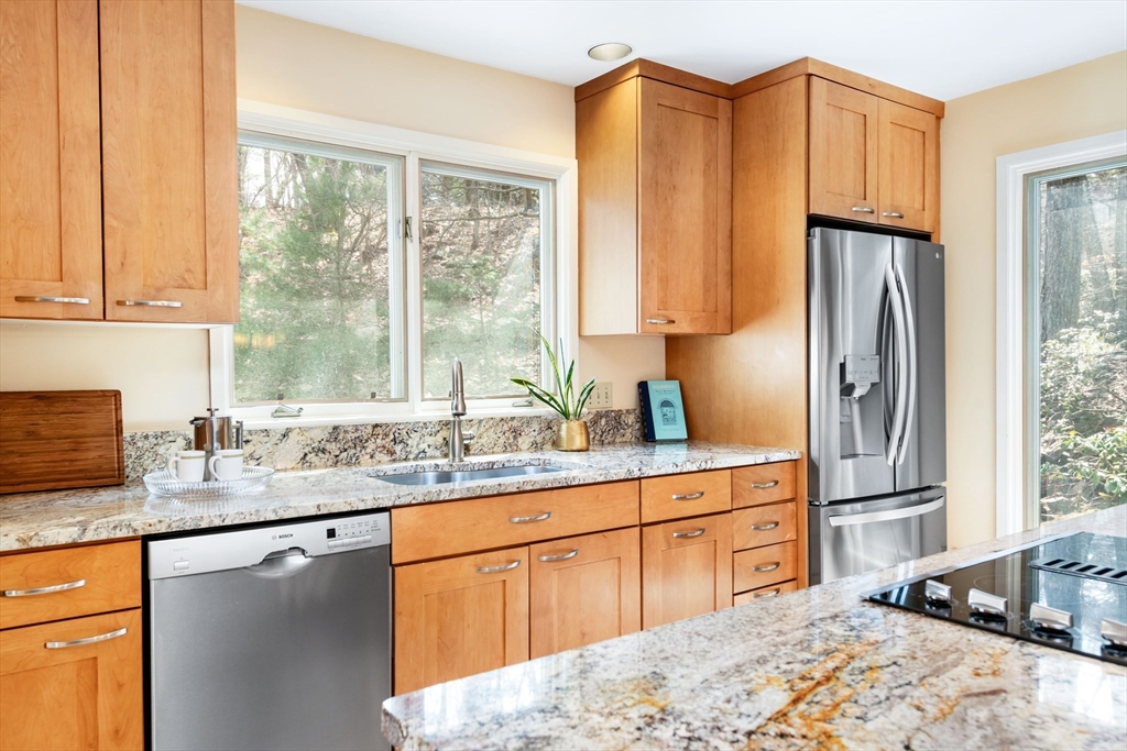 Set in a peaceful, leafy neighborhood close to schools and everything Milton has to offer, this home boasts quality construction, thoughtful architectural features, high ceilings and a versatile floor plan with ample space for living, working and hosting plus an in-law/guest suite or 1st fl primary . The great room with dining area and fireplace is bathed in natural light from its oversized windows. The chef's kitchen is warm and inviting with center island and breakfast nook and sitting area. A butler's pantry, laundry, bath, family room + private bedroom suite complete the first floor. The second floor features a loft area perfect for studying, primary suite and two additional bedrooms and 2nd bath. The lower level has an office/gym with full bath and a separate entrance as well as a bonus play room. Outside, you'll enjoy a wrap-around composite deck and brick patio. This property has been meticulously maintained for and is ready for a new owner to add their touches!