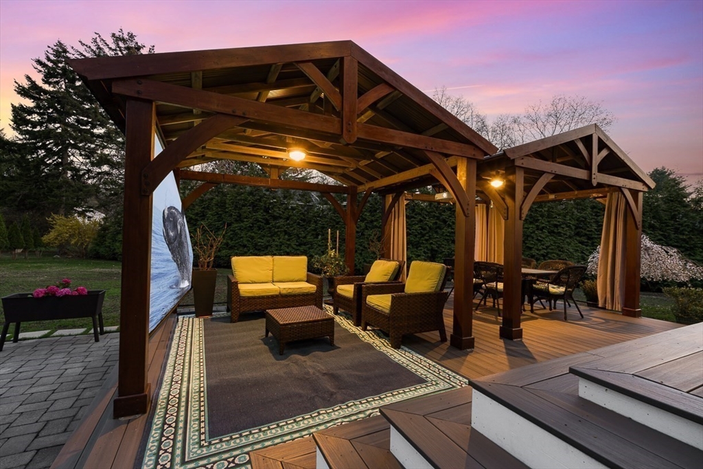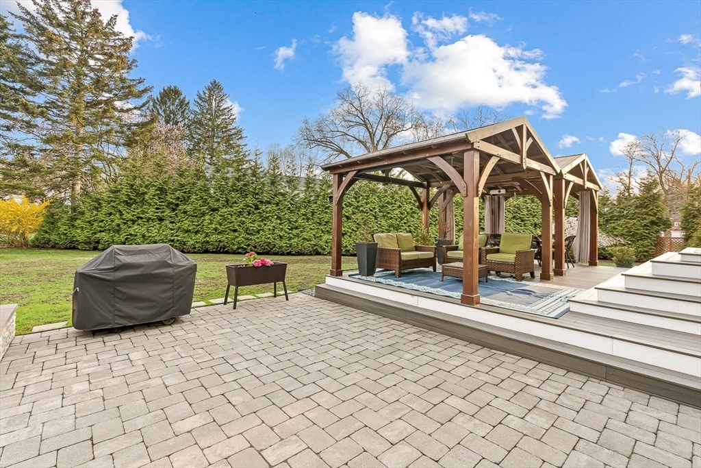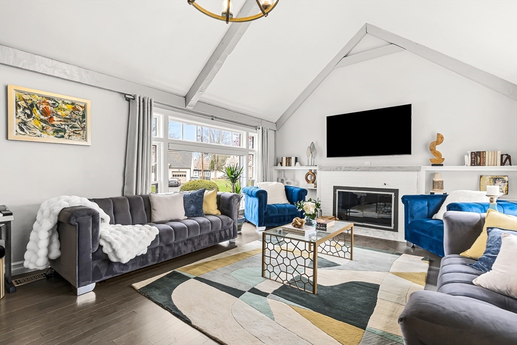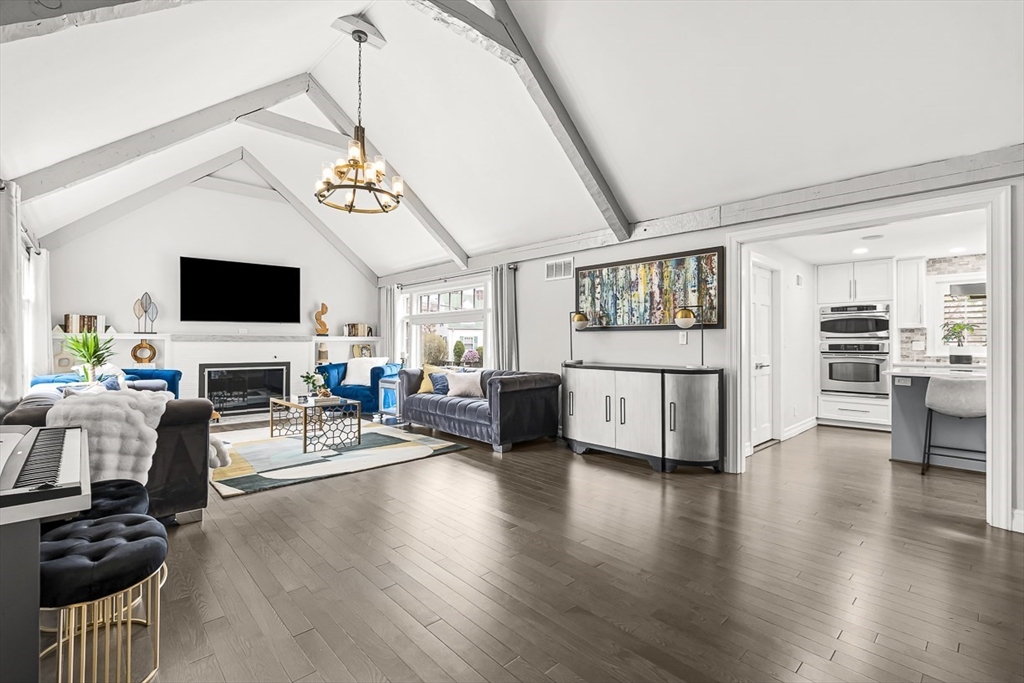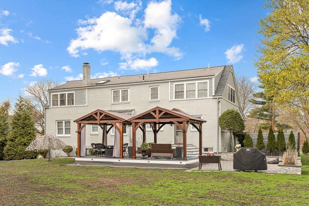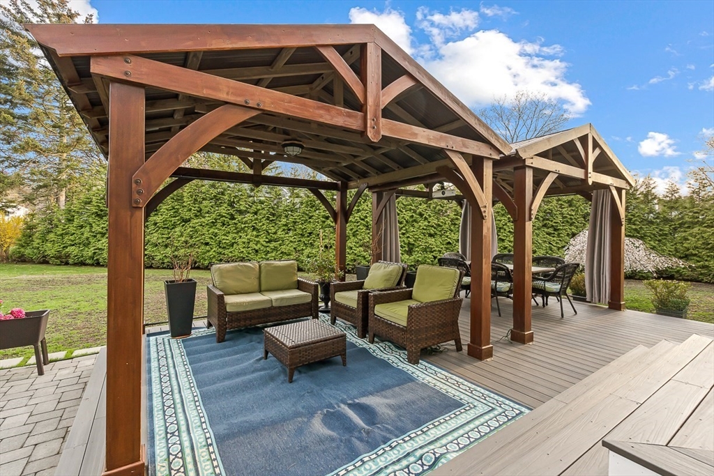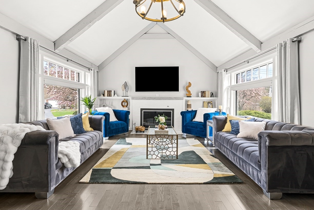 This beautifully updated and stylish colonial, set in a prime Lexington neighborhood, masterfully combines sophisticated living spaces with exceptional outdoor living. The open-concept main level flows seamlessly into a dramatic living room with soaring cathedral ceiling, fireplace, and abundant natural light from oversized windows. The gourmet kitchen features a large center island, premium appliances, and generous cabinetry, while opening to both the dining area and the outdoors. The highlight is the expansive composite deck with covered pavilions — ideal for year-round entertaining, al fresco dining, summer movie nights, and tranquil evenings in the private, maturely landscaped backyard. Upstairs, the luxurious primary suite offers a serene retreat with ample closets and a spa-like bathroom featuring a frameless glass shower and freestanding soaking tub. Finished lower level adds versatility with a large rec room, gym, and half bath. Style, space & function! Ready for Quick Close!