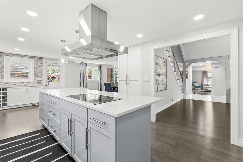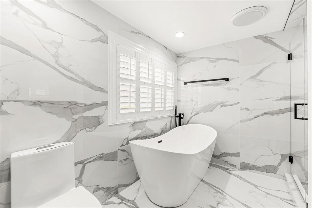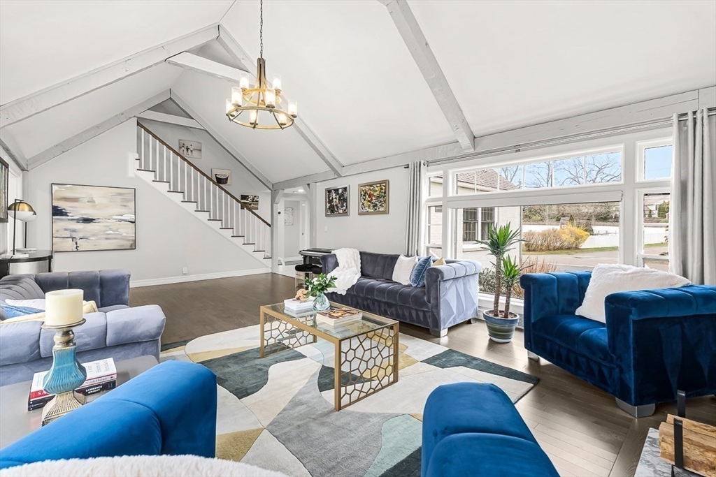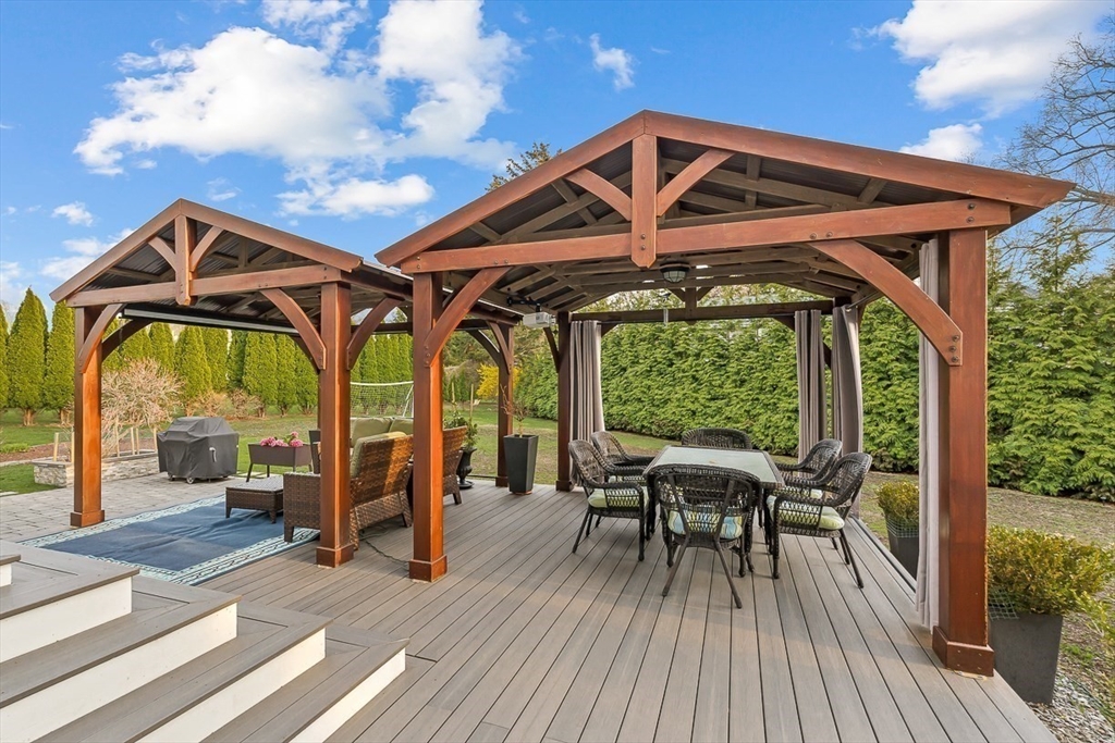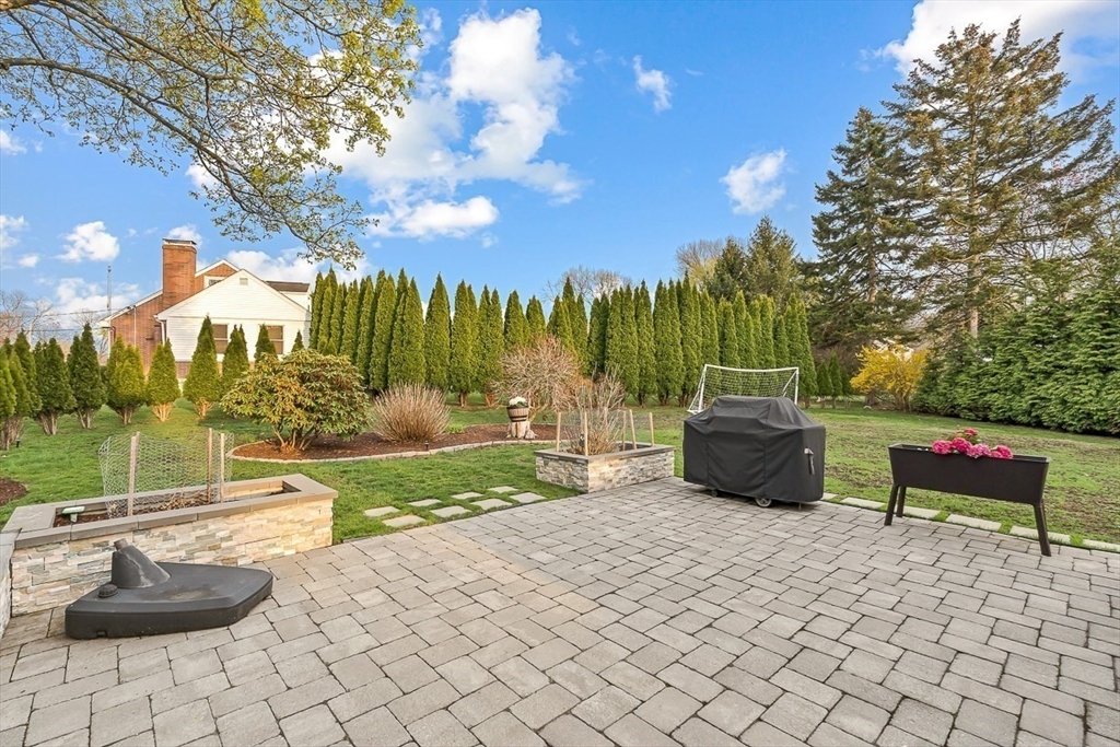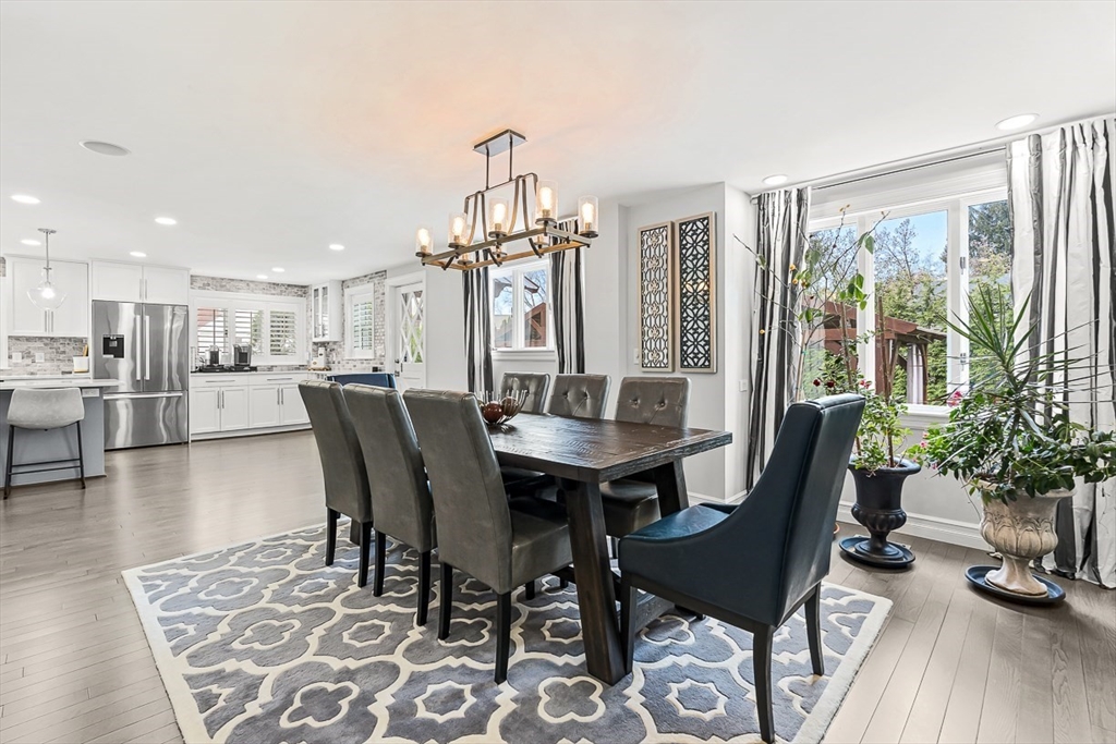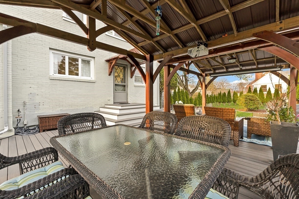 This beautifully updated and stylish colonial, set in a prime Lexington neighborhood, masterfully combines sophisticated living spaces with exceptional outdoor living. The open-concept main level flows seamlessly into a dramatic living room with soaring cathedral ceiling, fireplace, and abundant natural light from oversized windows. The gourmet kitchen features a large center island, premium appliances, and generous cabinetry, while opening to both the dining area and the outdoors. The highlight is the expansive composite deck with covered pavilions — ideal for year-round entertaining, al fresco dining, summer movie nights, and tranquil evenings in the private, maturely landscaped backyard. Upstairs, the luxurious primary suite offers a serene retreat with ample closets and a spa-like bathroom featuring a frameless glass shower and freestanding soaking tub. Finished lower level adds versatility with a large rec room, gym, and half bath. Style, space & function! Ready for Quick Close!