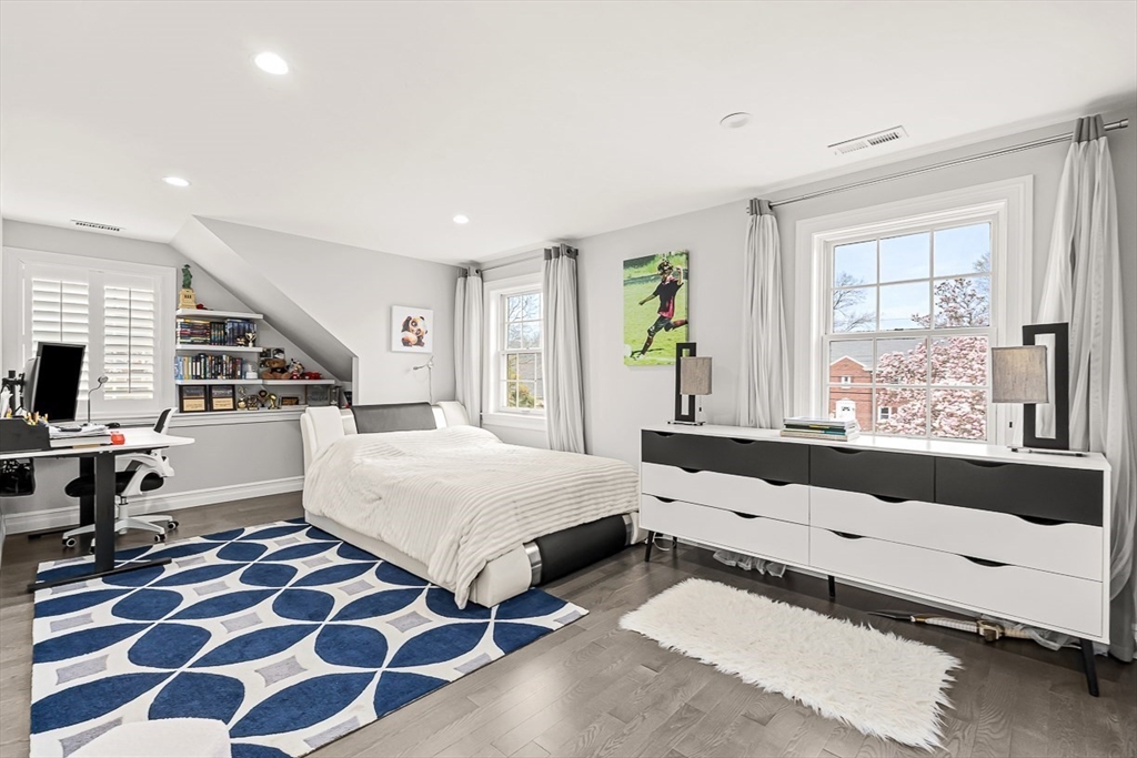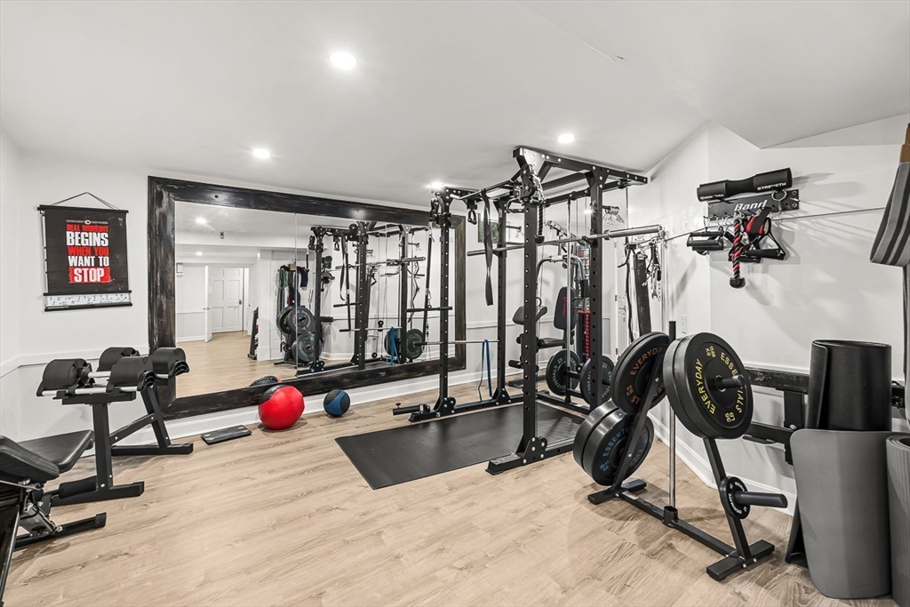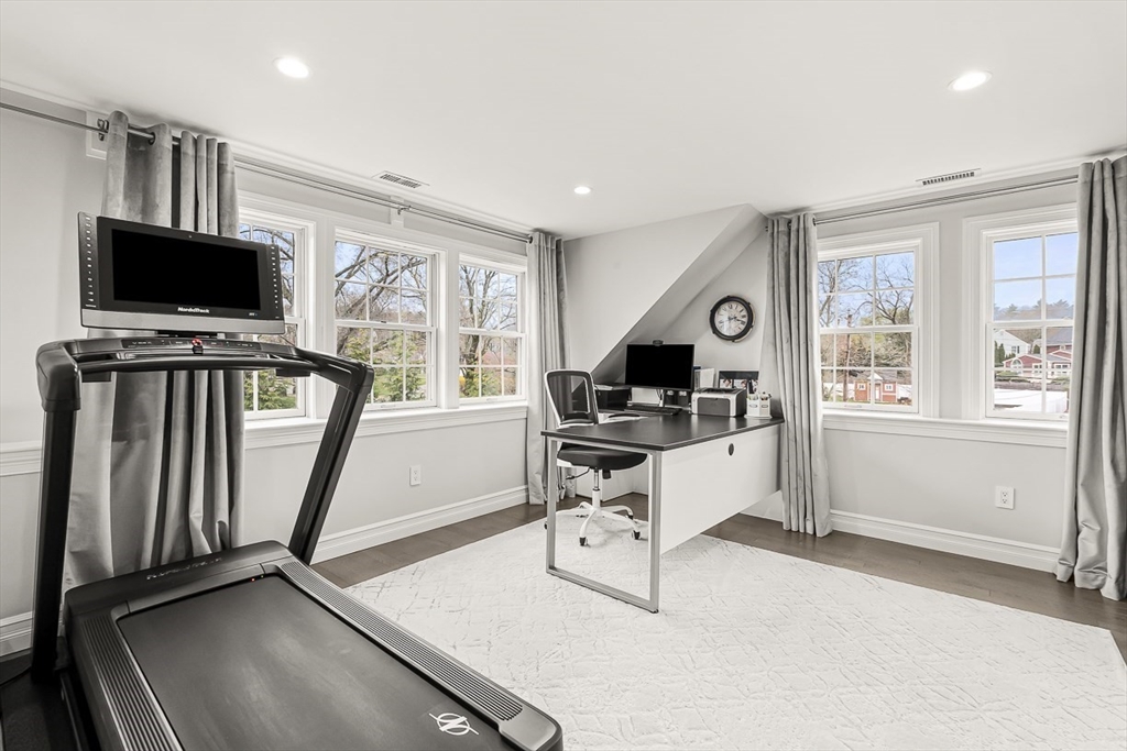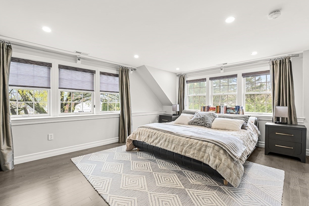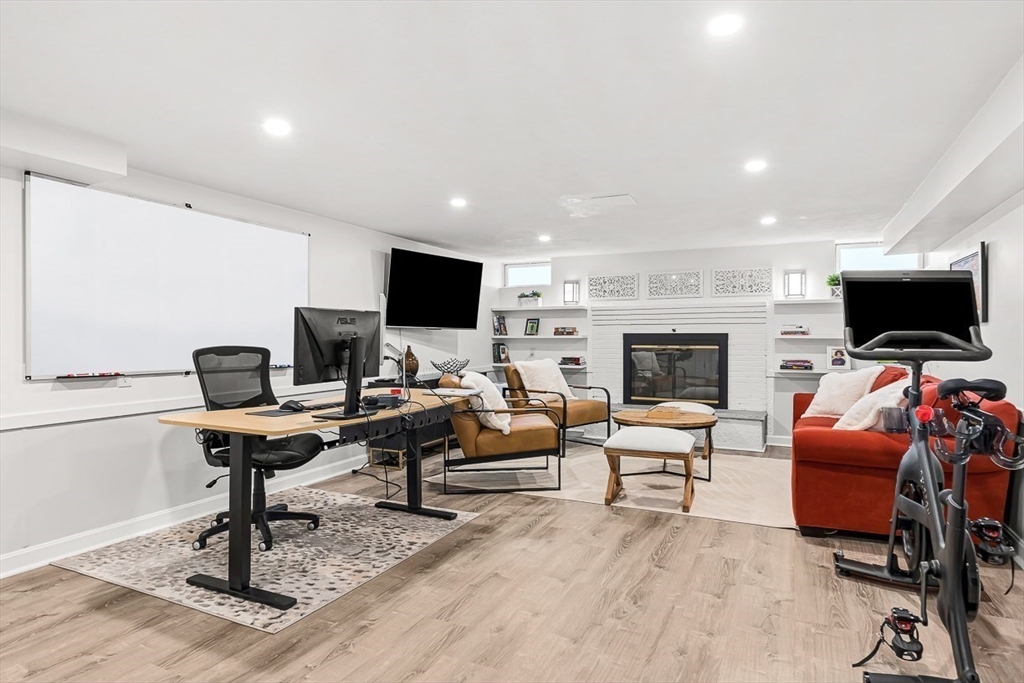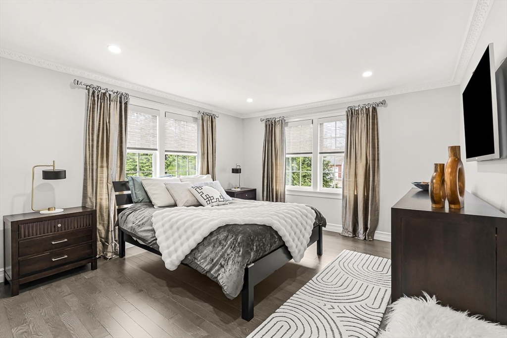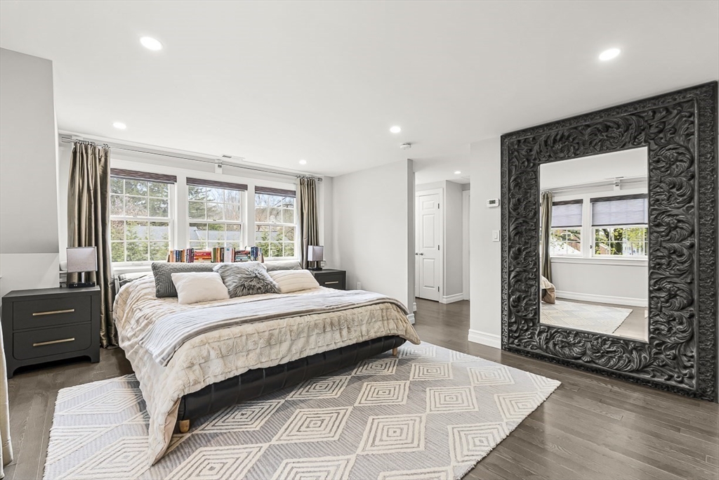 This beautifully updated and stylish colonial, set in a prime Lexington neighborhood, masterfully combines sophisticated living spaces with exceptional outdoor living. The open-concept main level flows seamlessly into a dramatic living room with soaring cathedral ceiling, fireplace, and abundant natural light from oversized windows. The gourmet kitchen features a large center island, premium appliances, and generous cabinetry, while opening to both the dining area and the outdoors. The highlight is the expansive composite deck with covered pavilions — ideal for year-round entertaining, al fresco dining, summer movie nights, and tranquil evenings in the private, maturely landscaped backyard. Upstairs, the luxurious primary suite offers a serene retreat with ample closets and a spa-like bathroom featuring a frameless glass shower and freestanding soaking tub. Finished lower level adds versatility with a large rec room, gym, and half bath. Style, space & function! Ready for Quick Close!