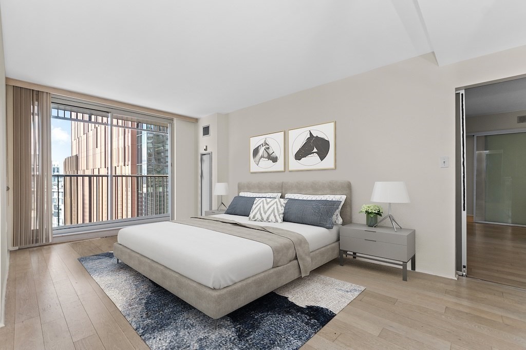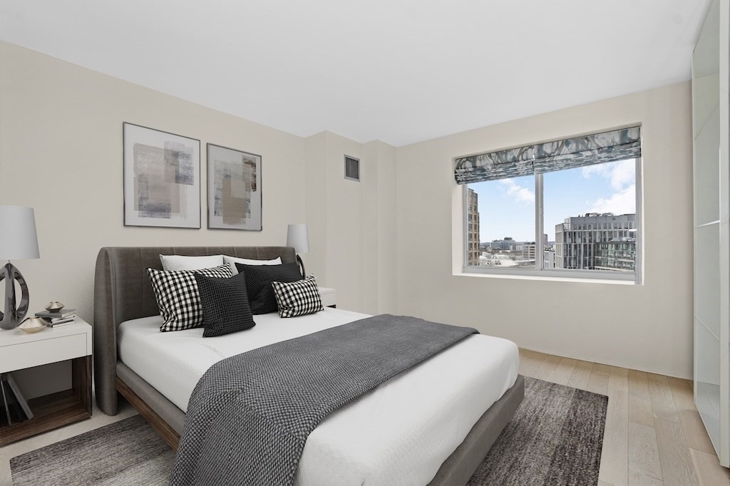 Stunning two bedroom and two bathroom condo with Double Balcony! Beautifully designed residence featuring wood floors and floor-to-ceiling sliding glass doors in living room and master bedroom. Custom designed kitchen with granite countertops, and a built-in wine refrigerator. Abundant storage space in this unit. Bathrooms have Porcelanosa fixtures and custom tile floors. Ideal for investors or end users alike, this unit includes one valet parking space. Unit is virtually staged. Building amenities include 24/7 concierge and valet parking,on-site property management,gym with lap pool and hot tub,movie room, gathering and event room, complimentary shuttle service, laundry dryclean pick up and drop off. Beautiful North Point Park in front of the building. Whole Foods close by. Steps to Charles River and Cambridge Crossing!
