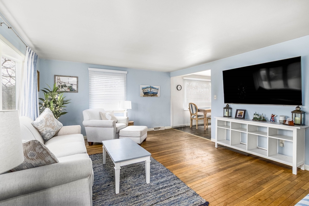 Welcome to Maravista, a sought-after seaside peninsula known for its ponds and beach access, coastal charm, and easygoing lifestyle. Tucked away on a dead-end street and abutting conservation land, this 3-bedroom home offers privacy and a peaceful natural setting. The main-level primary bedroom adds convenient one-floor living, while two full baths provide flexibility for guests and family. Enjoy central air conditioning, recently updated natural gas heat, hardwood floors in the living room and primary bedroom, plus a bright sunroom included in the 1,152 sq ft of living space. A full basement offers excellent storage or future potential. Connected to town sewer. A wonderful opportunity to enjoy the best of Falmouth living near water, nature, and also close to shopping and activities.