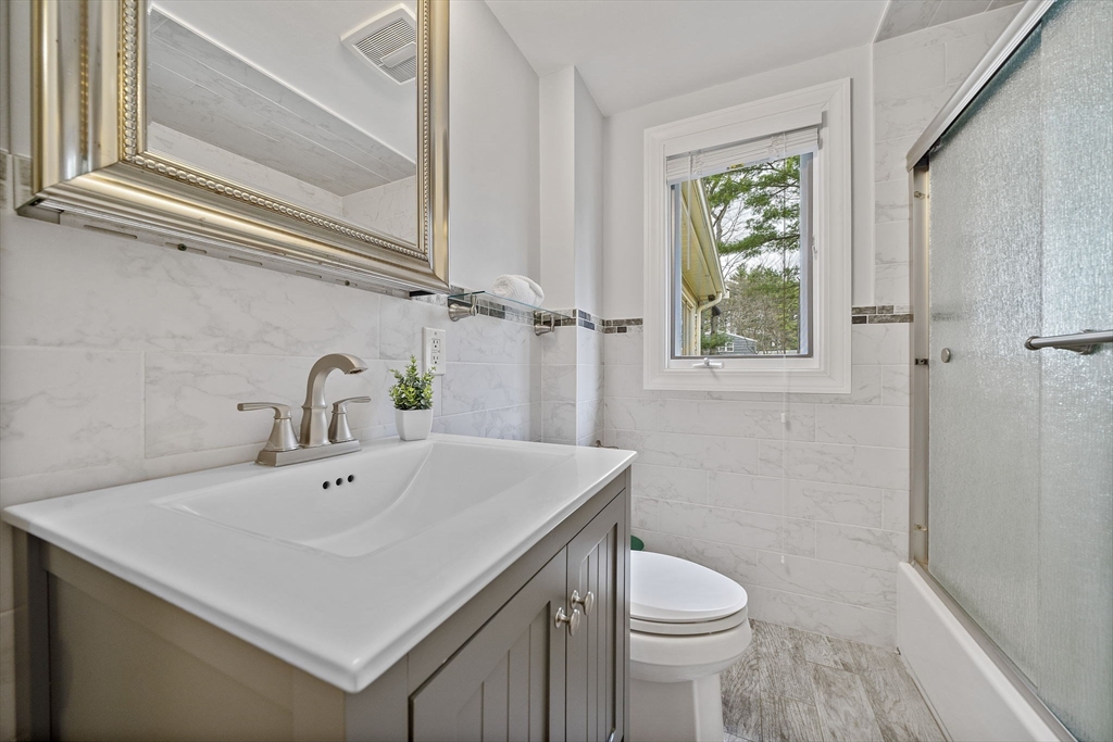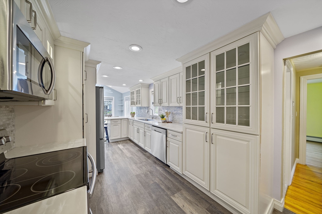 This picture-perfect ranch where timeless charm meets modern comfort, and easy living takes center stage! Move-in ready and lovingly updated, this adorable home boasts gleaming hardwood flooring throughout, a beautifully renovated bathroom, and a stunning galley-style kitchen featuring gorgeous cream-colored cabinetry with truly abundant storage at every turn. The kitchen flows effortlessly into a bright, sun-drenched eating area overlooking the private backyard, a perfect setting for morning coffee or relaxed evening gatherings. Back inside, the dramatic vaulted ceiling in the main living room is a true architectural showstopper, creating an airy, open atmosphere that makes the 1,485 square feet feel remarkably spacious and wonderfully light-filled. An open staircase leads down to the newly finished basement, delivering even more flexible living space ideal for a home office, media room, or gym. Sharon's top-rated schools, commuter rail and all the best in town. This gem won't last!