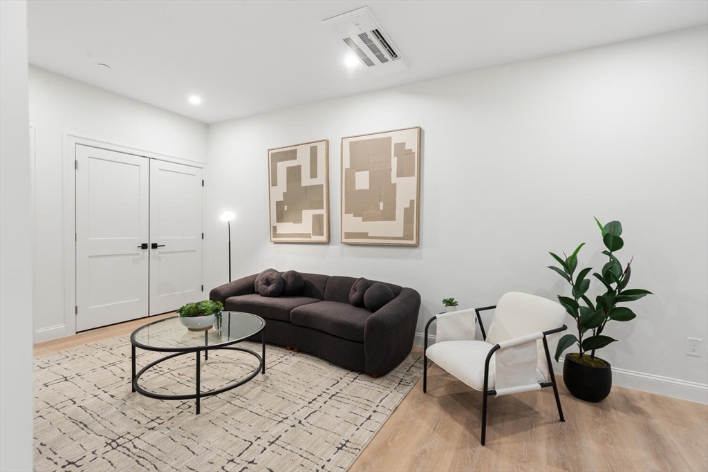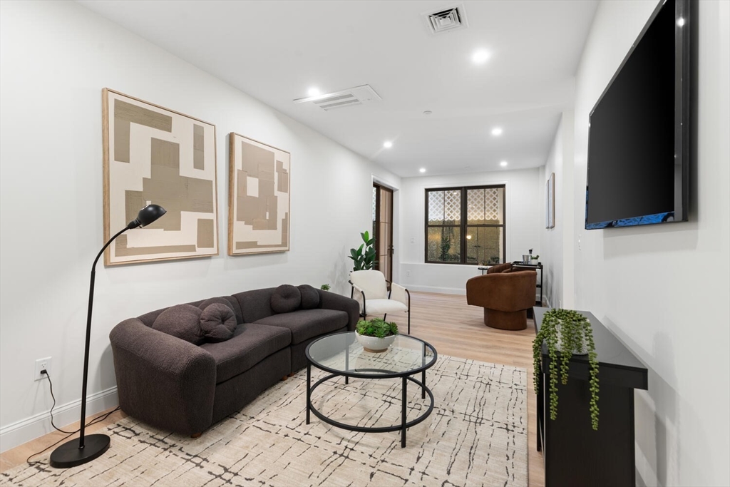 Welcome to 27 Shepard Street in Brighton, ideally located just moments from Brighton Center, BMC Brighton, and multiple MBTA options for an easy commute. Unit 1 features its own private entry and is a spacious 3-bed, 2.5-bath duplex offering 1,829 sq ft of thoughtfully designed living space across two levels. The main level features an open living area with white oak hardwood floors, a bright living room, and a chef’s kitchen with large island, stone countertops, and a premium Fisher & Paykel appliance package. A convenient half bath adds functionality for guests. The primary suite includes a walk-in closet and beautifully appointed marble and limestone spa-like ensuite bath. The lower level offers a versatile family room with direct exterior access, two additional bedrooms, a full bath, and laundry. Enjoy private outdoor space with a patio, plus one off-street parking space, close to shops, dining, parks, and major roadways.