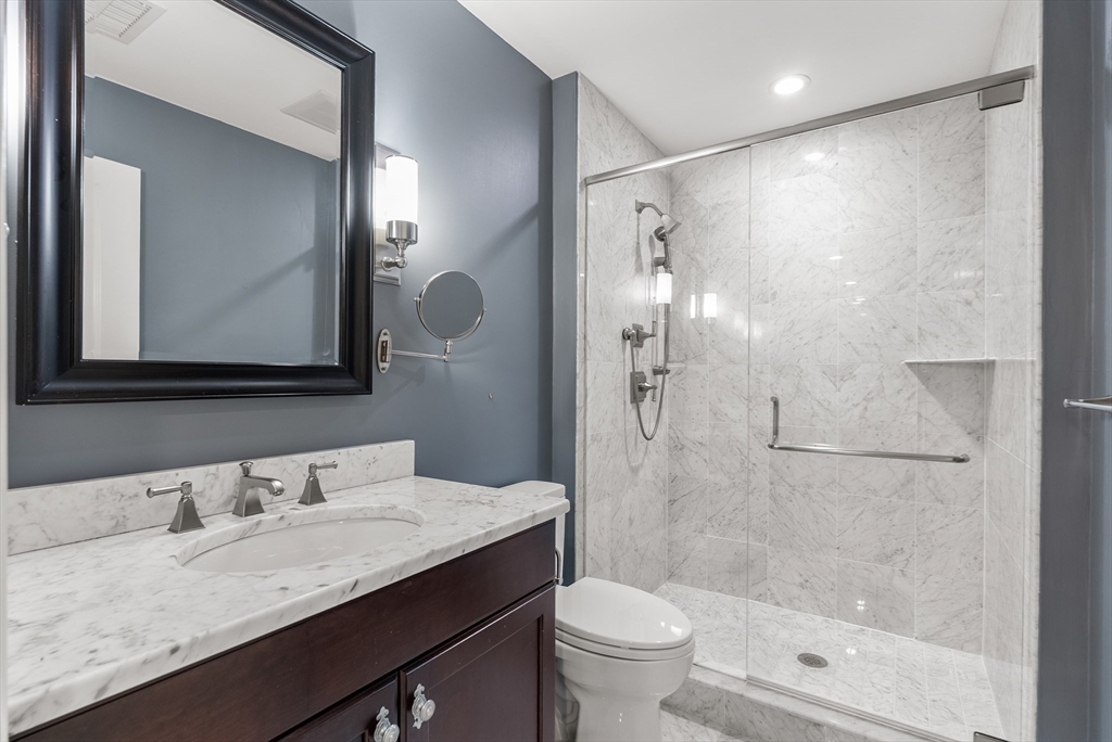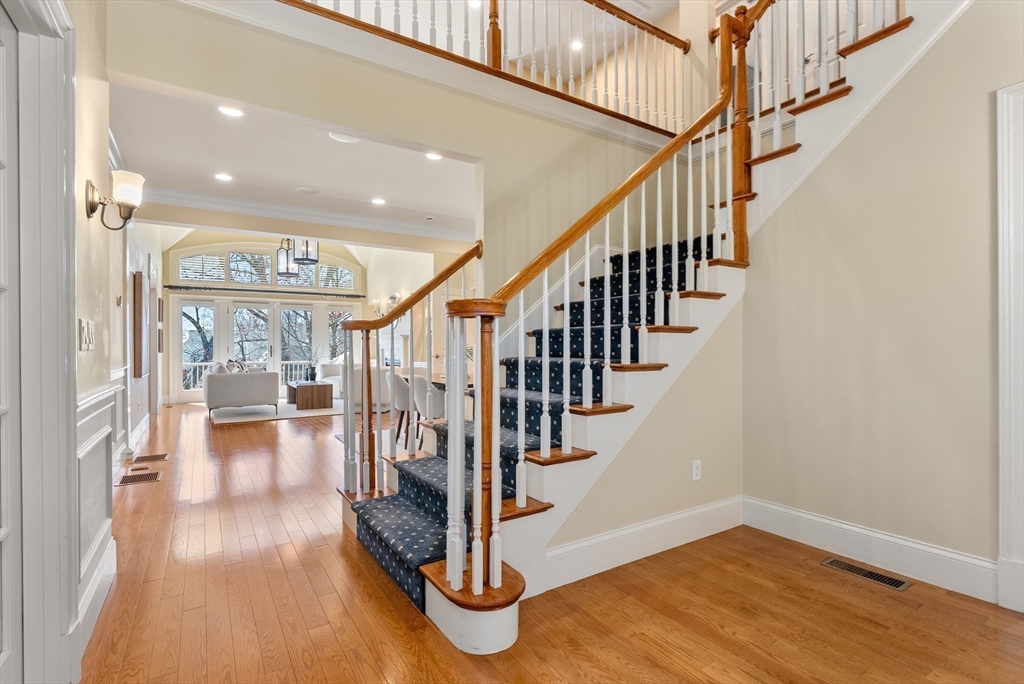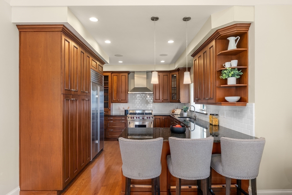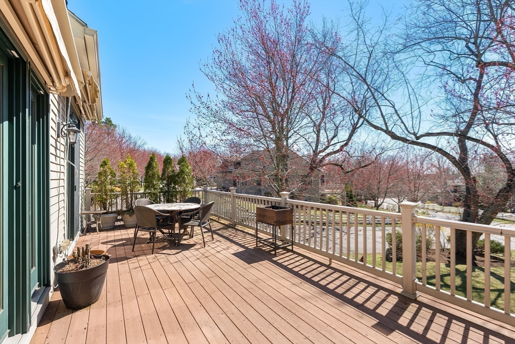 The Woodlands at Belmont Hill. 7 miles from Boston, this luxury community abuts Lone Tree Hill Conservation and is surrounded by lush grounds. Spacious & sun filled “Churchill” style end-unit allows the ease of one level living with direct garage access. Main level features a two-story foyer, office with built-ins, dining room, living room with gas fireplace, built-ins and cathedral ceiling, primary en-suite with two walk-in closets, chef’s kitchen with peninsula and adjacent room to be used as a sitting or breakfast room. A half bath and laundry room are also on the main level. Sliders lead to an exclusive use deck overlooking mature plantings and green space. Two additional bedrooms, a walk-in cedar closet, 2 full baths and a loft area are located on the second floor. The walk-out lower level includes a family room, impressive study with built-ins and fireplace and a full bath. C/A, gas cooking &heat, Sonos sound system, beautiful perennial garden. Close to shops and Belmont Center.
