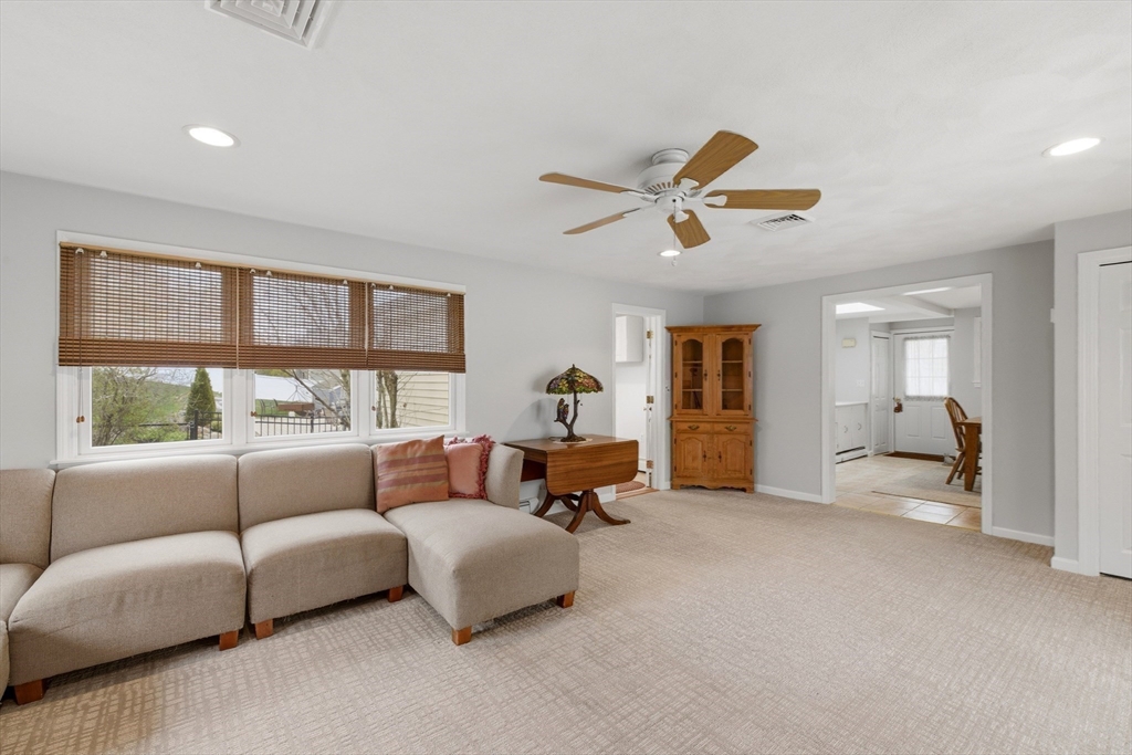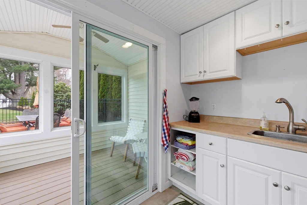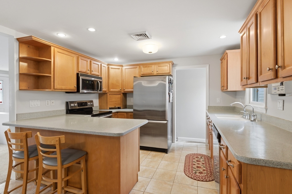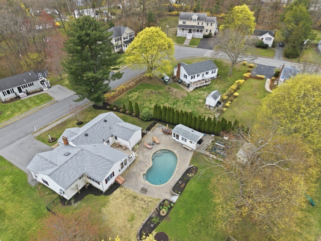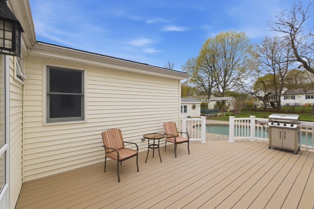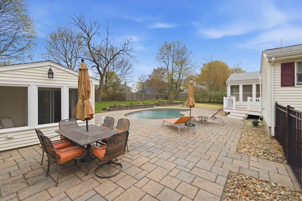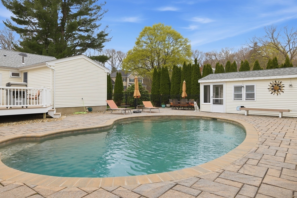 This sprawling ranch with attached garage offers tremendous space and a resort-like yard in one of Woburn's top west side locations. Featuring a sunny mudroom with first floor laundry before entering the massive family room with gas fireplace, 1/2 bath and views of the pool. The kitchen/dining areas are wide open providing great entertainment space and are highlighted by stainless appliances, Corian counters and breakfast bar. A formal living room is positioned at the front of the home and separates the living space from the 3 bedrooms and full bath. A primary suite at the end of the hall offers a walk-in closet and private bath. A finished basement offers a flex space and is complete with another 1/2 bath. Plenty of storage is found in the unfinished area where you'll find a newer heating system. The stunning pool (2016) is enhanced with a saltwater generator, heat pump and in-floor cleaning jets. Additional features include pool house, sprinkler system, 5-year-old roof & central air.