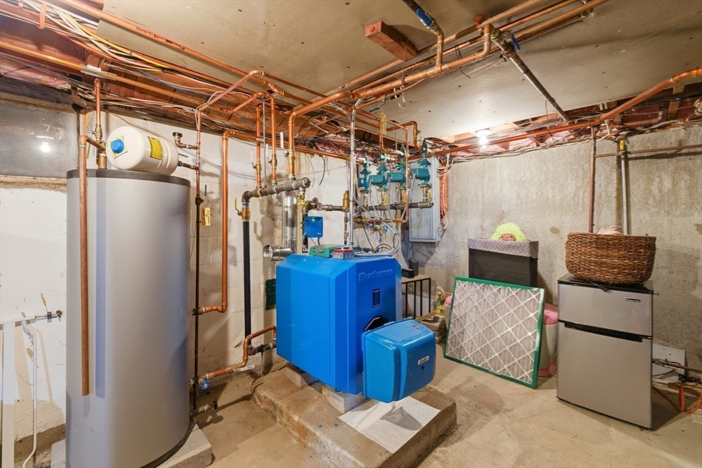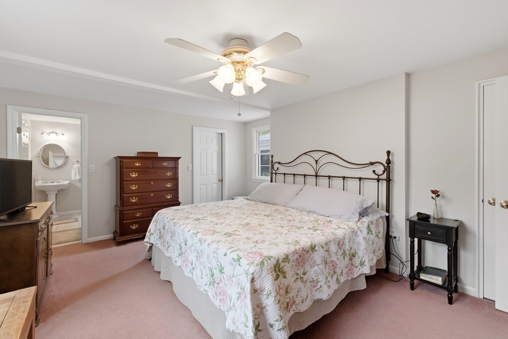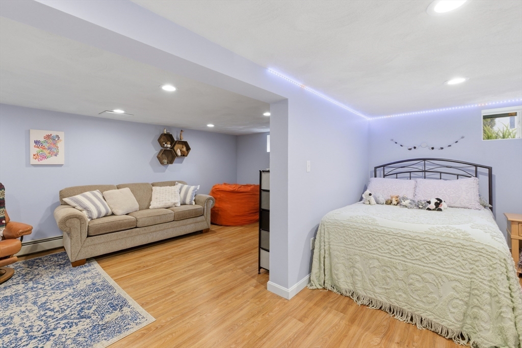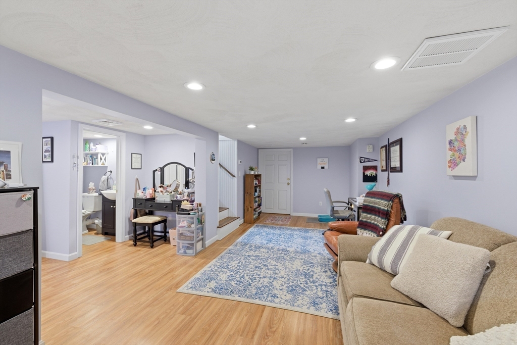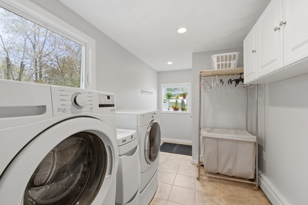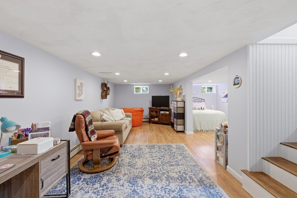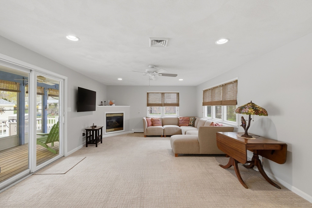 This sprawling ranch with attached garage offers tremendous space and a resort-like yard in one of Woburn's top west side locations. Featuring a sunny mudroom with first floor laundry before entering the massive family room with gas fireplace, 1/2 bath and views of the pool. The kitchen/dining areas are wide open providing great entertainment space and are highlighted by stainless appliances, Corian counters and breakfast bar. A formal living room is positioned at the front of the home and separates the living space from the 3 bedrooms and full bath. A primary suite at the end of the hall offers a walk-in closet and private bath. A finished basement offers a flex space and is complete with another 1/2 bath. Plenty of storage is found in the unfinished area where you'll find a newer heating system. The stunning pool (2016) is enhanced with a saltwater generator, heat pump and in-floor cleaning jets. Additional features include pool house, sprinkler system, 5-year-old roof & central air.