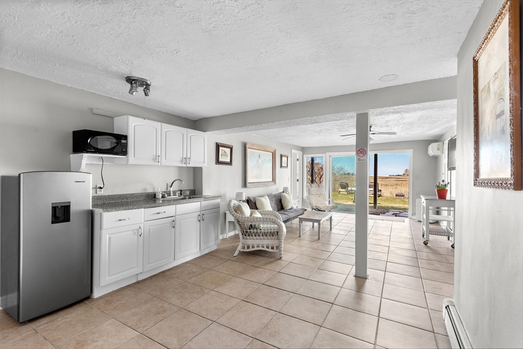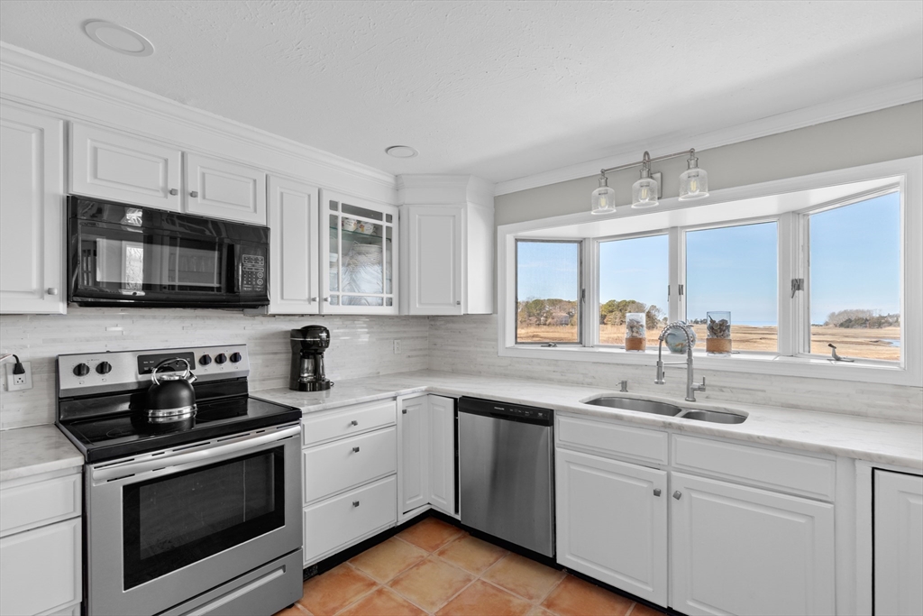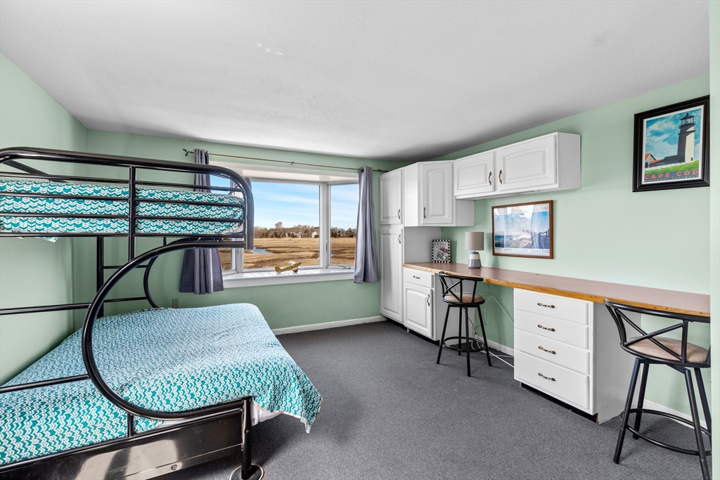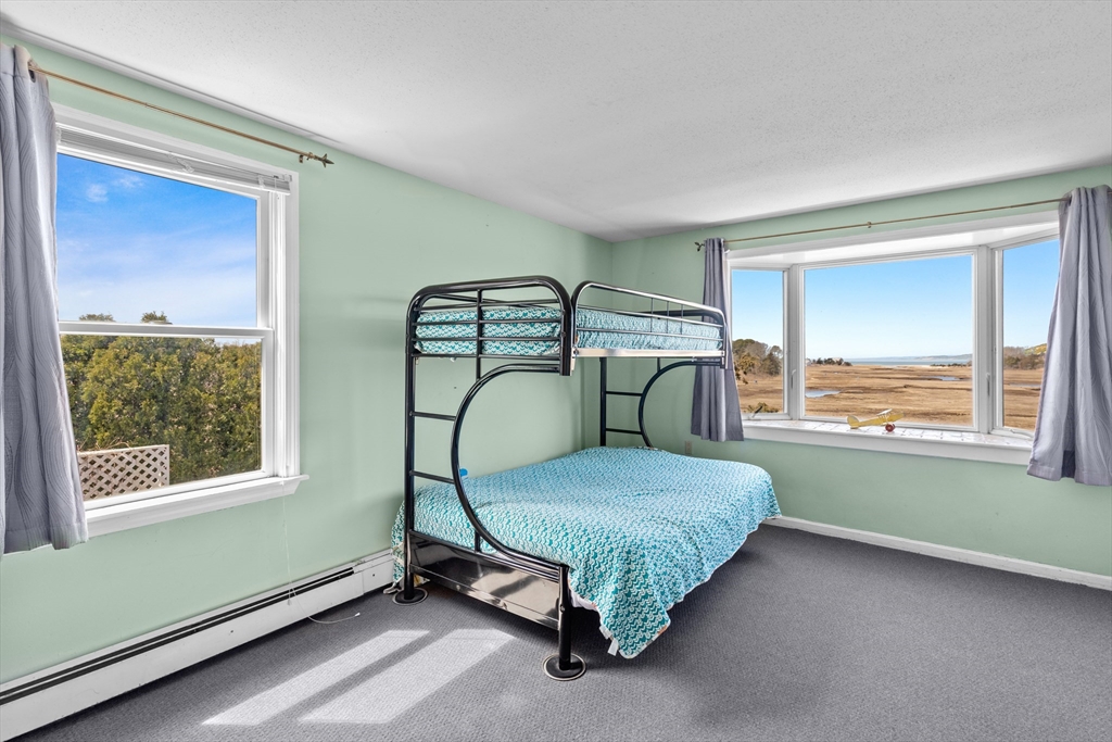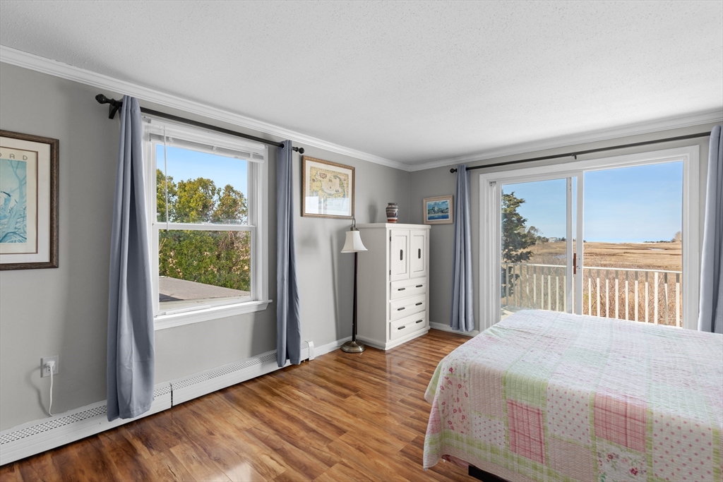 Exceptional marshfront home offering expansive views of Cape Cod Bay in Orleans. Set on 1.12 private acres, this spacious 4-bedroom, 3.5-bath home captures the beauty of the Cape with sweeping marsh vistas and ever-changing coastal light. The thoughtfully designed layout provides generous living spaces ideal for relaxing or entertaining, with large windows that frame the natural surroundings. The living area flows to an outdoor deck--the tranquil waterfront setting. The home offers comfortable accommodations across multiple levels, including a finished lower level and separate apartment above the garage providing privacy for family and guests. With a strong rental history, this property presents an excellent opportunity for investment, seasonal enjoyment, or year-round living. Rare combination of acreage, marshfront setting, and breathtaking views of Cape Cod Bay.