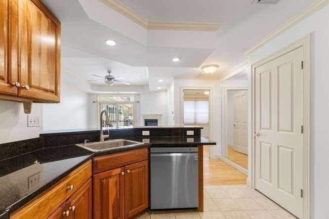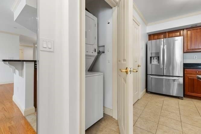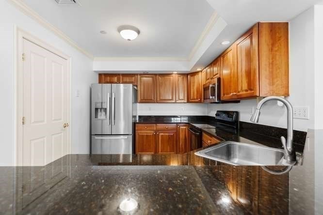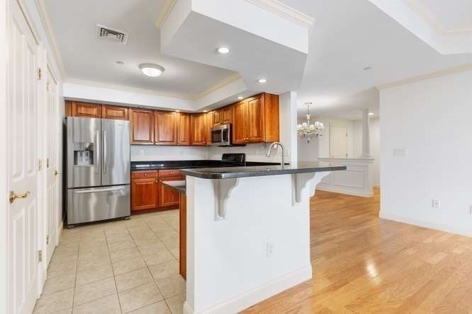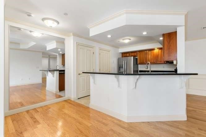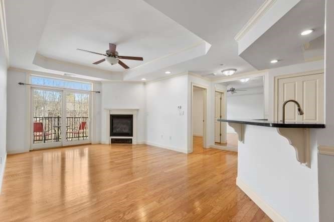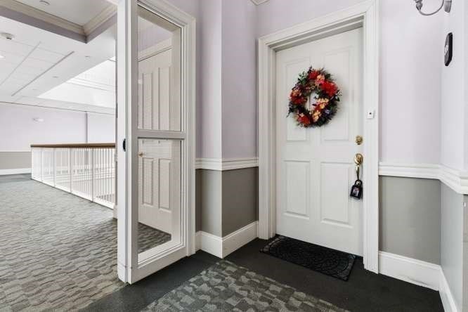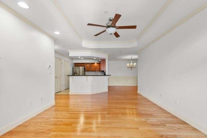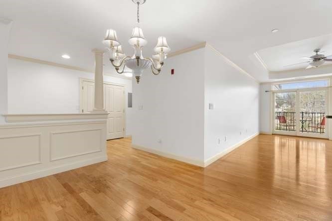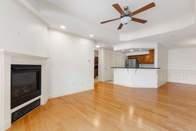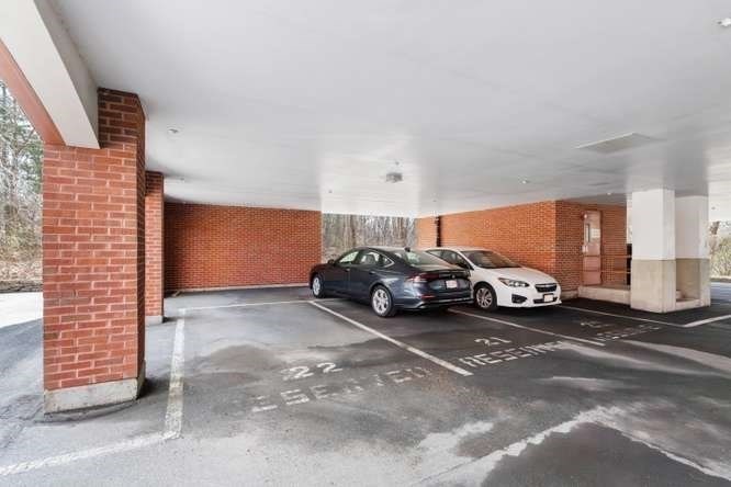 Located on a quiet cul-de-sac overlooking the Shawsheen Trail, this immaculate two bedroom, two bathroom of Riverbend Crossing offers comfortable, convenient living for the 55+ Community. Enjoy the abundant natural light accentuating freshly painted walls and gleaming hardwood floors. A fully stainless steel applianced kitchen with tile floor, cherry cabinets, granite countertops, in-unit laundry, and breakfast bar flows seemlessly into the spacious living room with natural gas fireplace. Pass on thru the sliders to a private balcony offering scenic views of mature trees and natural surroundings. Entertain guests in a separate dining area tastefully accentuated with chair rail and crown moldings. A deeded parking space beneath the building offers year round protection from the elements. Common areas include an inviting fireplaced lobby/sitting area, a skylit reading/sitting area on the first floor, common activity room with kitchen, additional basement storage and so much more.