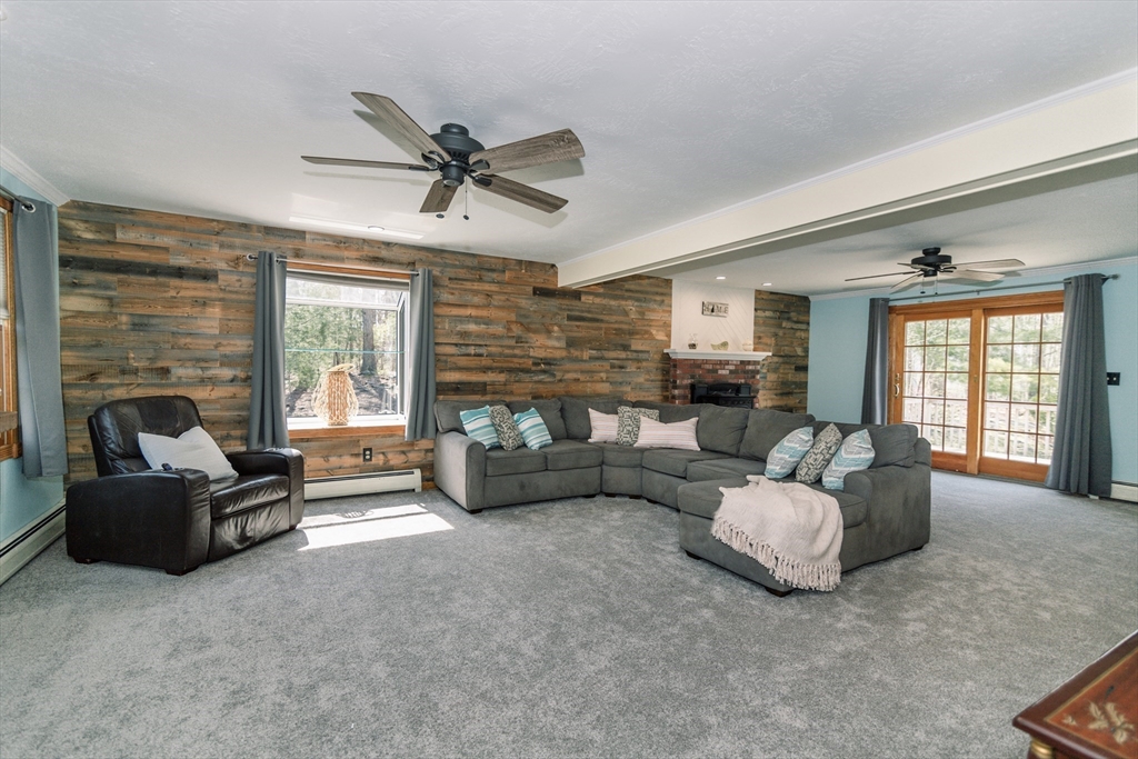 Wonderfully spacious and sprawling 5-bedroom, 3-bathroom home waiting for its new owners to love! This home is beautifully situated on a flat, landscaped property with a perfect mix of sun and shade. The above ground pool will be opened soon and will be ready for you to start hosting Summer get togethers! The home uniquely offers an opportunity for multi-generational living with an impressive, finished garage boasting an expansive livingroom, a large bedroom, a second laundry room, an office AND a private bathroom all with fresh, new carpet! Enjoy fresh paint and new carpet in the main part of the house, well-sized bedrooms, 2 cozy pellet stoves, and an open kitchen to dining room space for ultimate convenience. Not only is this home a half hour to Boston or a variety of ocean beaches, you can also escape to the mountains in about an hour. Ideally located close to major routes and highways, you'll find yourself away from several local restaurants, shopping and so much more!
