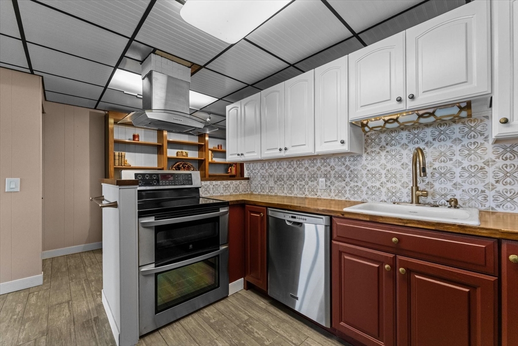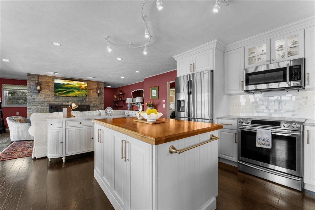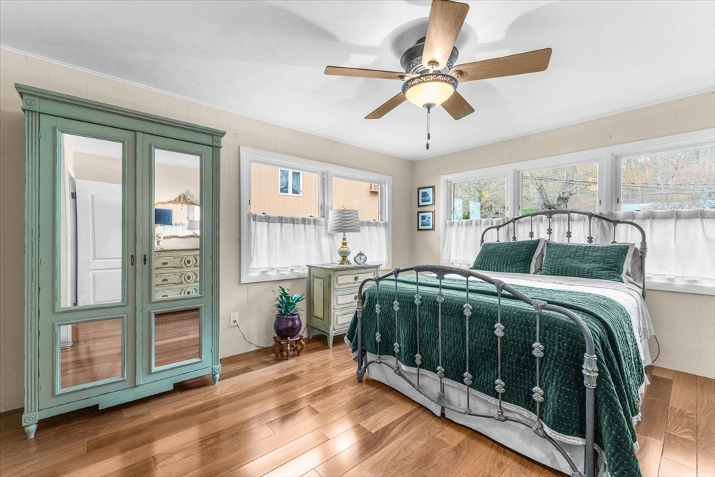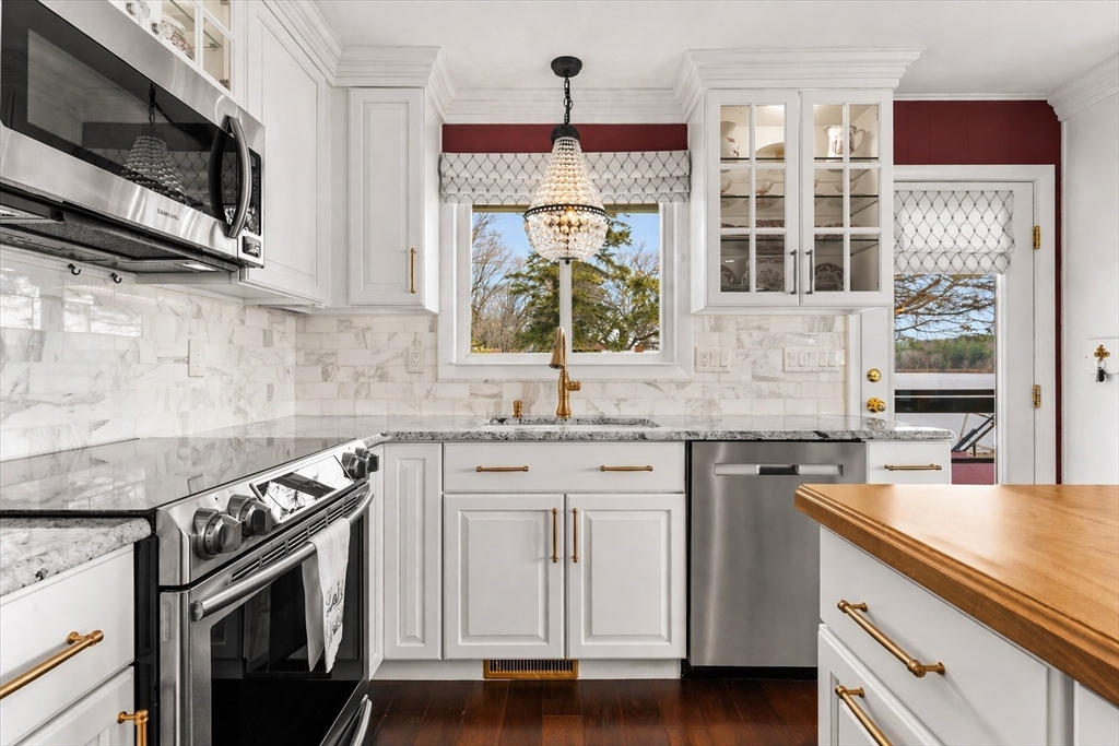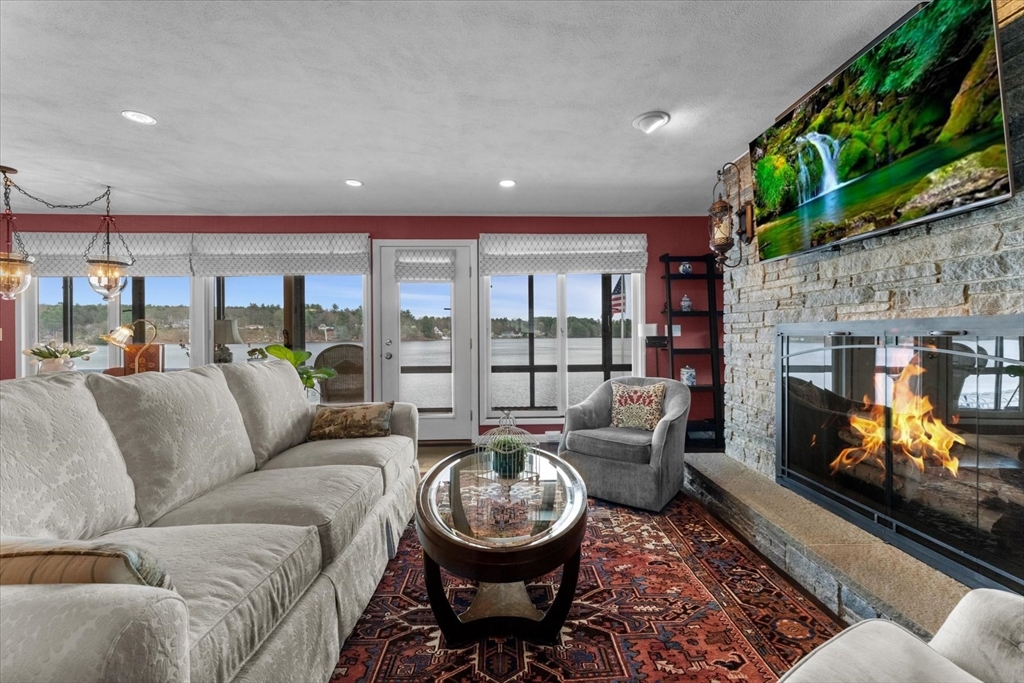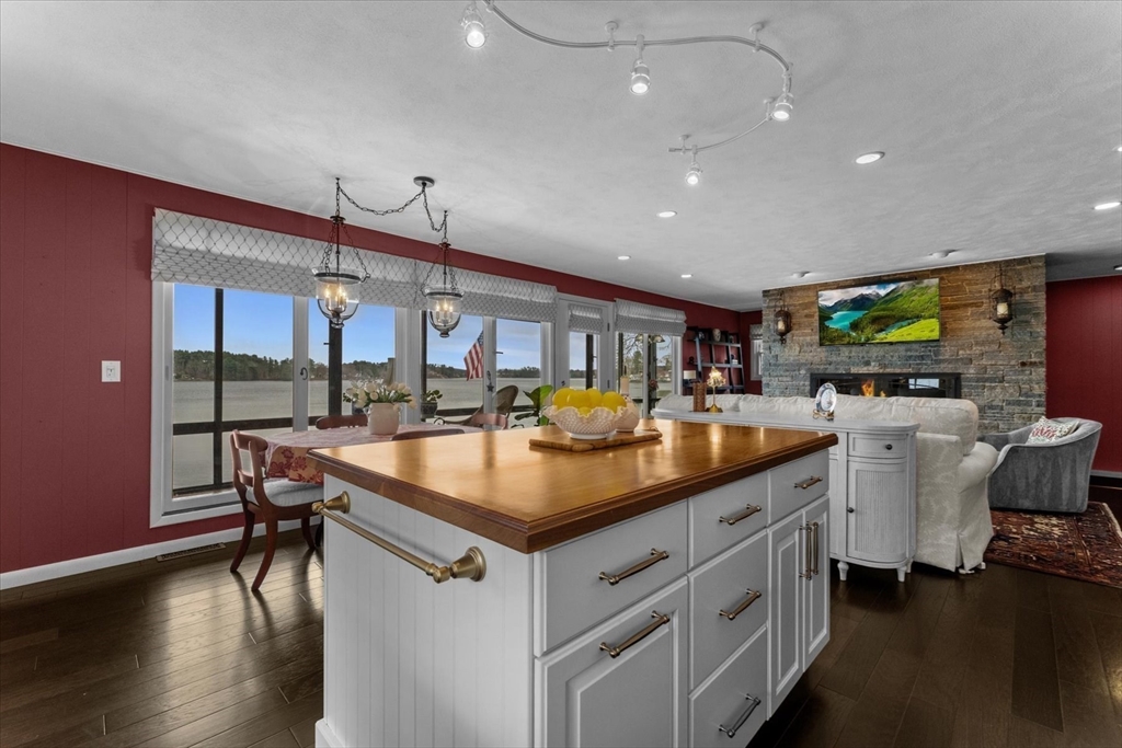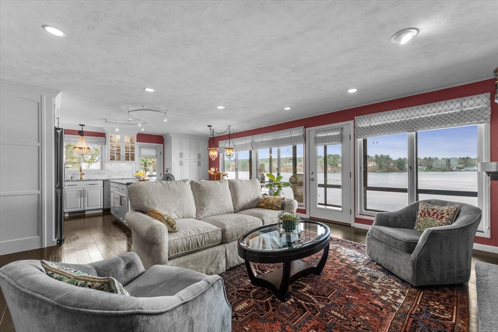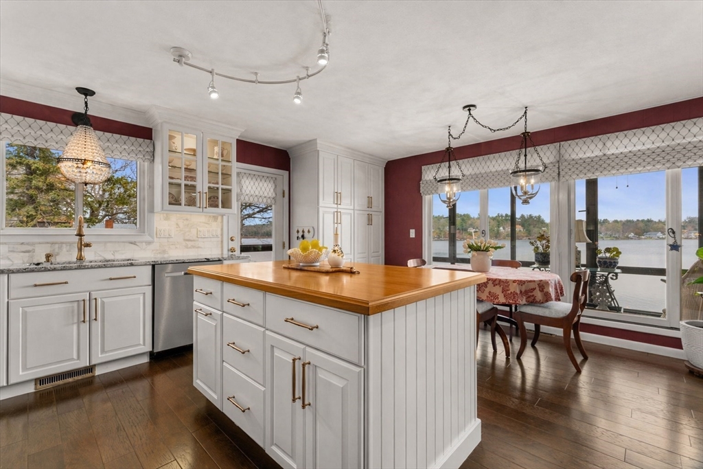 Unique opportunity to own a lakefront retreat on Lake Wickaboag. This residence offers direct water access, multiple docks and private boat ramp for effortless lakeside living. The main level welcomes you w/ lake views and rich wood flooring. An open-concept layout showcases an updated kitchen w/ s/s appliances, granite countertops, and a center island, flowing into the dining/living areas. A climate-controlled sunroom w/ expansive windows captures panoramic water views. Two spacious beds and a remodeled bath complete this level. The walkout LL offers versatility w/ a second kitchen featuring s/s appliances and a breakfast bar. The open living/dining area is enhanced by tile flooring and a wood stove. This level also includes an add’l bed, a renovated bath and laundry. Set on a thoughtfully designed lot featuring a patio w/ awning and a detached garage w/ dual-sided access for convenient use of the boat ramp. This property is an exceptional setting for relaxing and entertaining.