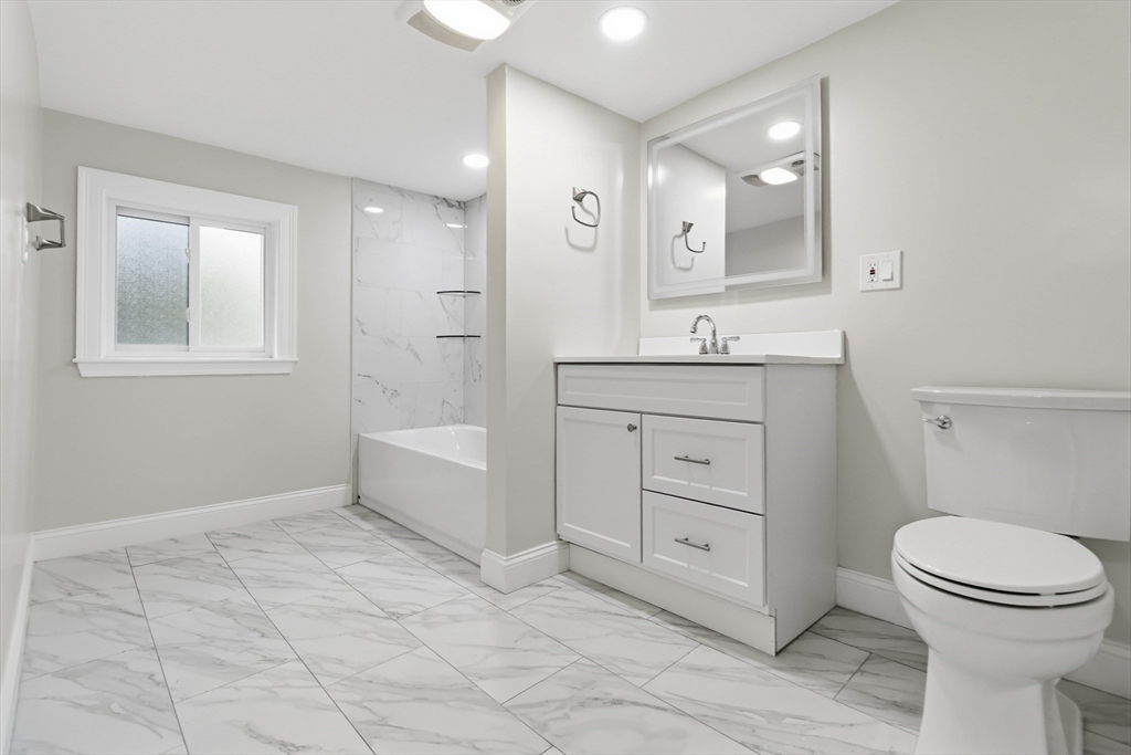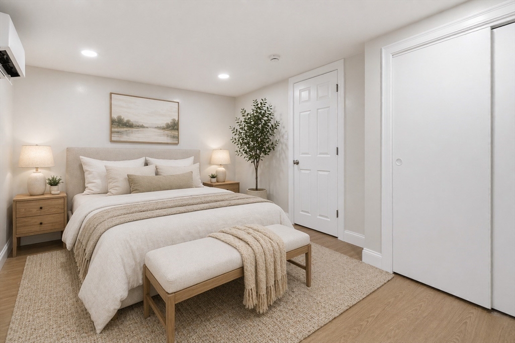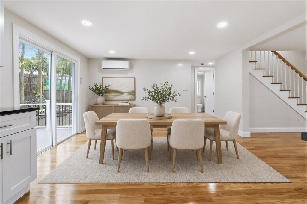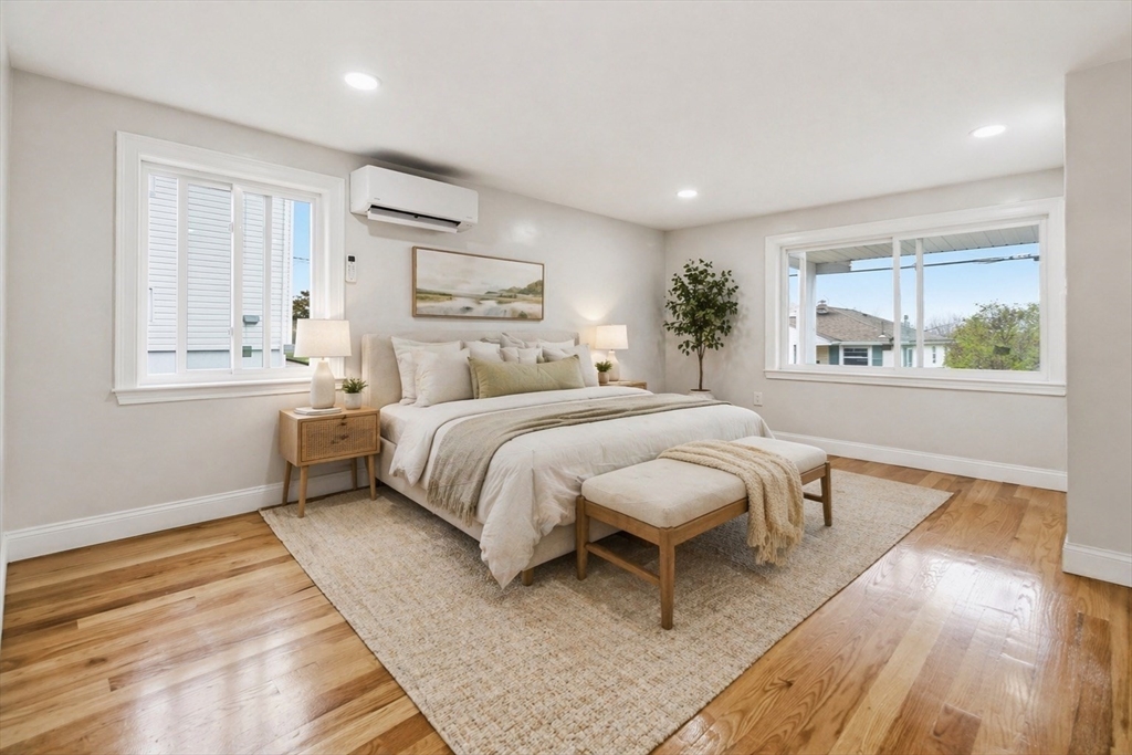 Beautifully renovated home on a double lot in a desirable Waltham neighborhood. This sun-filled property features a brand-new kitchen, hardwood flooring, new windows, roof, siding, and a newly built deck—perfect for indoor-outdoor living. The first floor offers two bedrooms, providing flexible living and convenient single-level living options. Upstairs offers additional bedrooms for family, guests, or home office use. Major updates include a high-efficiency Fujitsu mini split system with 6-zone heating and cooling. Additional improvements include a new driveway to the garage, updated fencing, and a professionally built retaining wall.The basement has been cleaned and offers future finishing potential, with one room already equipped with electric baseboard heat. Public record square footage includes previously finished basement space; basement is currently unfinished post-renovation.Conveniently located near Pizzi Farm, Hardy Pond, and Lazazzero Playground. Some photos virtually staged.