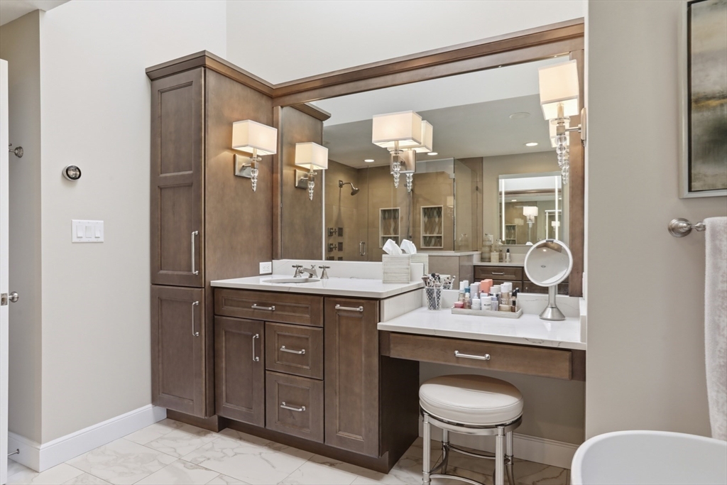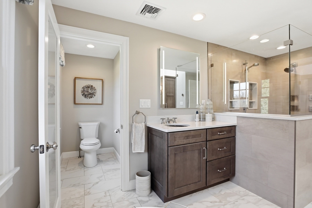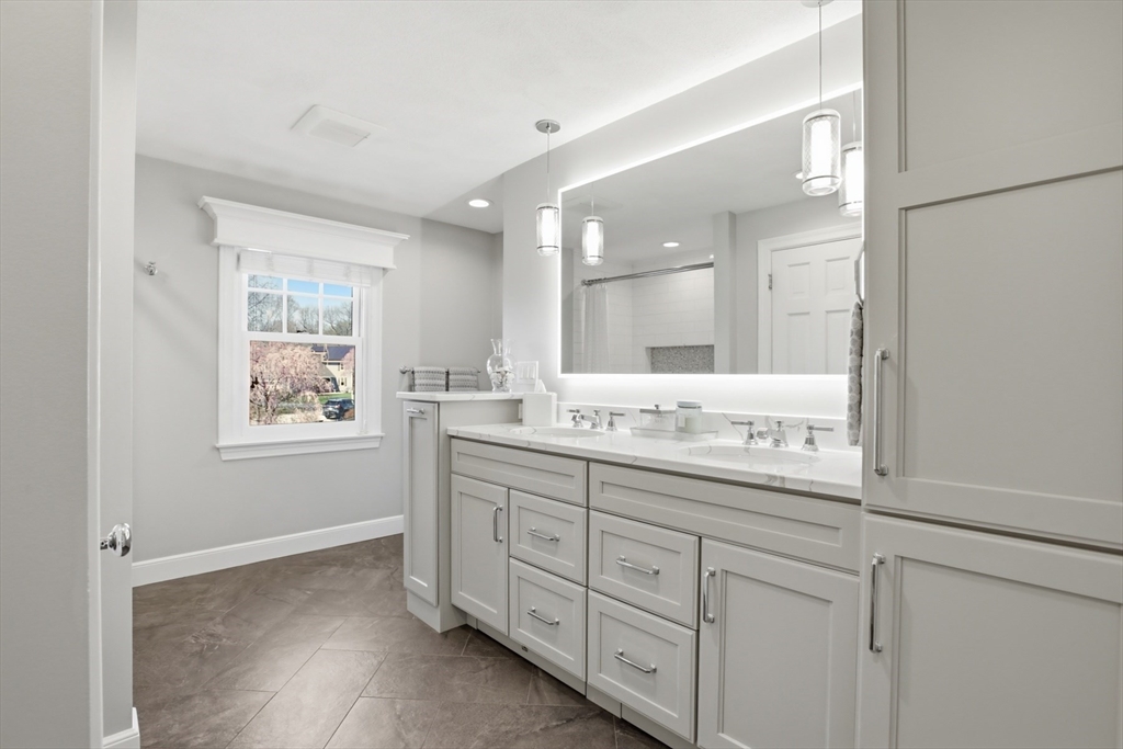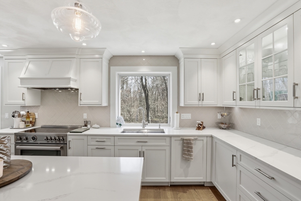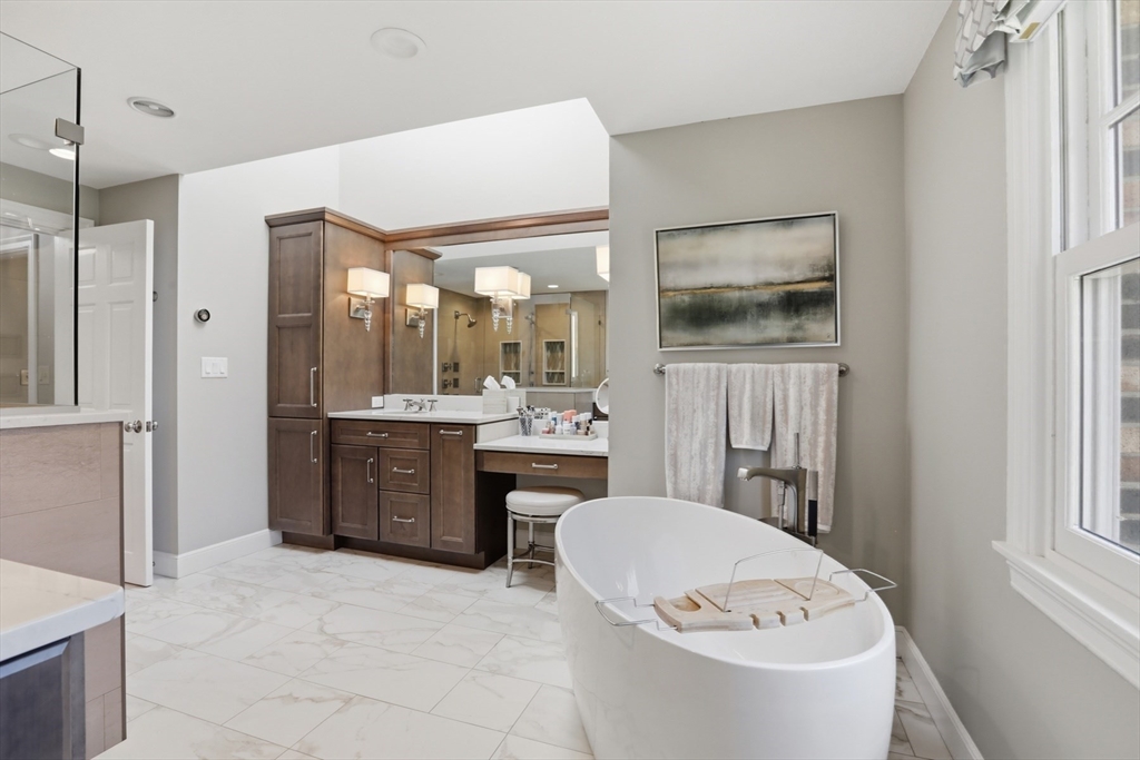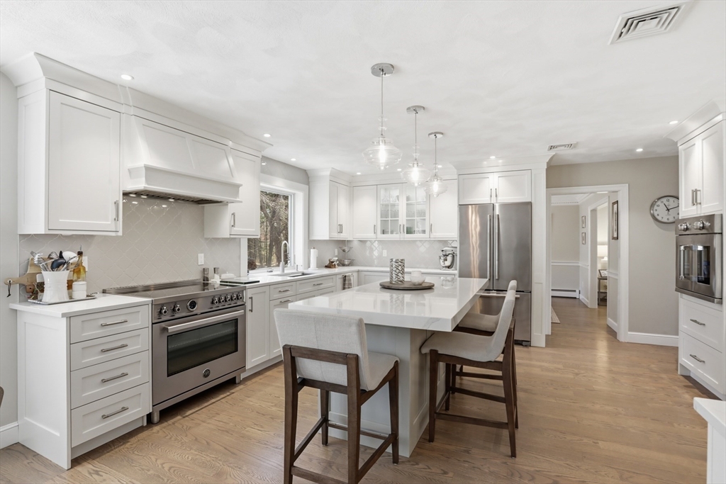 This one checks all of the boxes! A classic, brick front colonial in a prime location - cul de sac neighborhood with easy access to shopping, schools and highways. No detail was overlooked during the fabulous kitchen and bath renovations. The quality of care and updating are unsurpassed. The office has built in book shelves, a unique two sided desk and glass french doors for privacy. The stunning new kitchen is open to the family room with soaring ceilings and fireplace. The sunny dining and living rooms complete the first floor. You will fall in love with the primary suite and it's stunning (and functional!) new bath. The main bath was SO thoughtfully designed (wait until you see the details). There are 3 more well sized bedrooms, all with gleaming hardwood floors.
