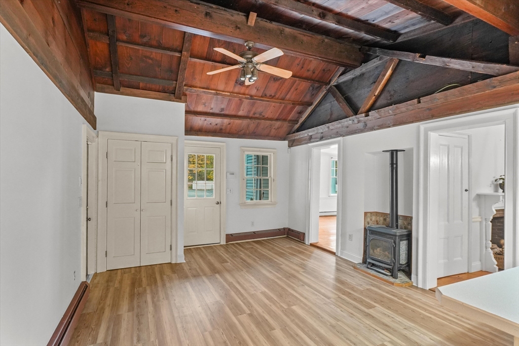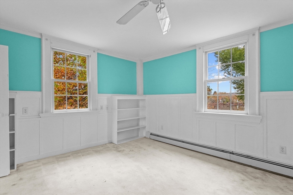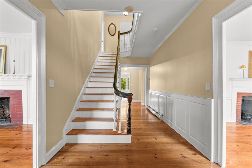 Boating season is here! Experience vibrant springtime waterfront living along the Merrimack River!This distinguished 4-bedroom, 2.5-bath Colonial sits on 1.6 acres with 231 feet of river frontage and potential for a private dock. Steeped in classic New England charm, the home features eight hearths, wide pine floors, exposed beams, wainscoting, high ceilings, and a grand staircase. The kitchen and oversized pantry open to a deck with fresh seasonal views of the private backyard and river. A family room with butler’s pantry connects seamlessly to the dining room, while the living room offers a classic focal point and the sunlit office provides tranquil river vistas. A spacious bath with soaking tub, shower, and laundry complete the first floor. Upstairs, 4 generous bedrooms—each with a charming hearth—are joined by a summer room with blooming river views & 1.5 baths. Enjoy peaceful moments on the screened porch, deck, or in the private yard, where eagles are often spotted soaring!