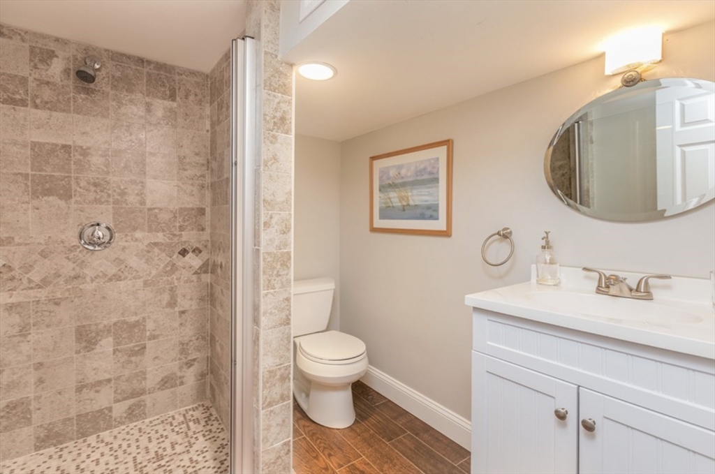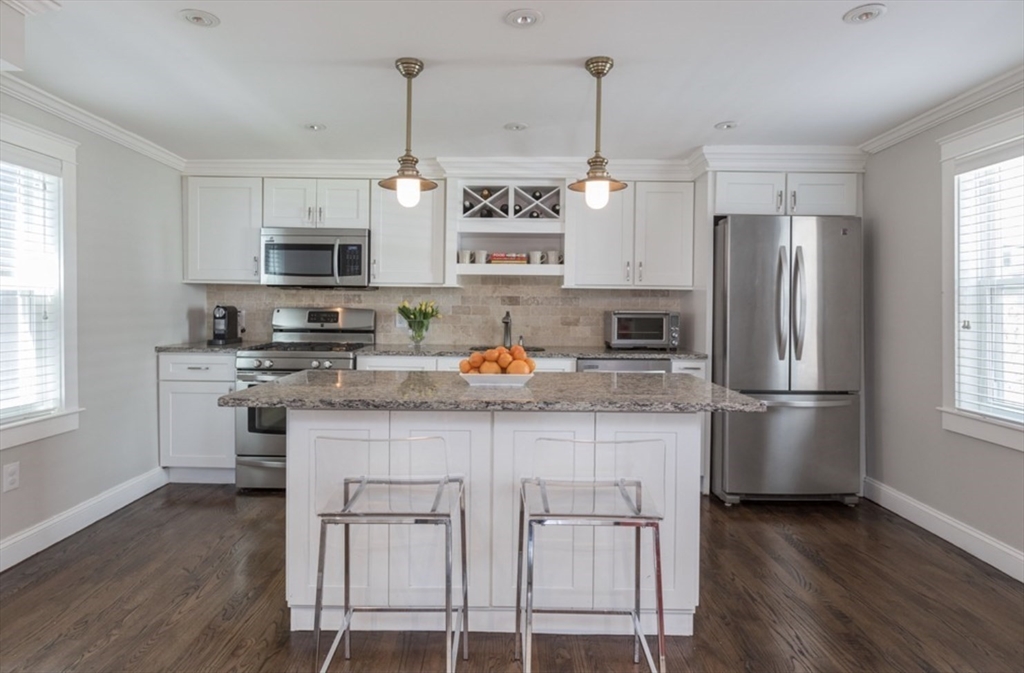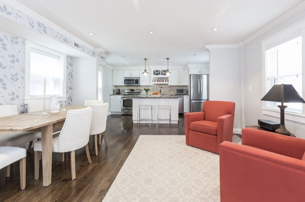Single family available 9/1! Completely renovated in 2013, this single family home as an open concept living and a bonus family room or 3rd bedroom. The first level open concept has an updated kitchen with stainless appliances, dining area and living area with a more formal living area nearby. The upper level has a full primary with walk in closet and second bedroom that shares a full bathroom. The lower level has a bonus room or third bedroom, with ensuite full bath, a full laundry room and extra storage. Relax on your private patio, perfect for entertaining! Located on a double wide quiet street, and minutes to downtown, the beach or the center of South Boston.