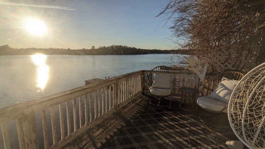Rare opportunity to purchase a bungalow set into the hillside at water's edge of Lake Chebacco, 250 acres of fresh water and wildlife, a treasure of the North Shore. Stone steps from large carport bring you to lakeside to the main level open floor plan, glassed in mudroom leads to lakeside deck as well as kitchen, comfortable dining area with picture windows and large fireplaced living room. The hardwood floors lead through French doors to an amazing sunroom with 3 sides of glass and exceptional views and sunsets, and then back to 2 good sized bedrooms flanking a full bath. A third bedroom has a half bath. All bedrooms have closets. Lower-level bonus rooms can be accessed by interior stairs leading to a spacious hideaway with wood stove insert, closet storage and bath with shower as well as another sunroom/studio right at water's edge. Sunroom room door leads to lawn area and ramp to private float and dock.