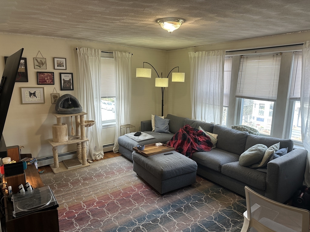 Large 1 Bed in the HEART OF DAVIS SQUARE located 2 mins walk to the Red Line "T" stop - Davis Sq. This is a professionally managed 24/7 brick building. The apartment is neat and well-maintained. It has an eat/in kitchen with refrigerator, dishwasher, stove and microwave. Hardwood Floors. There is a large living room and the bedroom is very spacious. Gas heat and hot water is included in the rent. Shared laundry and bicycle storage in basement. On-site parking may be available for $150 additional/month. Close to great shopping & great restaurants
