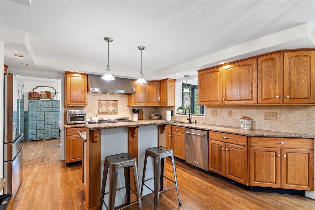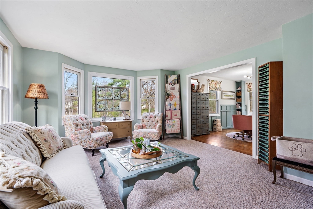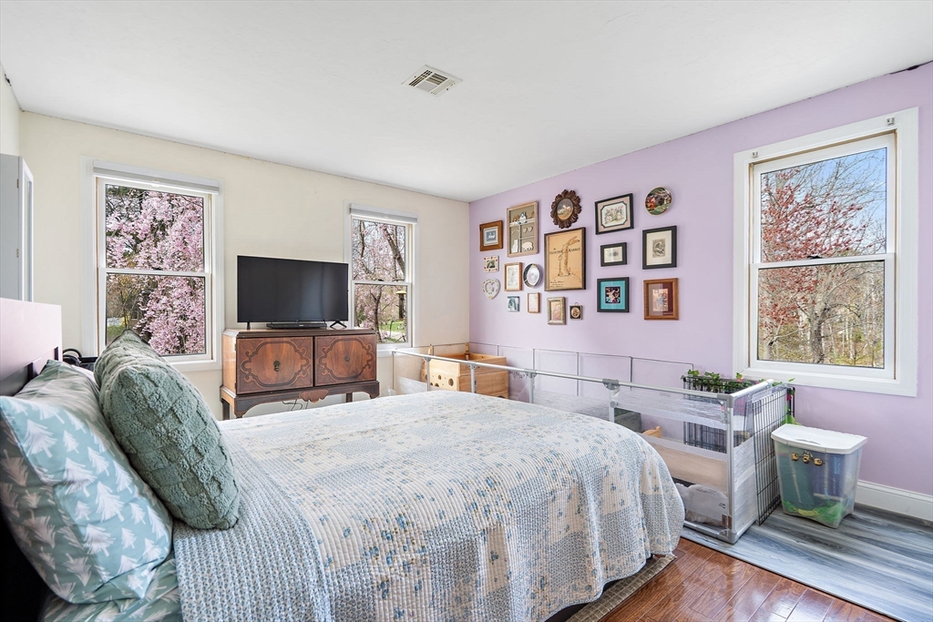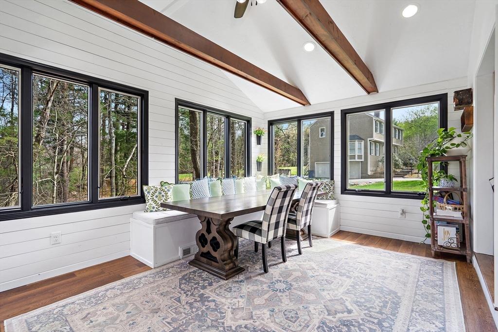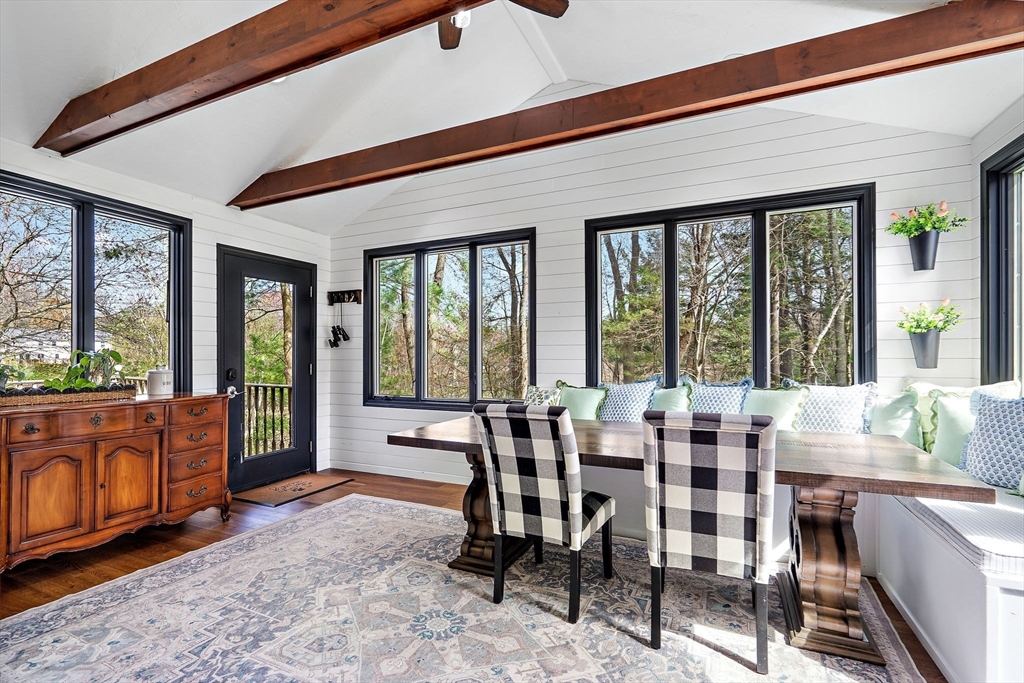 A lovely home in a great cul-de-sac neighborhood plus a location that makes running errands & commuting a breeze! Set on over an acre, 7 Holbrook offers expansive front & sideyards, think big summer BBQs & playdates w/ friends, and a backyard perfect for the avid birder or naturalist. This well maintained & tastefully updated home offers 4 generous BRs & 2 full BA upstairs. The E-I-K, four season Sunroom & fireplaced FR are truly the heart of this home - the perfect space & flow for hosting friends or setting up long holiday tables for all your loved ones to gather around. High end stainless appliances including a chef quality, 6 burner Thermador stove (grill & double oven) make meal prep a joy. A Foyer, LR, DR/craft room/office w/ a custom built, perfect for relaxing, window seat & large half BA/Laundry complete the Main Level. Beautiful wood floors in most rooms. Dry Basement w/ tons of storage connects to an oversized 2 car Garage. 2018 Roof & Solar Panels help offset energy costs.