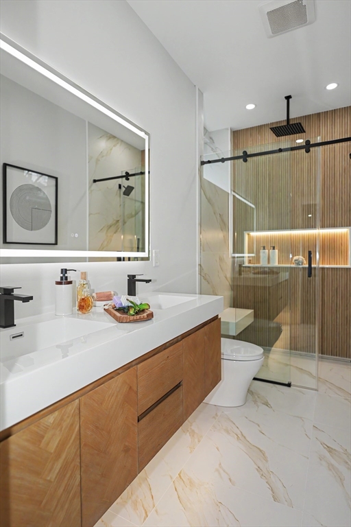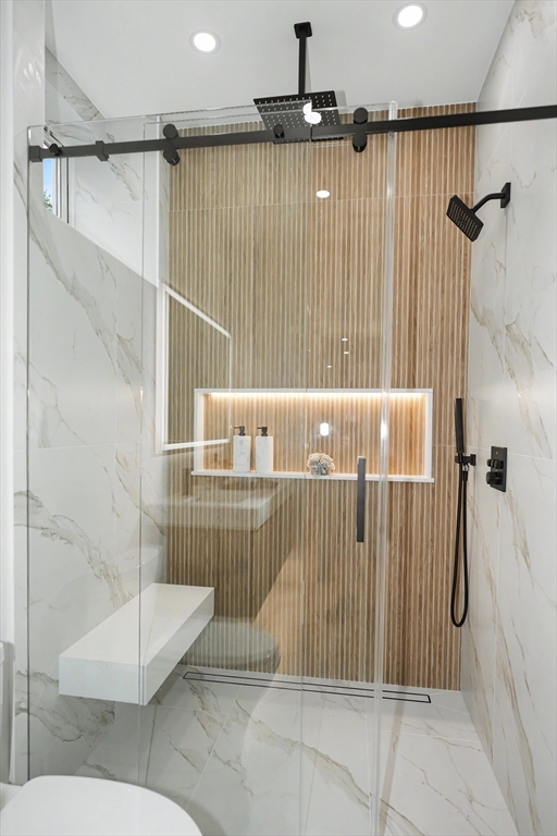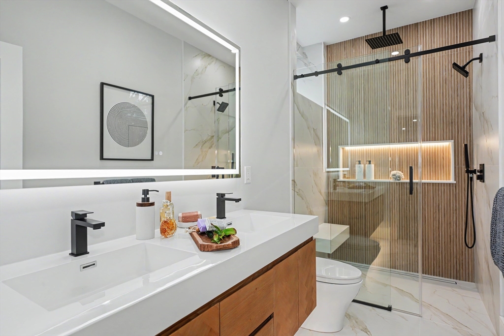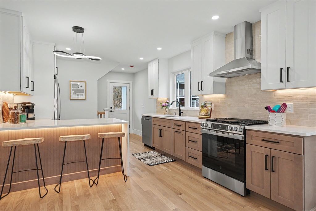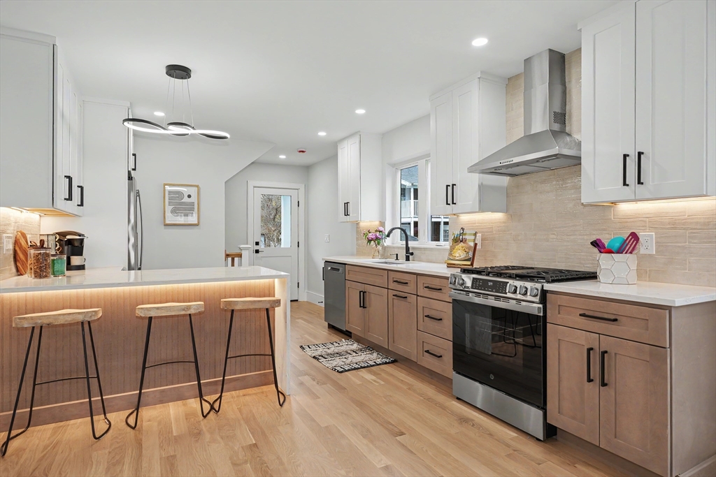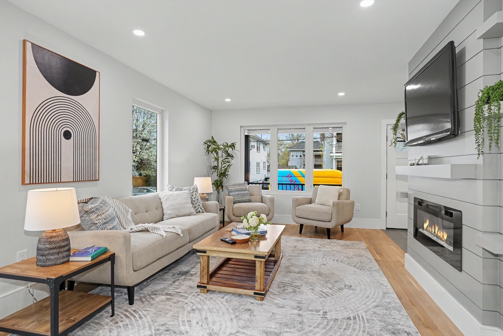 Reimagined with a full renovation, we introduce this two-level 3-bedroom condominium offering modern design and high-end finishes throughout. Features include white oak flooring, recessed and LED lighting, fireplace, custom closet systems, and hydro-air HVAC with ERV. The quartz-appointed kitchen opens seamlessly to stylish living and dining areas, ideal for both everyday living and entertaining. Sleek, modern baths include a luxurious primary suite with an oversized double shower. The finished lower level offers a generous family room with wet bar, perfect for entertaining or extended living. Additional highlights include a mudroom, all-new electrical and plumbing systems, multiple porches, new cedar fencing, and an asphalt shingle roof. Parking for three cars, including two outdoor EV chargers. A rare offering that combines thoughtful systems, quality craftsmanship, and contemporary comfort.