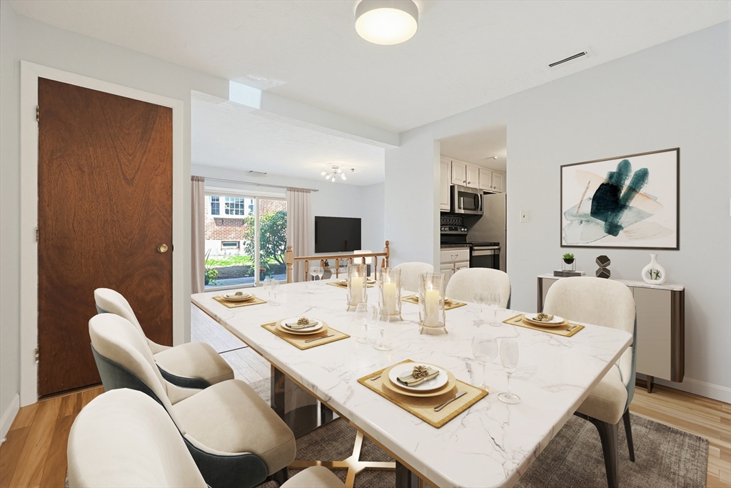 Located in the desirable Knollsbrook community, this 3-bedroom, 3 bathroom townhome has so much to offer! First floor features kitchen, dining room and living room with slider to patio. full bath and 3rd bedroom also perfect as an office. Two spacious ensuite bedrooms with parquet floors and laundry on the second floor. Walk up attic for lots of extra storage space. Updates: Main level flooring 2021, A/C 2017, windows 2011 and more. Building roof was replaced by the association in 2017. Two assigned parking spaces one under a carport with dedicated 3 x 10 storage space. Knollsbrook amenities include a fabulous clubhouse with 1 indoor/3 outdoor pools, playground, tennis court, spacious common areas for larger gatherings including pool table, reading room and gym. Convenient access to schools, shops, restaurants and just minutes to multiple T Stations. Quick closing possible, move in ready!