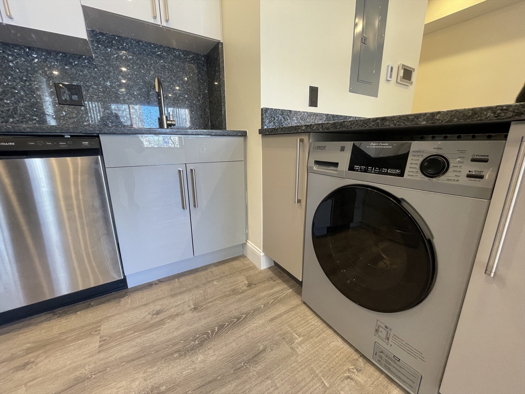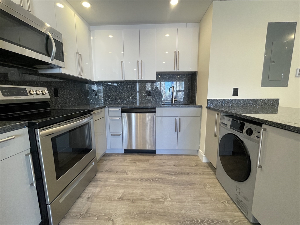 FURNSIHED Renovated spacious studio with tons of natural light! Moments from Boston University. Granite and stainless full kitchen, large bathroom with glass shower, and brand new combo washer/dryer in unit! Hardwood floors, central air, recessed lighting. Elevator secure building. T picks up right across the street. Tons of restaurants, bars and shops right at your footsteps. Cats allowed.