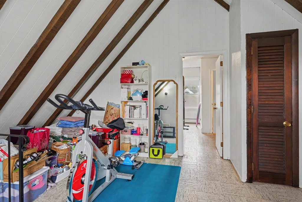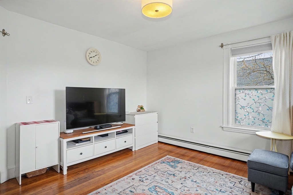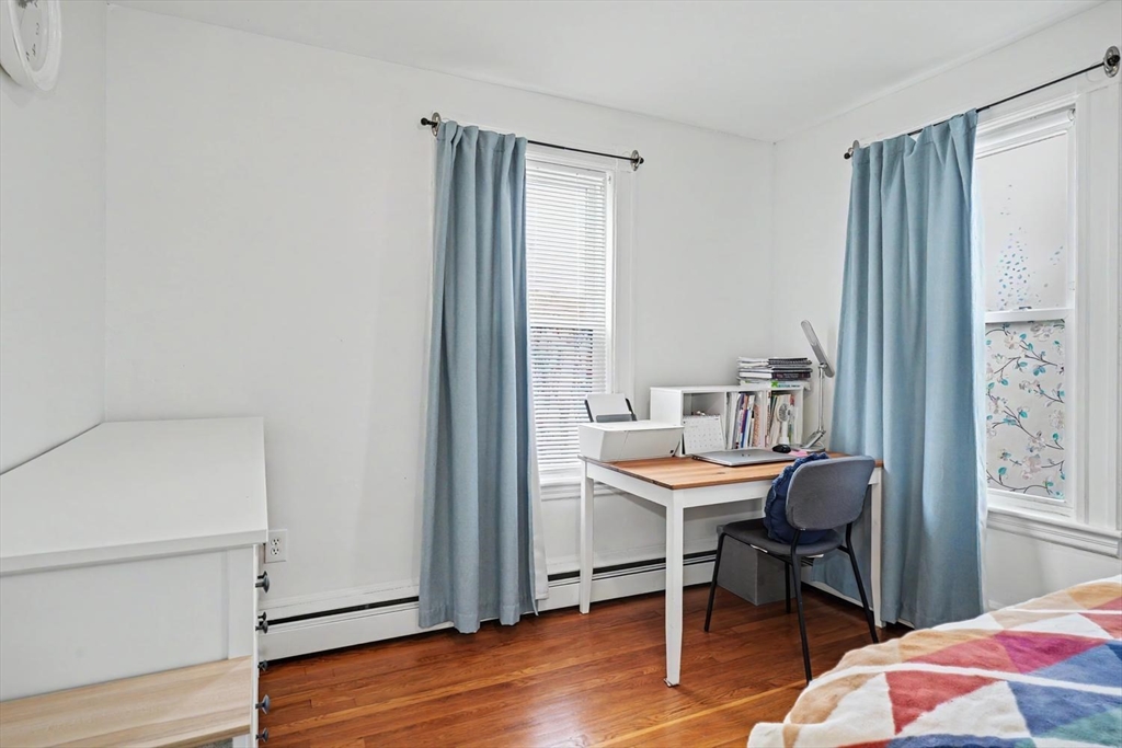 Spanning the second and third floors, this unit offers a spacious and versatile layout, ideal for those seeking comfort and flexibility. The second floor features bright and airy living spaces, including a living room, one bedroom, one full bathroom, and a eat-in kitchen. The third floor includes two additional bedrooms and a full bathroom, along with an extra space that can be easily adapted as a family room, home office, or additional living area. The unit also includes one garage space and two additional parking spaces, providing added convenience. New hot water tank and blown-in insulation (2020), new roof (2021), exterior paint (2026). All double pane windows. Just minutes from Belmont Center, the commuter rail, and Trapelo Road, you’ll have easy access to a wide variety of shops, restaurants, and everyday conveniences. Positioned directly across from Town Field and playground, the property offers a pleasant view and a great outdoor space for relaxation and leisure.