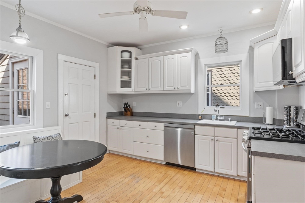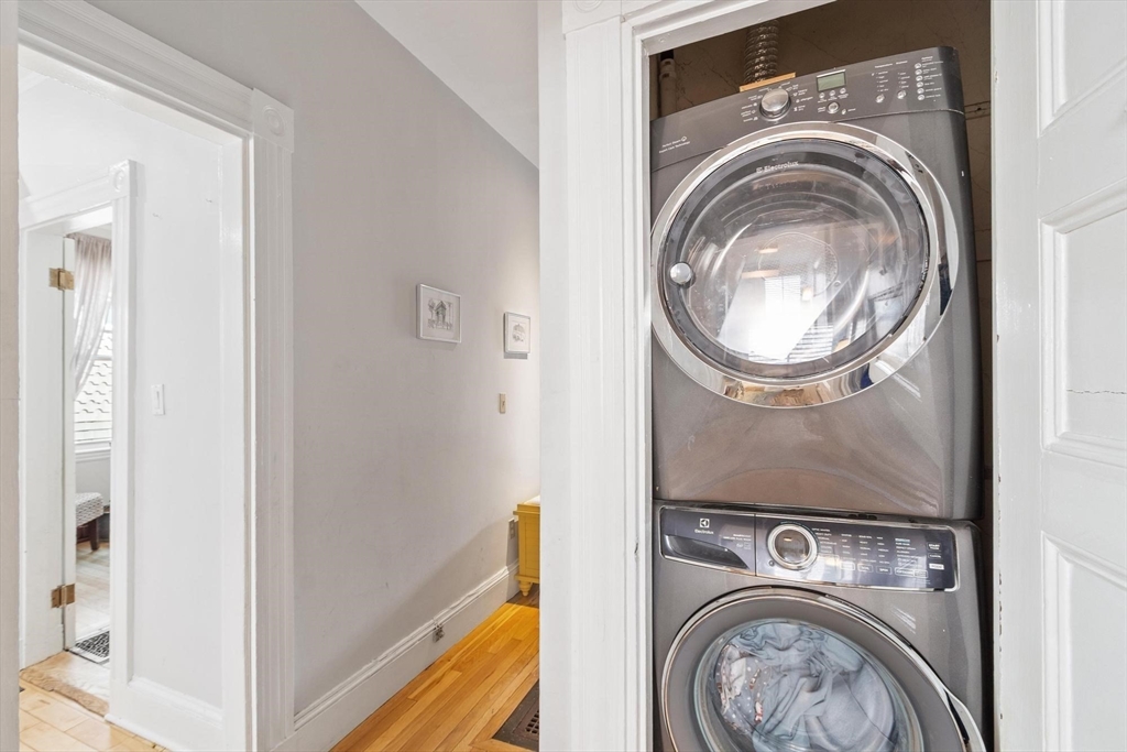 Dreaming of a pondside Victorian in beautiful Jamaica Plain? Here's your chance to own an elegant duplex combining lovely period details like wood floors, high ceilings, oversize windows, and original woodwork with modern amenities such as in-unit laundry, a contemporary white kitchen, and central air. First floor features large corner living room, updated eat-in kitchen, spacious dining room, and separate study (perfect for WFH or potential 3rd bedroom). Both generously-sized bedrooms are on the top floor, with the primary having a walk-in closet. Enjoy the convenience of a full bath on each level and stackable laundry in the unit. The large and very private deck is your perfect urban retreat! Located in the heart of JP moments to the Pond, Arboretum, Orange Line T, bus, Emerald Necklace, Longwood, and all of the best restaurants & shops on Centre St. Pets are welcome.