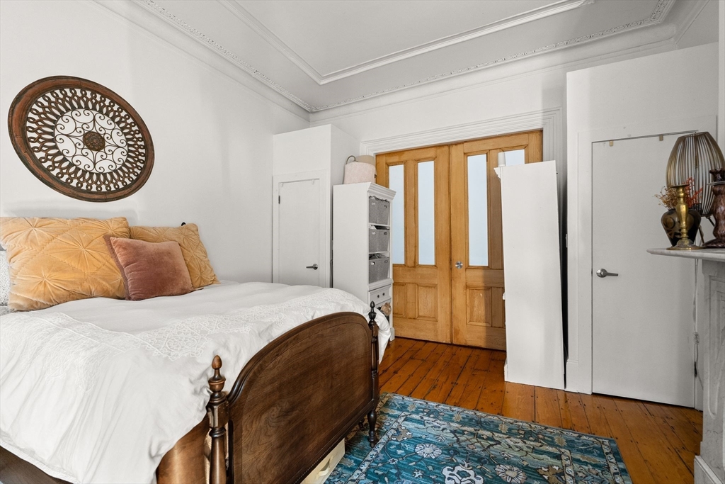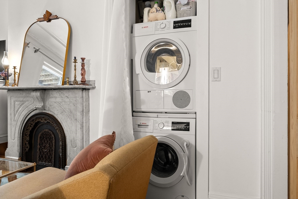 Elevated above street level with the privacy that comes from height and the light that follows, this thoughtfully designed 1st floor residence at 46 E. Springfield St. delivers far more presence than its 1BR/1BT suggests. Soaring ceilings and oversized windows maximize every inch, creating a sense of space that feels both generous and intentional. Enter to an open layout where a well-equipped kitchen flows seamlessly into the main living area, anchored by a decorative fireplace. Elegant pocket doors reveal the spacious bedroom beyond, featuring two closets and a second stunning fireplace. Step outside to a private deck offering an ideal extension for morning coffee or evening unwinding. In-unit washer and dryer enhance enhance convenience, while the location delivers immediate access to the restaurants and galleries. 46 East Springfield delivers timeless South End charm and modern convenience without compromise.
