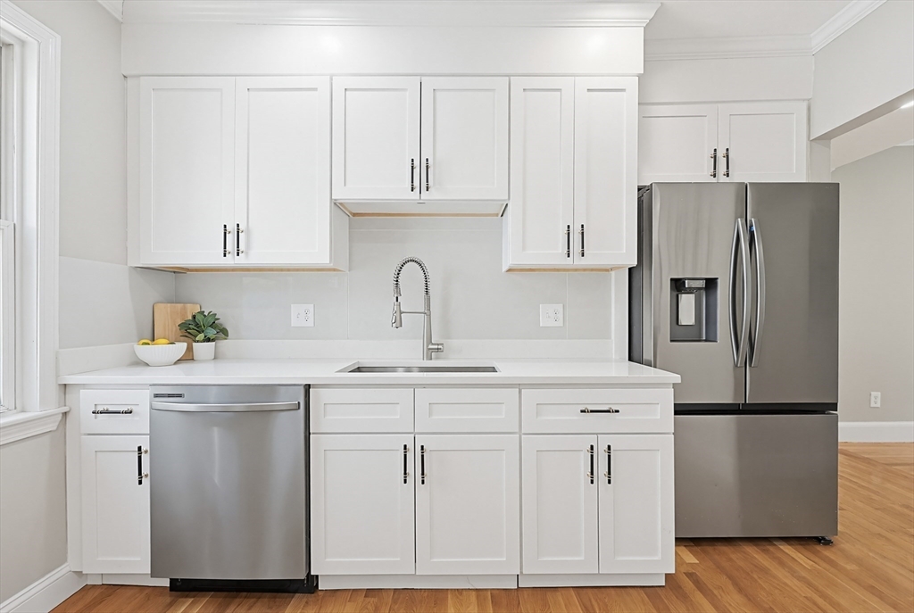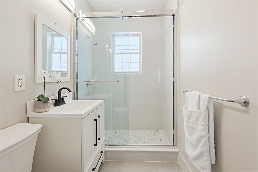 Newly Renovated 4 bedroom 2nd fl Spacious condo in convinent Oak Squre location. New kitchen featuring stainless steel appliances, elegant stone counters, and sleek flooring, open to the dining area—perfect for modern living and entertaining. Tastefully renovated bathroom with walk-in shower offers a relaxing retreat. Hardwood floors throughout, recessed lighting, and fresh paint enhance this bright and beautiful home. Flexible layout allows to use the 2nd large bedroom as a family room or the 4th bedroom as a home office. New heating and cooling system; hot water tank only a few years old. In-unit washer and dryer. Enjoy morning coffee on the covered deck. Includes 2 deeded off-street parking spaces. Ideally located between Oak Square and Brighton Center with easy access to shops, cafes, restaurants, Hardiman Playground, the YMCA, and the Charles River for outdoor recreation. Bus lines on the street; minutes to major the highway.