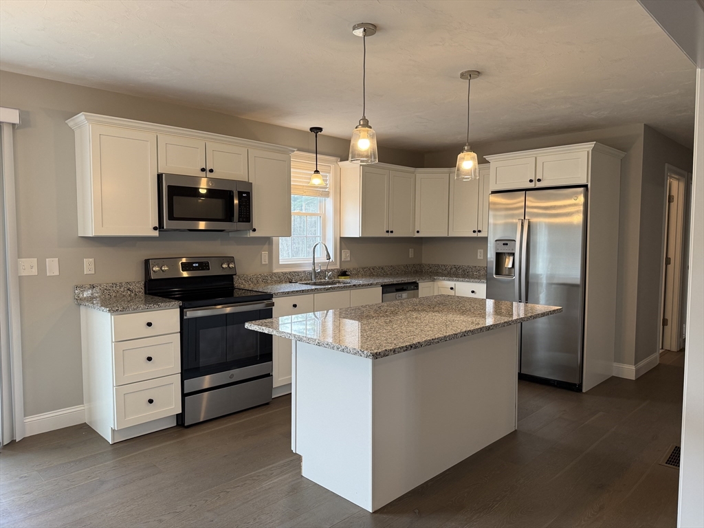 Presenting an exceptional leasing opportunity at 5 Pauline Way, Lakeville, MA. Constructed in 2024, this 1900 square foot residential property is in great condition, offering an attractive facade and modern amenities tailored for sophisticated living. The heart of this residence is its open-plan kitchen, seamlessly integrated with the living room. This culinary space features elegant stone counters and a central island, providing both functionality and a focal point for entertaining. The bathrooms are thoughtfully designed, with one offering a double vanity, enhancing daily routines with both style and convenience. This colonial-style residence, situated on the 2 floors, includes three bedrooms and two full bathrooms, complemented by a convenient half bathroom. Also office The property further benefits from a built-in two-car garage, a full basement for additional storage or future development, a dedicated laundry room, and a welcoming porch, all set on a generous 40,000 square foot lo