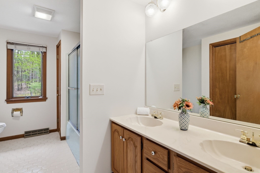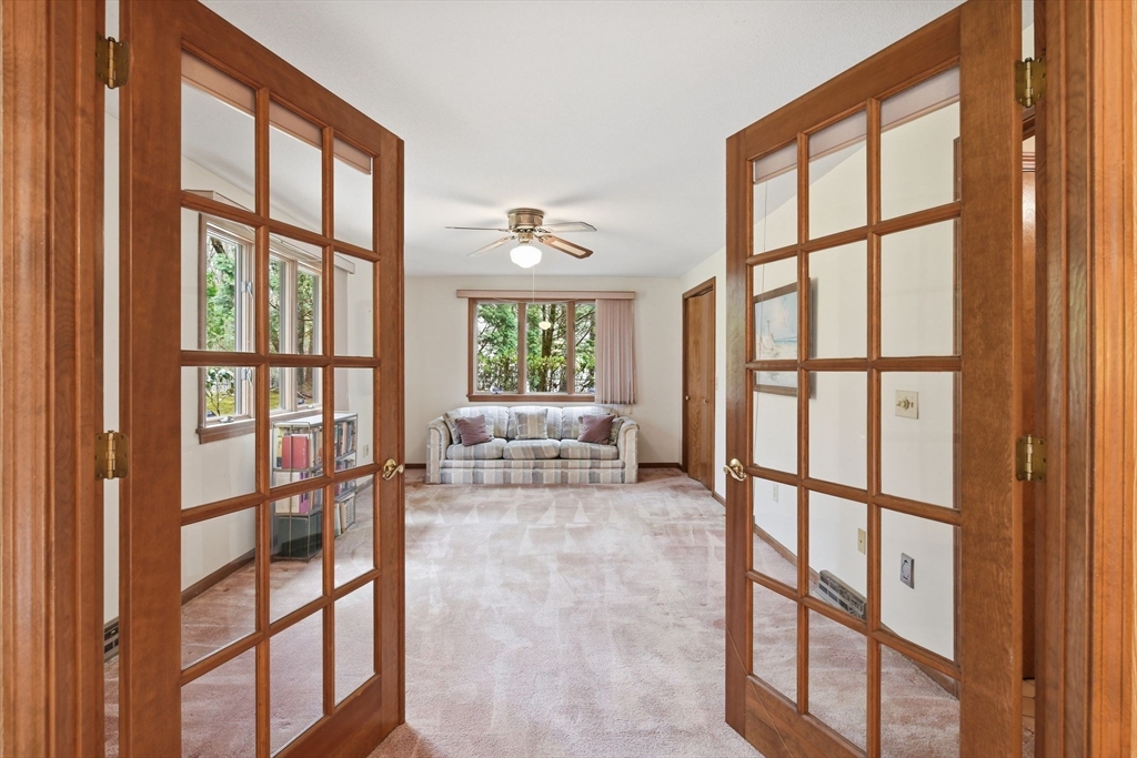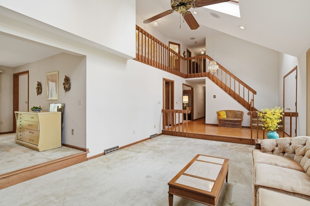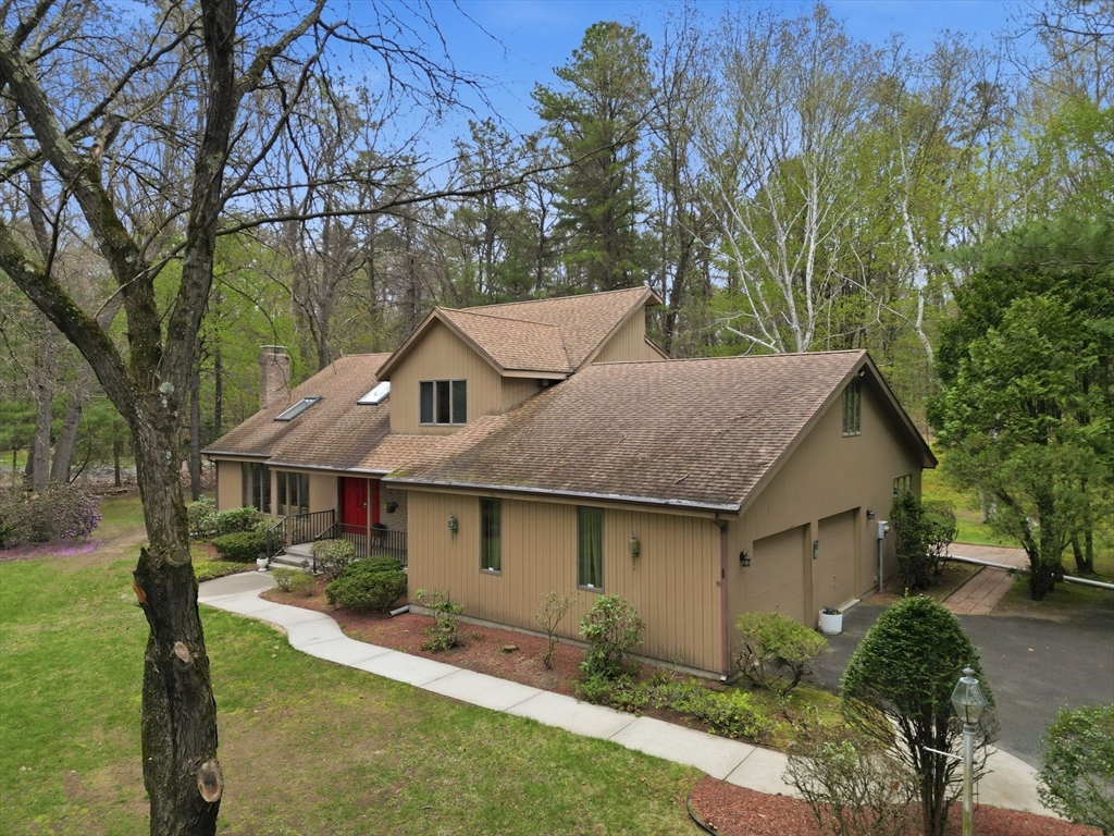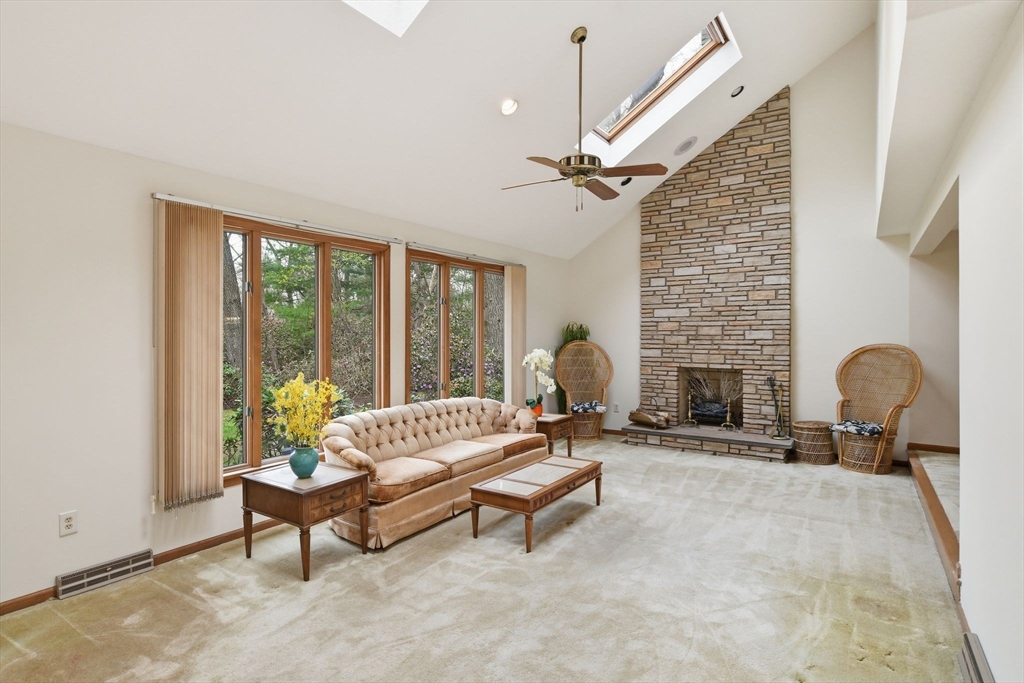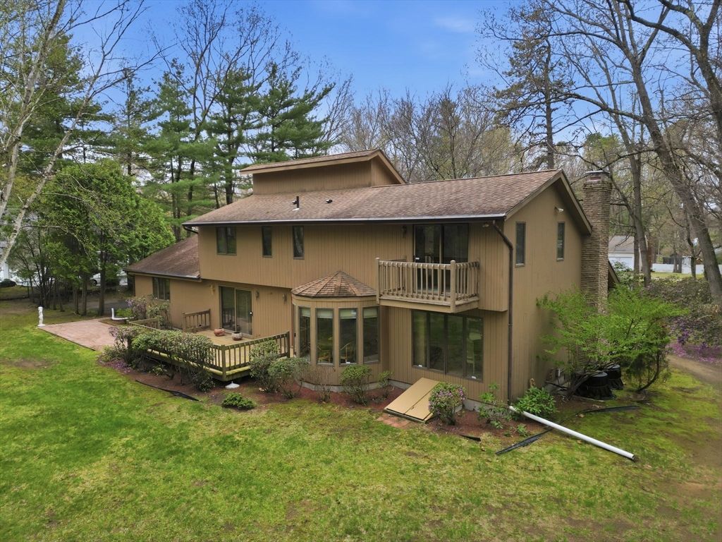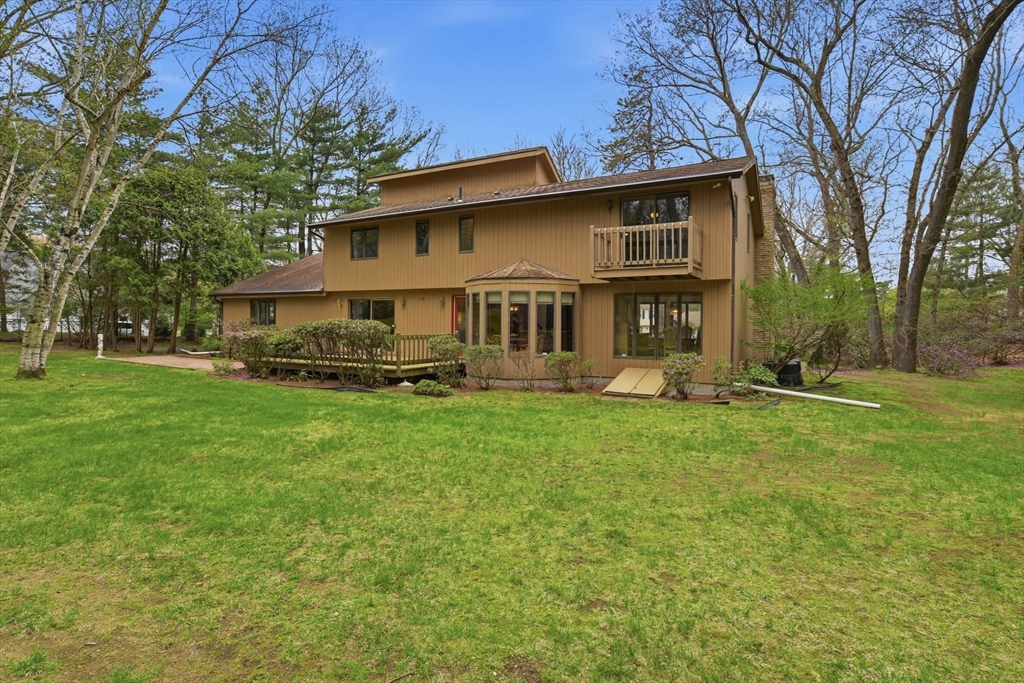 Fabulous potential here! Circa 1986 Custom Contemporary home offers smart design in 8 spacious rooms, 3 bedrooms & 3 full baths across 2,753 SF of living space. Featuring a vaulted ceiling and a bright, open layout, this home boasts a formal living room with fireplace, formal dining room & a dine-in kitchen with deck access, seamlessly flowing into the family room. The main level also allows a sunroom or 4th bedroom/office, a full shower bathroom and a separate laundry room w/ utility deep sink. Upstairs, the primary suite has its own balcony overlooking a private .9 acre yard with mature plantings, and room for a pool, if desired. Two additional bedrooms share a full tub/shower bath. Expandable attic space over the garage offers future potential for another bedroom or bonus room. Unfinished basement is rough plumbed & more living area for recreation, home-gym or media room, can be created for future equity growth. Centrally located w/ easy access to all town amenities!
