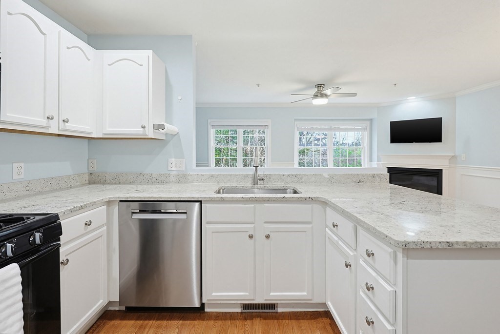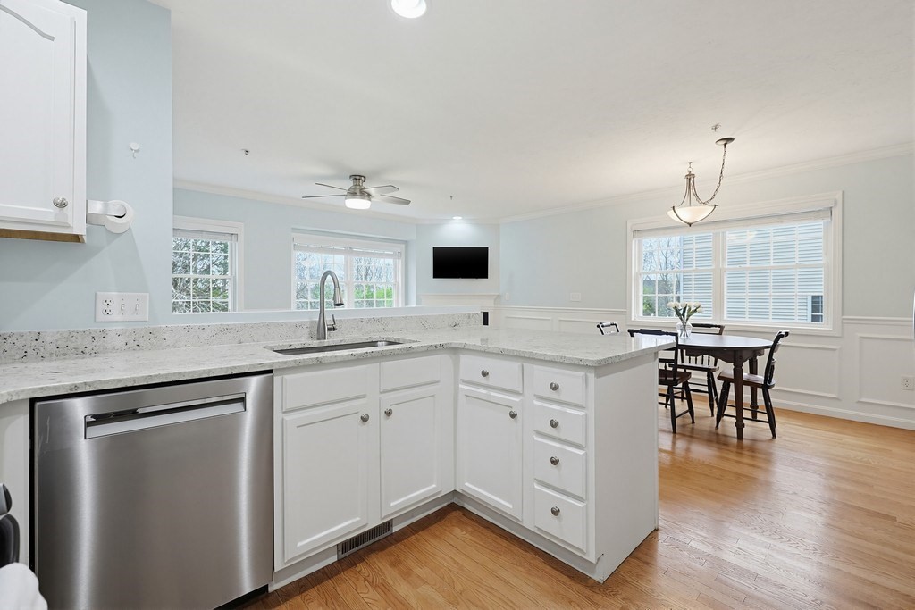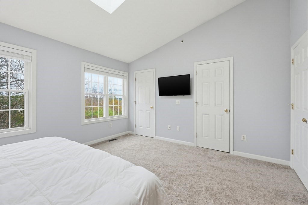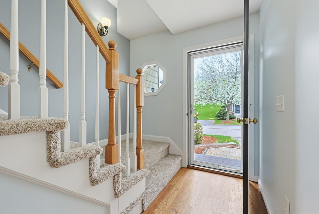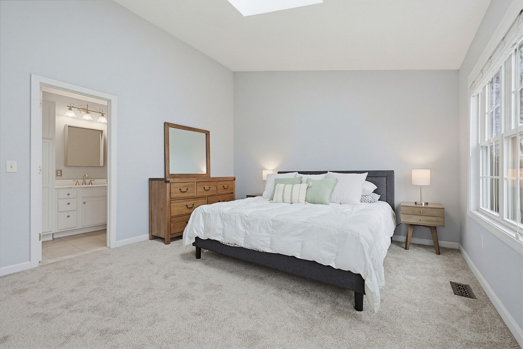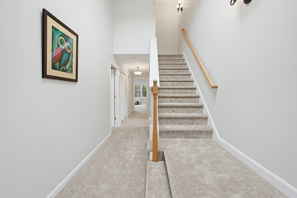 Welcome to this beautifully updated end unit townhome in desirable Hill View Estates - truly a rare & sought after THREE BEDROOM unit with expansive FINISHED WALKOUT BASEMENT FEATURING HALF BATH & sliders to paver patio. This gem is absolutely move-in ready! Beautiful eat-in kitchen features ample white cabinetry, pantry, GAS COOKING, new granite (2025) & new dishwasher (2025). Bright & airy floor plan overlooks large sun drenched living room w/ wainscoting & corner gas fireplace. GLEAMING HARDWOODS throughout this entire main floor. BRAND NEW CARPETING (2026) runs up skylit staircase & throughout entire 2nd floor w/ vaulted primary suite & 2nd bedroom suite - yes, two full baths - then up to 3rd floor bedroom w/ two skylights, which can flex as office or whatever fits your needs. Need more space? Retreat to the smartly finished basement w/ new flooring (2025), half bath & sliders to outdoor patio lounging & enjoyment. New water heater (2025). Gas heat. Close to shopping & highways.