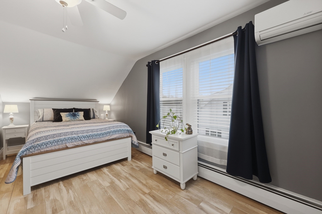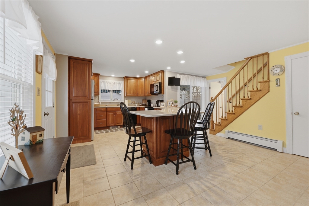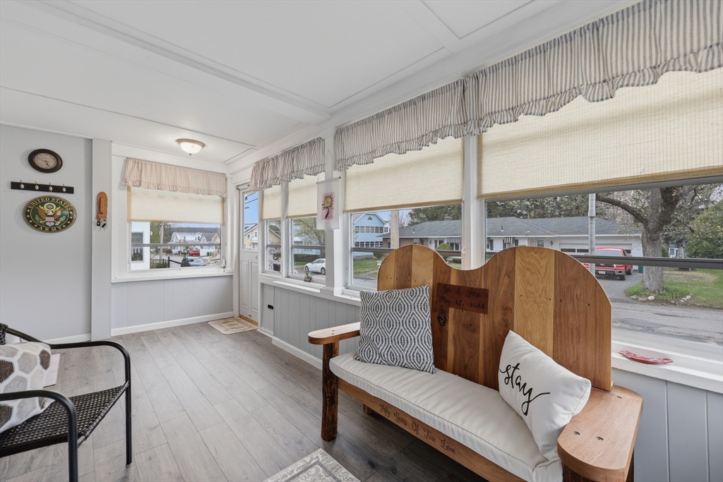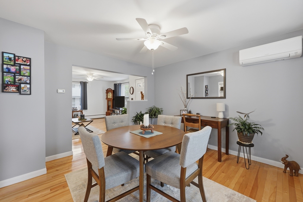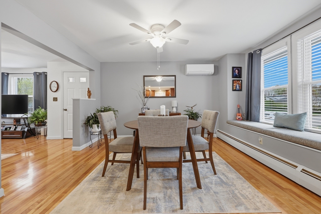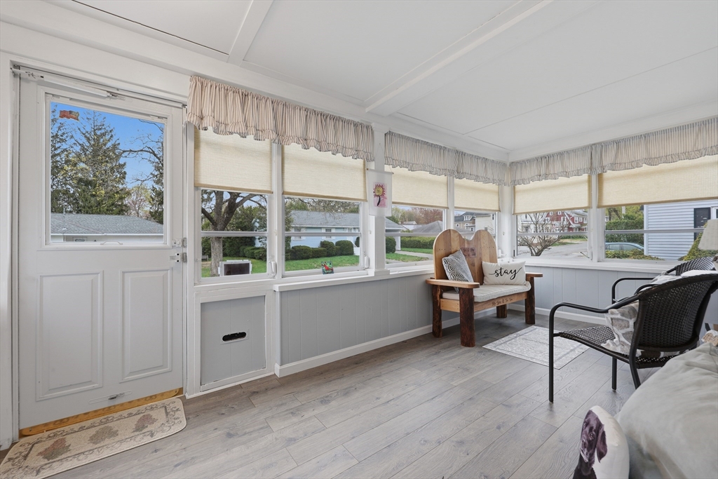 Pride of Ownership!!! Beautfully updated and maintained Bungalow style home! Appreciate the spacious Mud Room before you enter the Custom Cherry Cabinet Kitchen featuring an oversized breakfast bar, Quartz Counters, Tile Floor, and Recessed Lights! The Dining room has a charming window seat with cedar storage below! Gorgeous Maple Hardwood Floors in the Dining and Living Room, plus a mini split to keep your main level cool in the Summer! 3 Season Front Porch with Vinyl plank flooring! Spacious Full Bath with Gray Cabinets, Quartz counters, Tile Floor and a Linen Closet! The 2nd level has vinyl plank flooring thru out! The Main Bedroom offers the 2nd mini Split! The 2nd and 3rd bedroom share a large walk in closet! Half bath with tile floor and potential expansion possibilities.Access the Large Composite deck with Awning from the kitchen slider for ease of outdoor meals! 28x24 Detached garage PLUS Rec Room has great ADU potential! Large Backyard! High Efficiency On Demand Boiler!