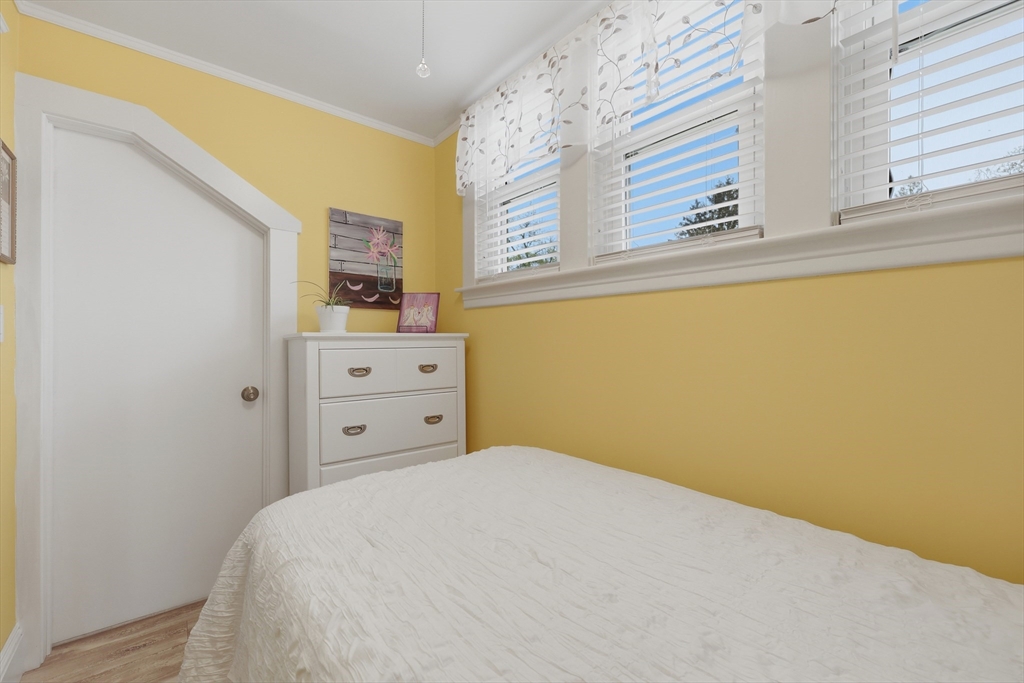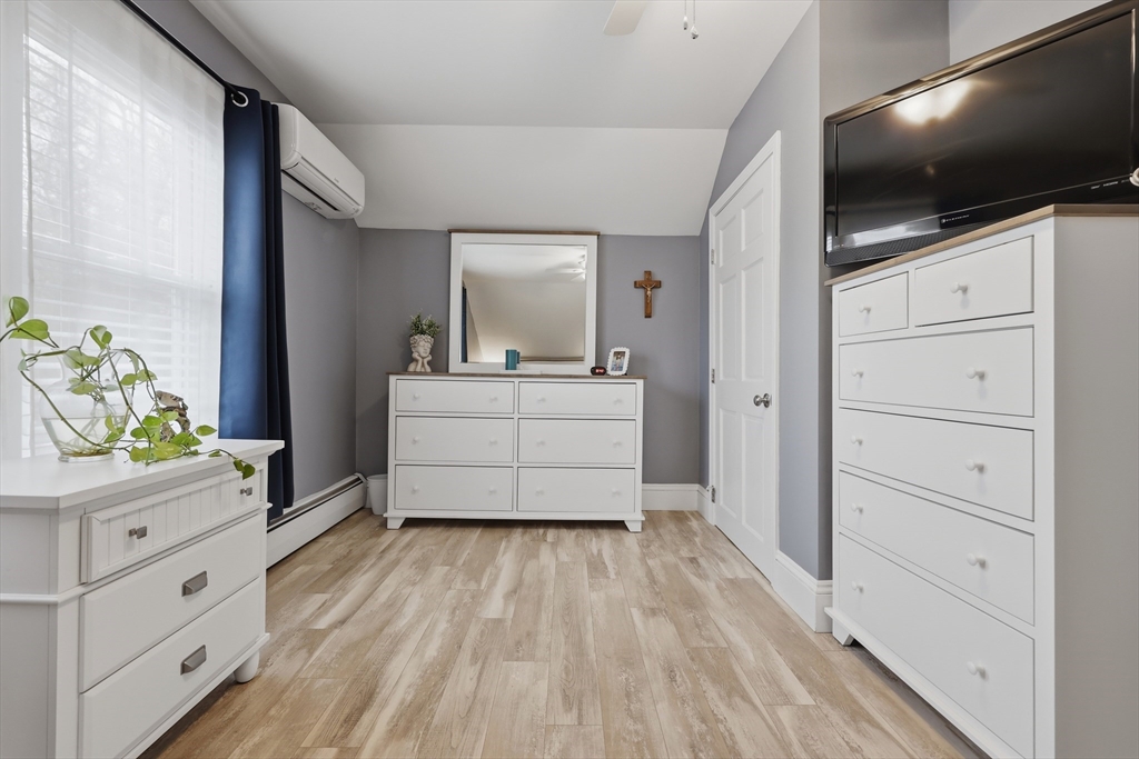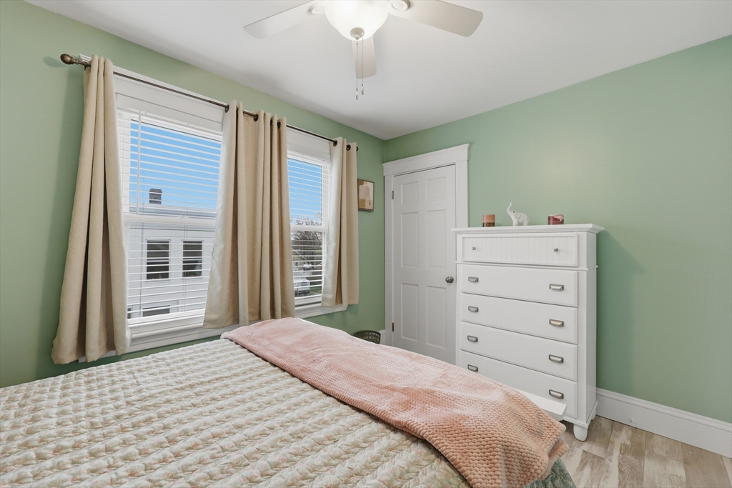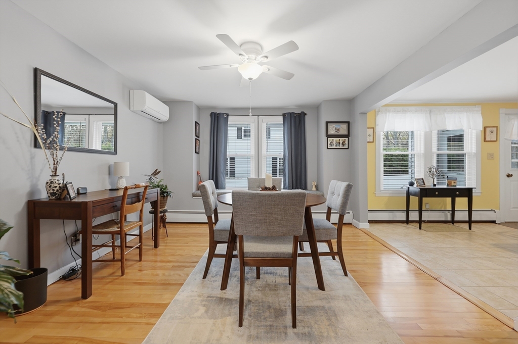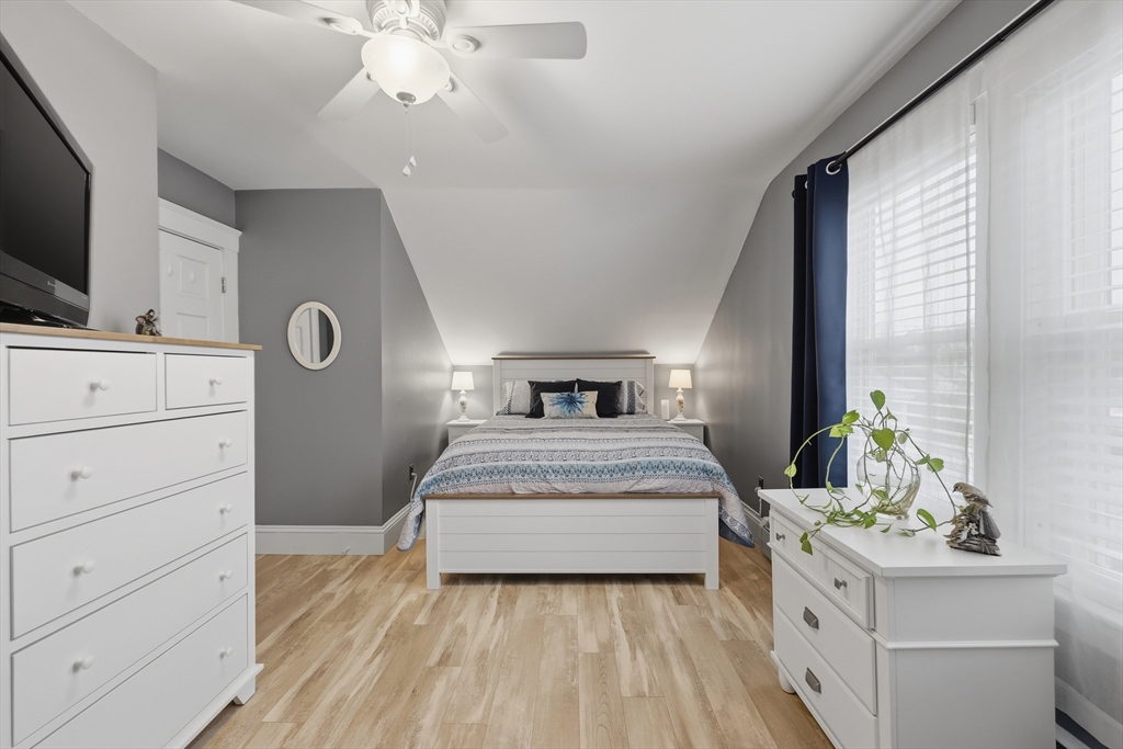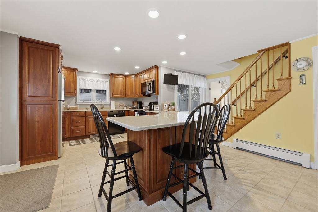 Pride of Ownership!!! Beautfully updated and maintained Bungalow style home! Appreciate the spacious Mud Room before you enter the Custom Cherry Cabinet Kitchen featuring an oversized breakfast bar, Quartz Counters, Tile Floor, and Recessed Lights! The Dining room has a charming window seat with cedar storage below! Gorgeous Maple Hardwood Floors in the Dining and Living Room, plus a mini split to keep your main level cool in the Summer! 3 Season Front Porch with Vinyl plank flooring! Spacious Full Bath with Gray Cabinets, Quartz counters, Tile Floor and a Linen Closet! The 2nd level has vinyl plank flooring thru out! The Main Bedroom offers the 2nd mini Split! The 2nd and 3rd bedroom share a large walk in closet! Half bath with tile floor and potential expansion possibilities.Access the Large Composite deck with Awning from the kitchen slider for ease of outdoor meals! 28x24 Detached garage PLUS Rec Room has great ADU potential! Large Backyard! High Efficiency On Demand Boiler!