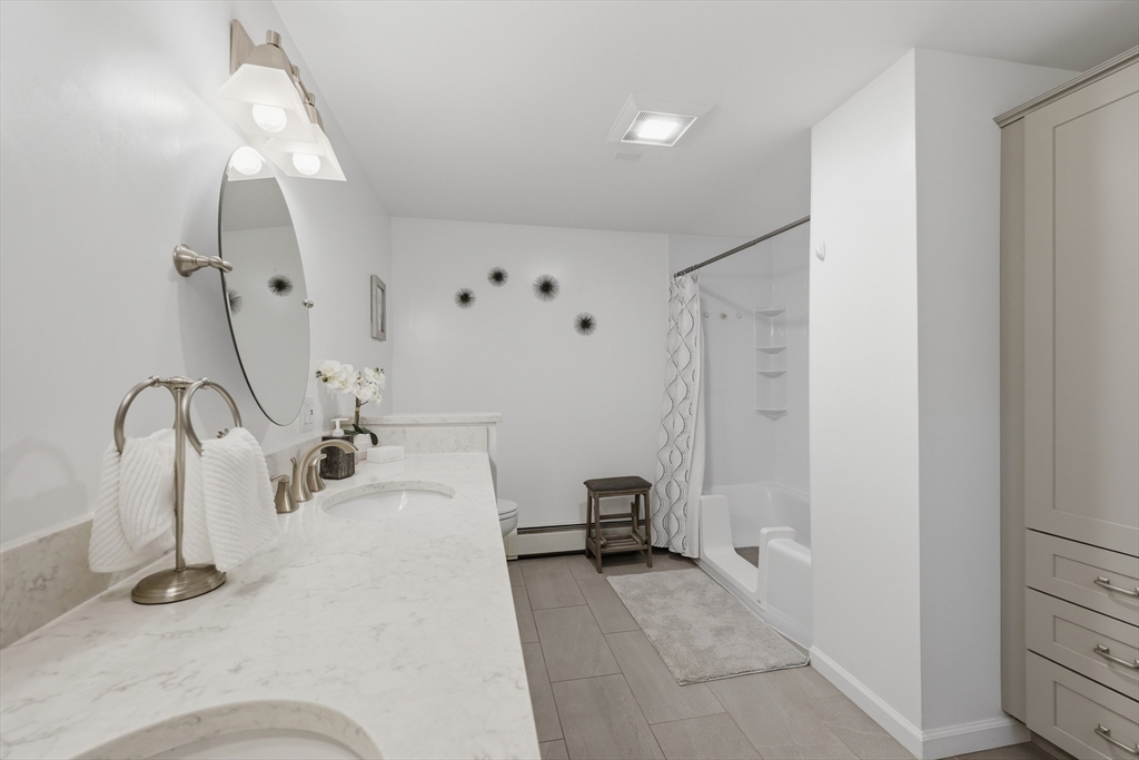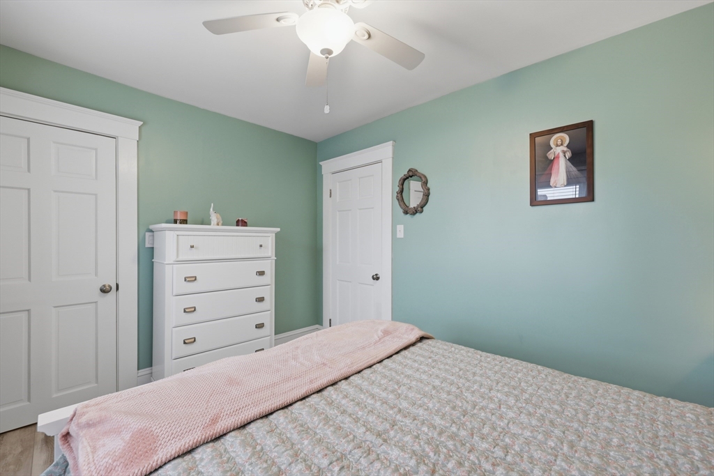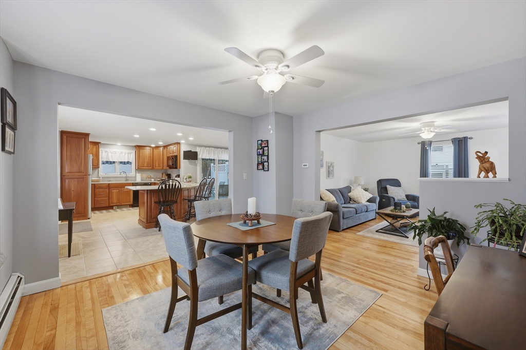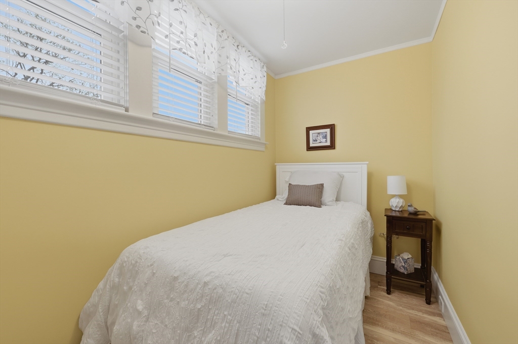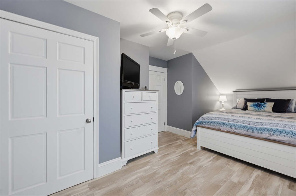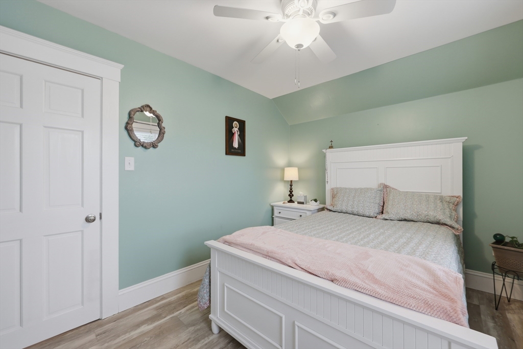Pride of Ownership!!! Beautfully updated and maintained Bungalow style home! Appreciate the spacious Mud Room before you enter the Custom Cherry Cabinet Kitchen featuring an oversized breakfast bar, Quartz Counters, Tile Floor, and Recessed Lights! The Dining room has a charming window seat with cedar storage below! Gorgeous Maple Hardwood Floors in the Dining and Living Room, plus a mini split to keep your main level cool in the Summer! 3 Season Front Porch with Vinyl plank flooring! Spacious Full Bath with Gray Cabinets, Quartz counters, Tile Floor and a Linen Closet! The 2nd level has vinyl plank flooring thru out! The Main Bedroom offers the 2nd mini Split! The 2nd and 3rd bedroom share a large walk in closet! Half bath with tile floor and potential expansion possibilities.Access the Large Composite deck with Awning from the kitchen slider for ease of outdoor meals! 28x24 Detached garage PLUS Rec Room has great ADU potential! Large Backyard! High Efficiency On Demand Boiler!