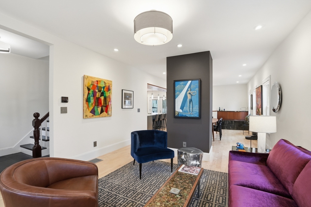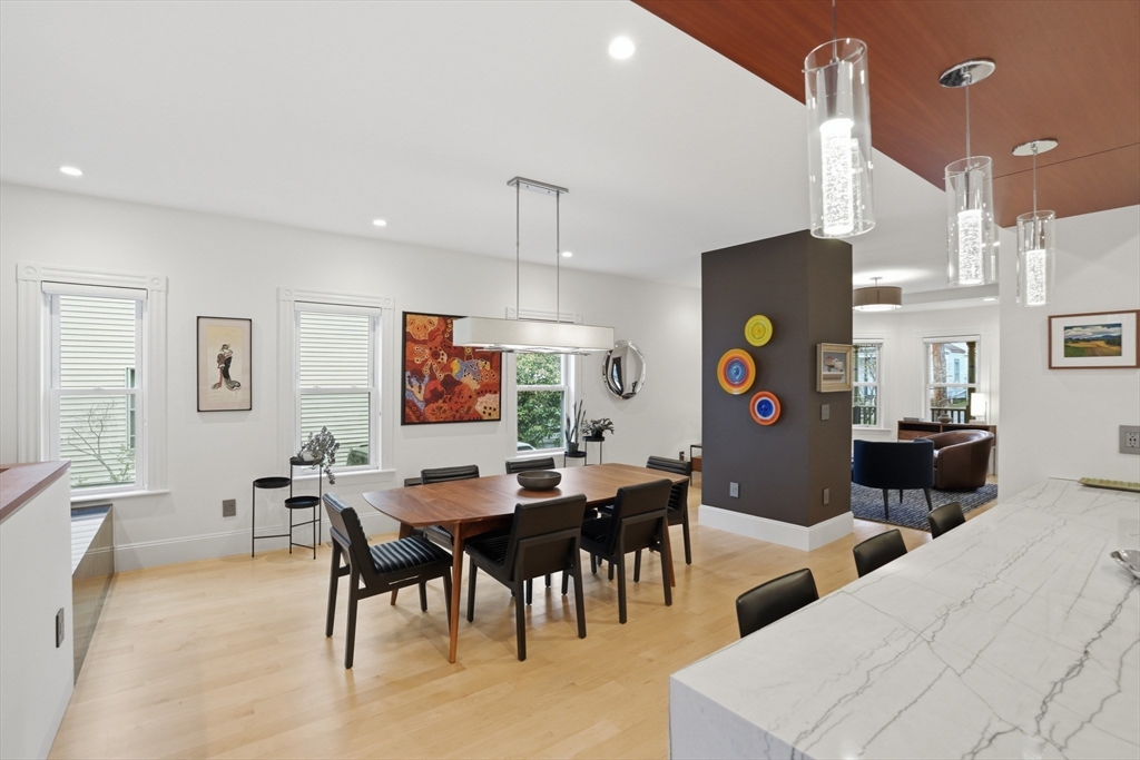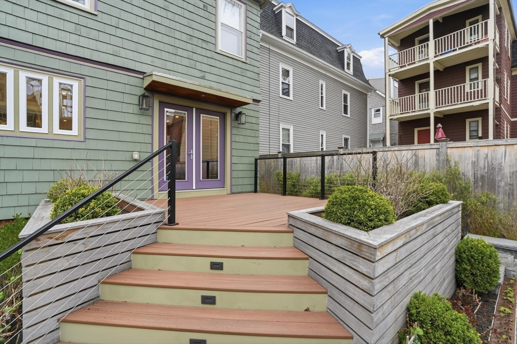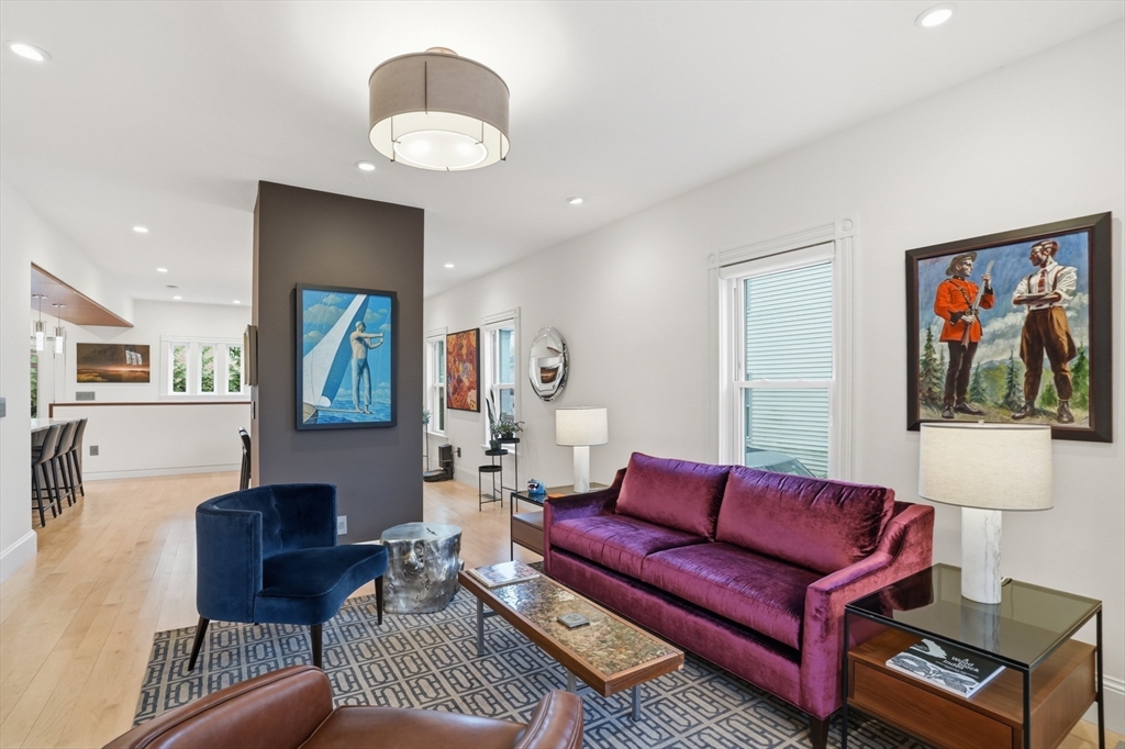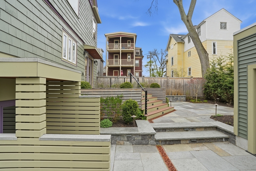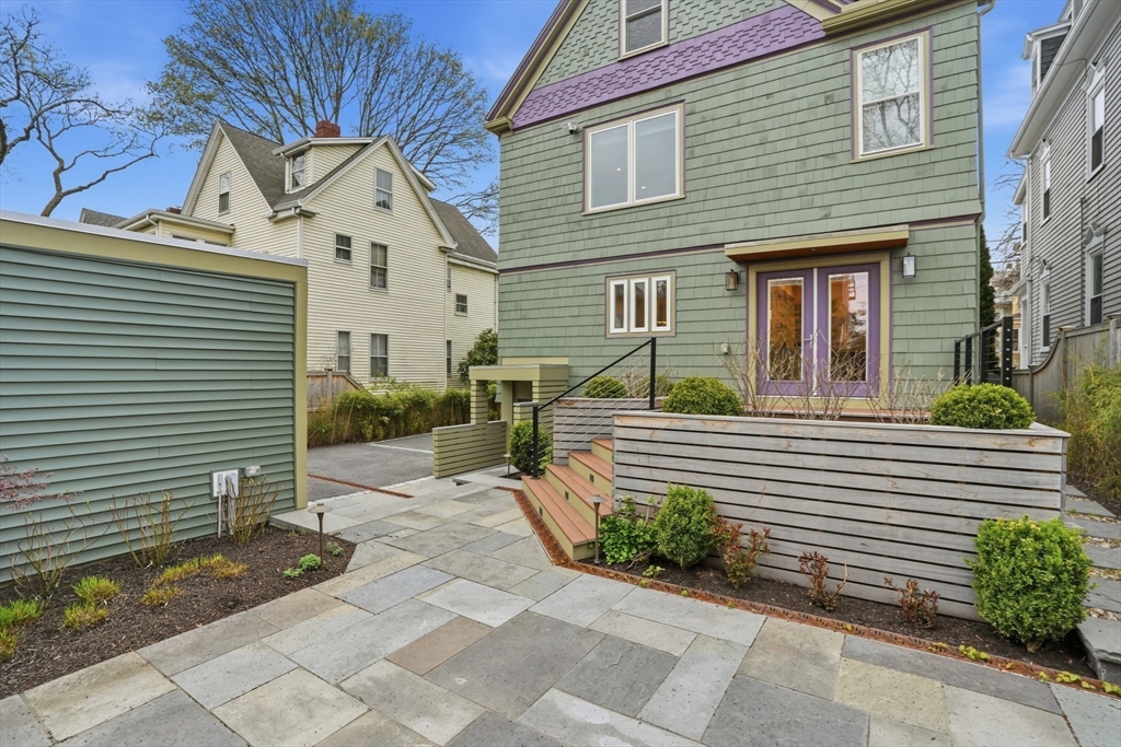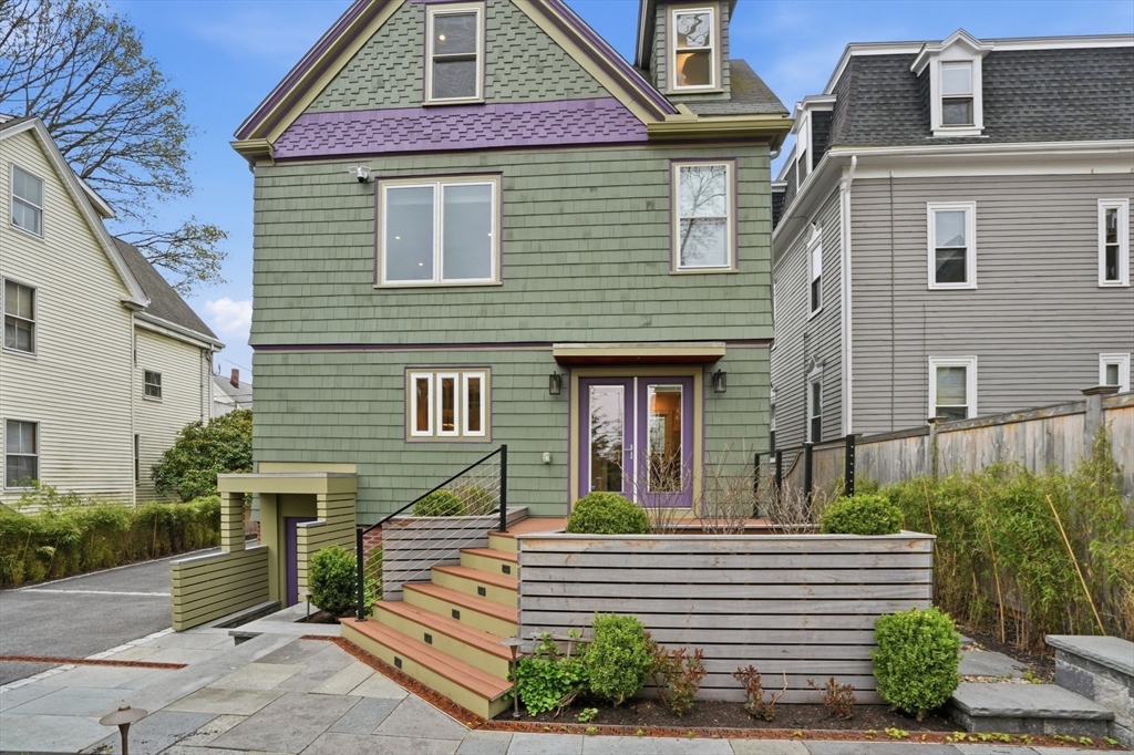 This stunningly renovated turnkey home artfully combines an historic Victorian exterior with a striking modernist interior for the best in luxury living! The main level is flooded with light on 3 sides from the living room's bay window in front to the kitchen's French doors in back. And what a kitchen! Warm yet sleek custom cabinets and spectacular quartzite counters and backsplash are the perfect backdrop for the finest Wolf & Sub-Zero appliances - 36" induction range plus built-in combi-steam and microwave ovens for whipping up everything from gourmet feasts to reheating leftovers with ease. Enjoy that meal in the dining area or step outside to the landscaped garden and patio. 2nd floor includes full bath, 2 bedrooms, laundry room, and large 2nd living area that can easily be another bedroom. Above is the grand primary suite w/stunning bath, walk-in closets, and bonus room for office or nursery. Large garage (wired 4 chg), mudroom, basement storage all just blocks from Davis Square!