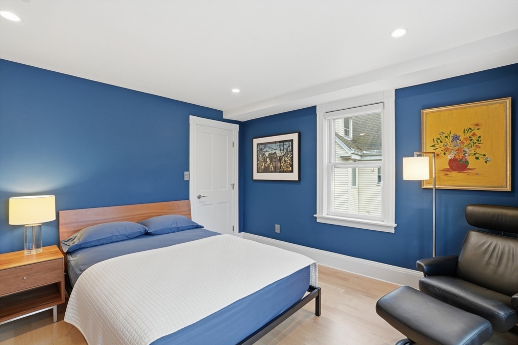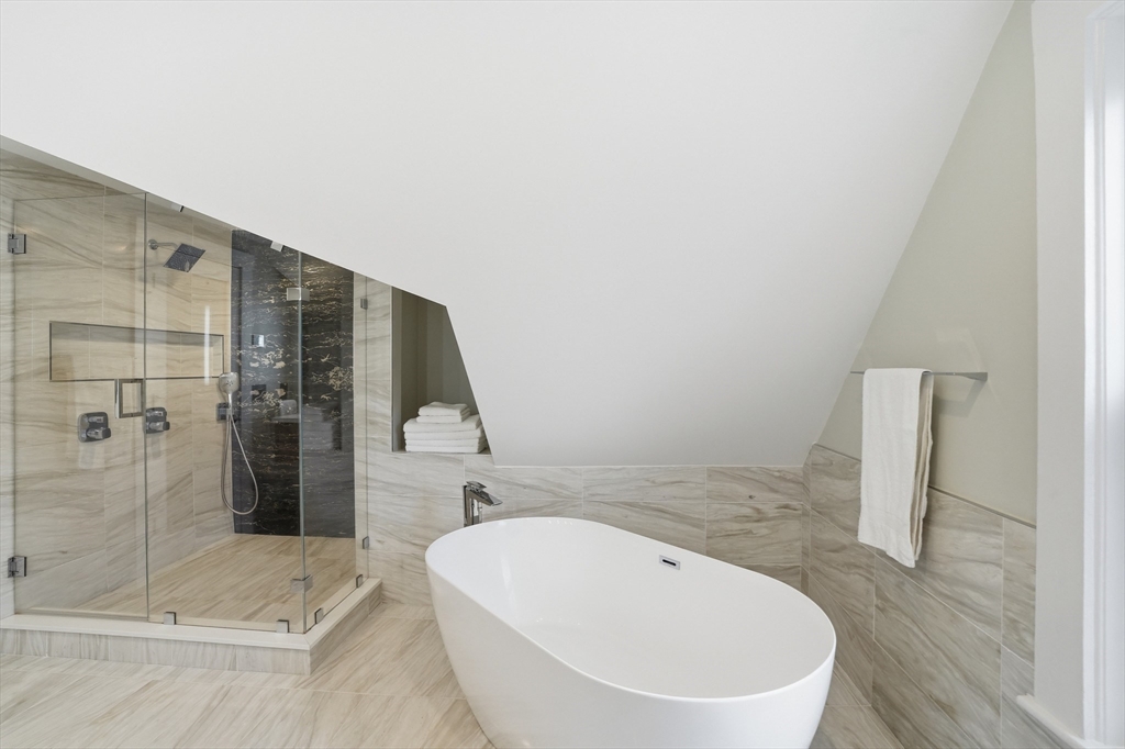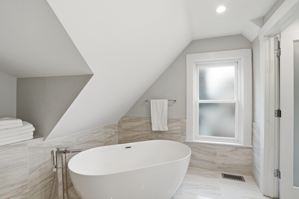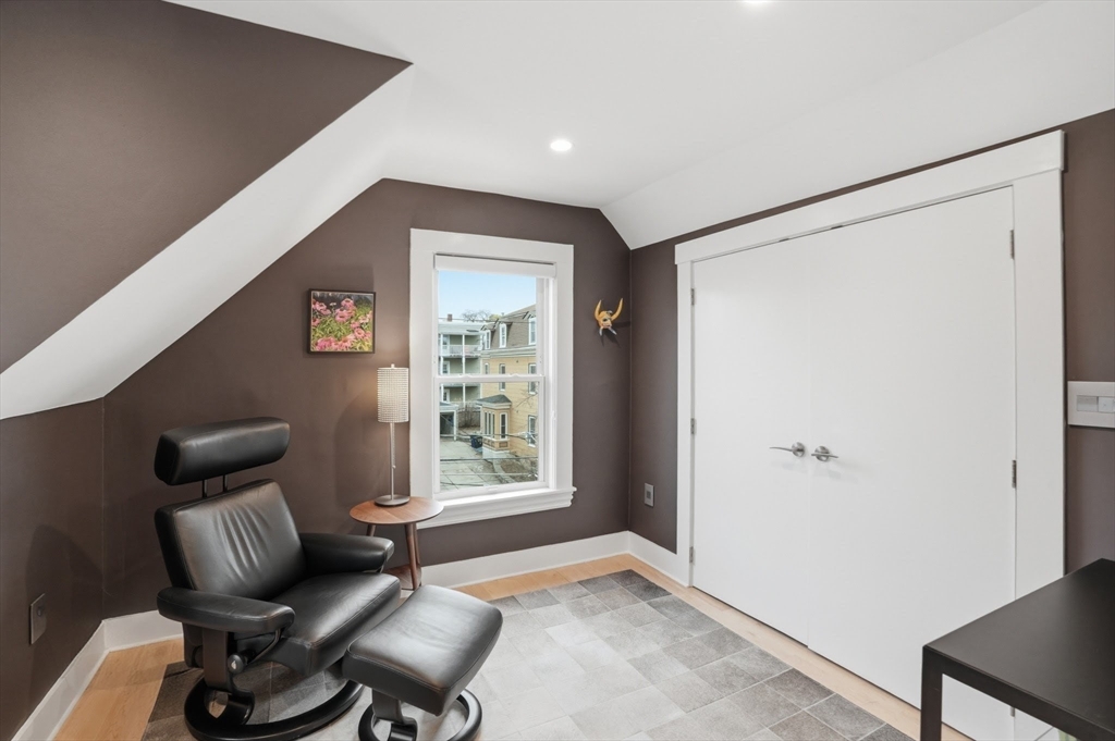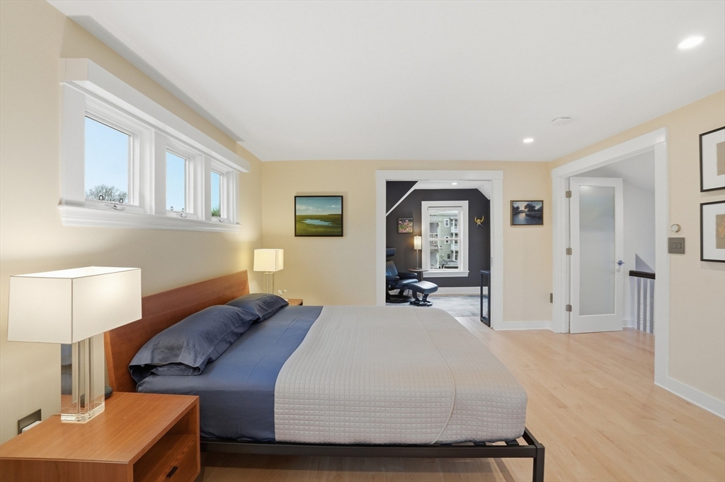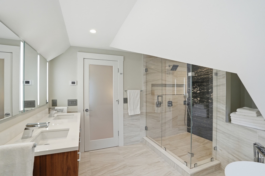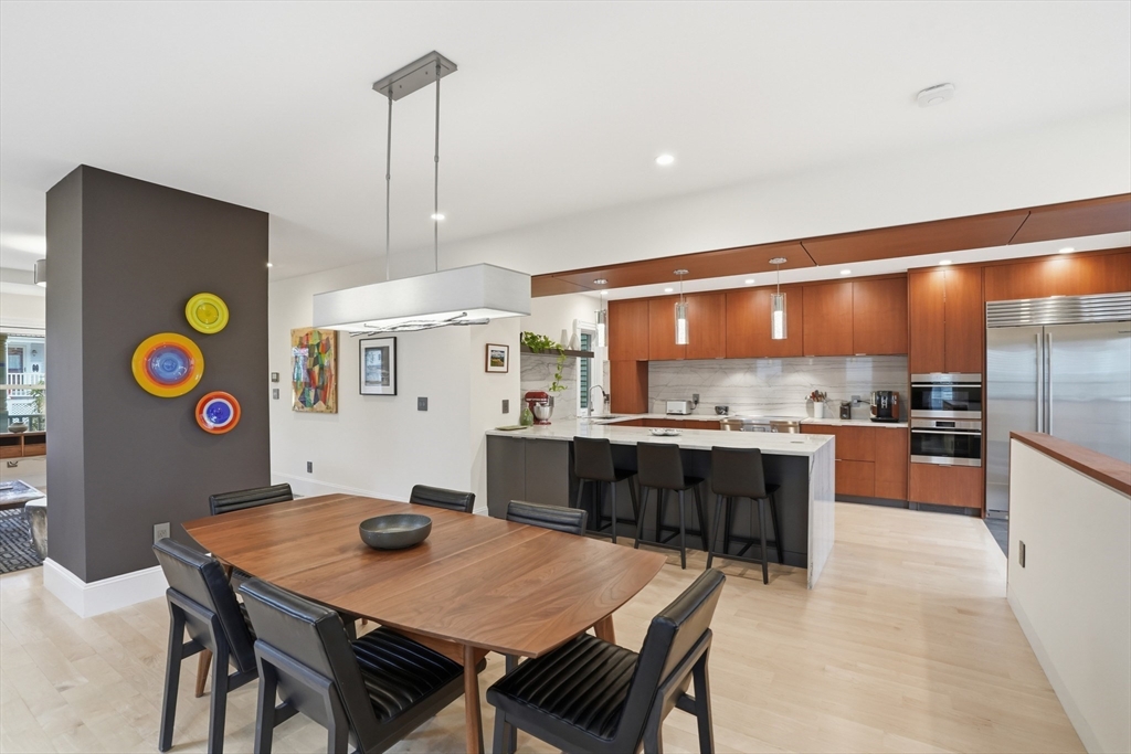 This stunningly renovated turnkey home artfully combines an historic Victorian exterior with a striking modernist interior for the best in luxury living! The main level is flooded with light on 3 sides from the living room's bay window in front to the kitchen's French doors in back. And what a kitchen! Warm yet sleek custom cabinets and spectacular quartzite counters and backsplash are the perfect backdrop for the finest Wolf & Sub-Zero appliances - 36" induction range plus built-in combi-steam and microwave ovens for whipping up everything from gourmet feasts to reheating leftovers with ease. Enjoy that meal in the dining area or step outside to the landscaped garden and patio. 2nd floor includes full bath, 2 bedrooms, laundry room, and large 2nd living area that can easily be another bedroom. Above is the grand primary suite w/stunning bath, walk-in closets, and bonus room for office or nursery. Large garage (wired 4 chg), mudroom, basement storage all just blocks from Davis Square!